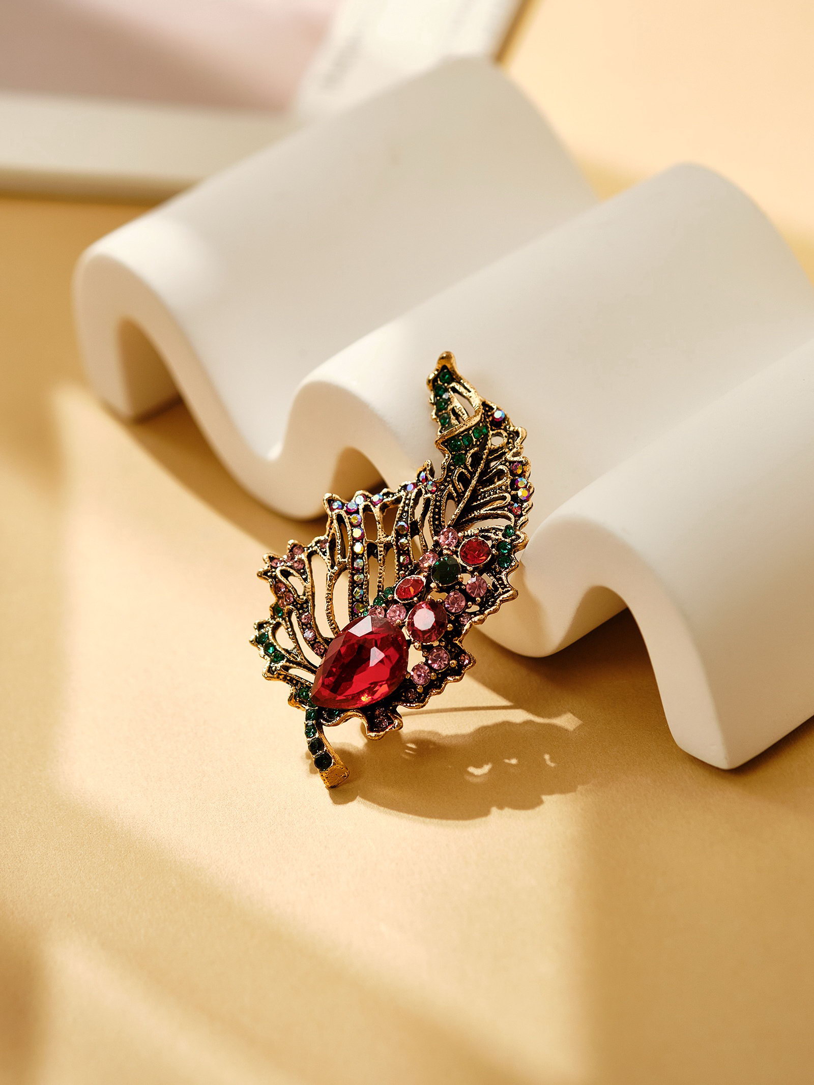 Брошь "Лист осенний" ажурный, цветная в чернёном золоте, 3.5x5.5x1 см., QF, Китай