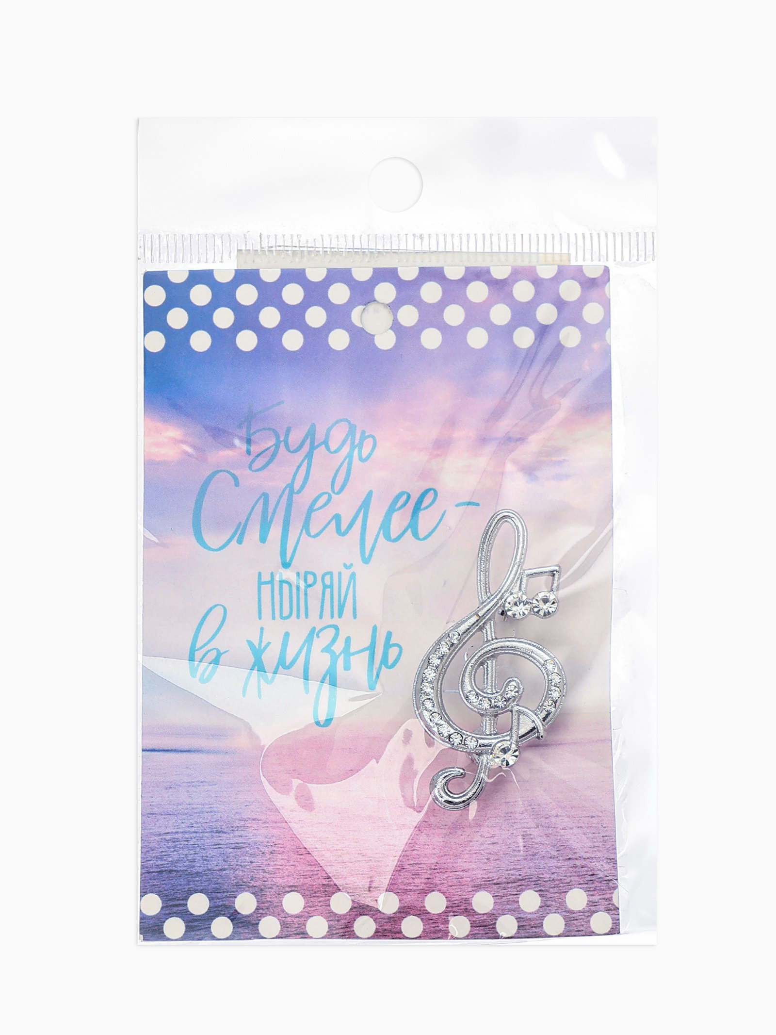 Брошь "Скрипичный ключ" и нотки, цвет белый в серебре, 2x4.5x1.5 см., QF, Китай