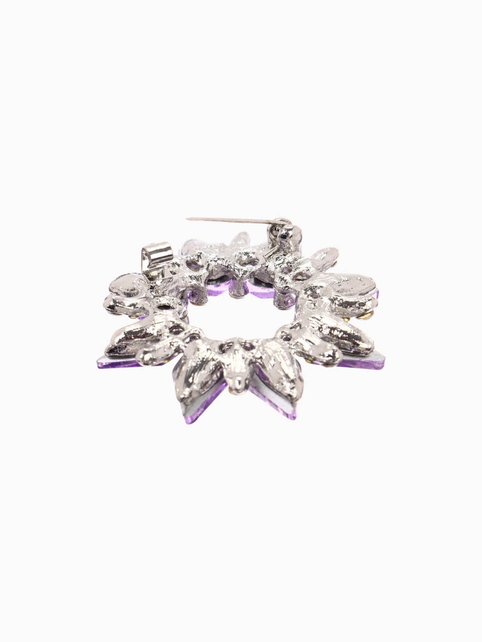 Брошь "Сияние" ореол, бело-сиреневая в серебре, 4x4x1 см., QF, Китай