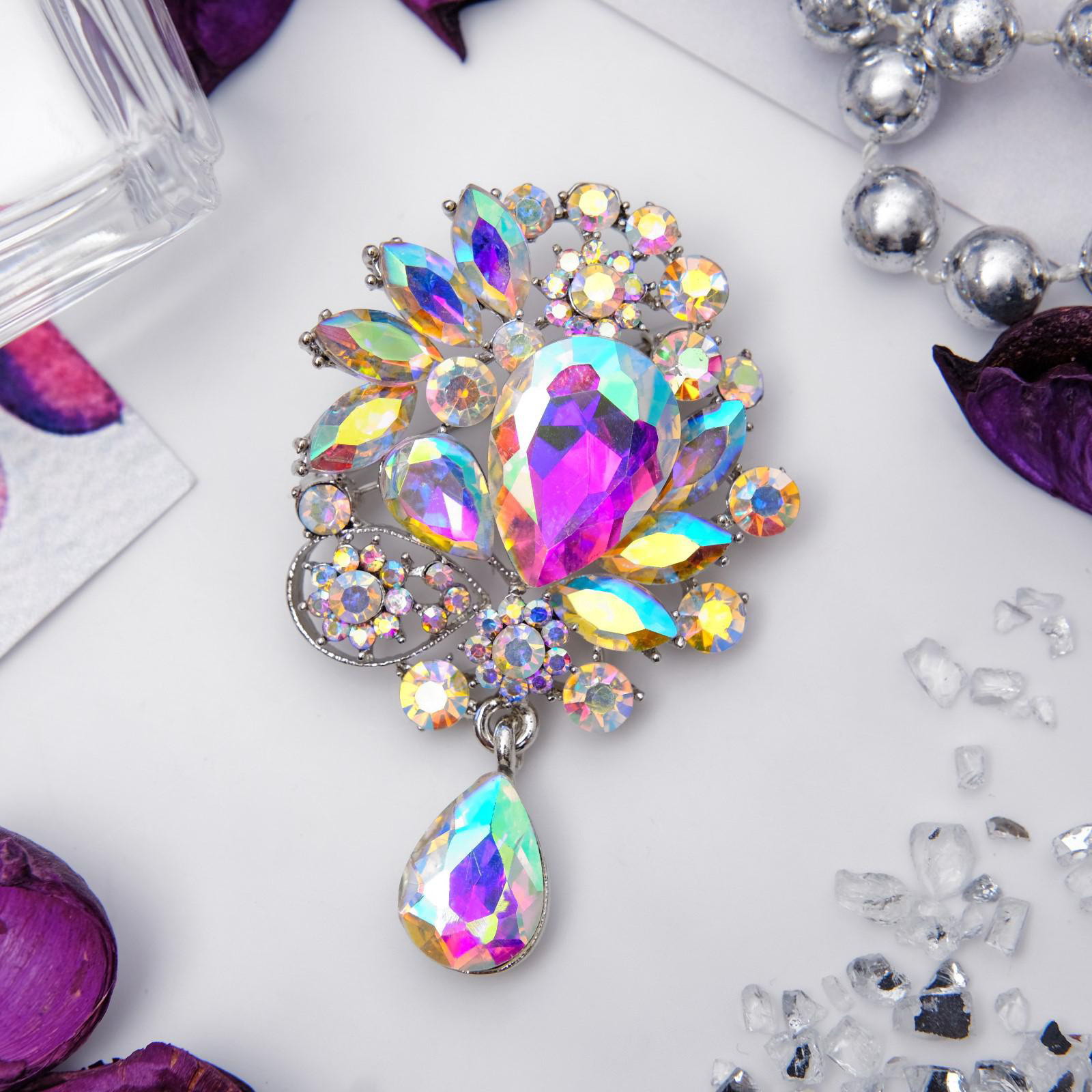 Брошь "Императрица" сияние, цвет радужный в серебре, 4x6.5x2 см., QF, Китай