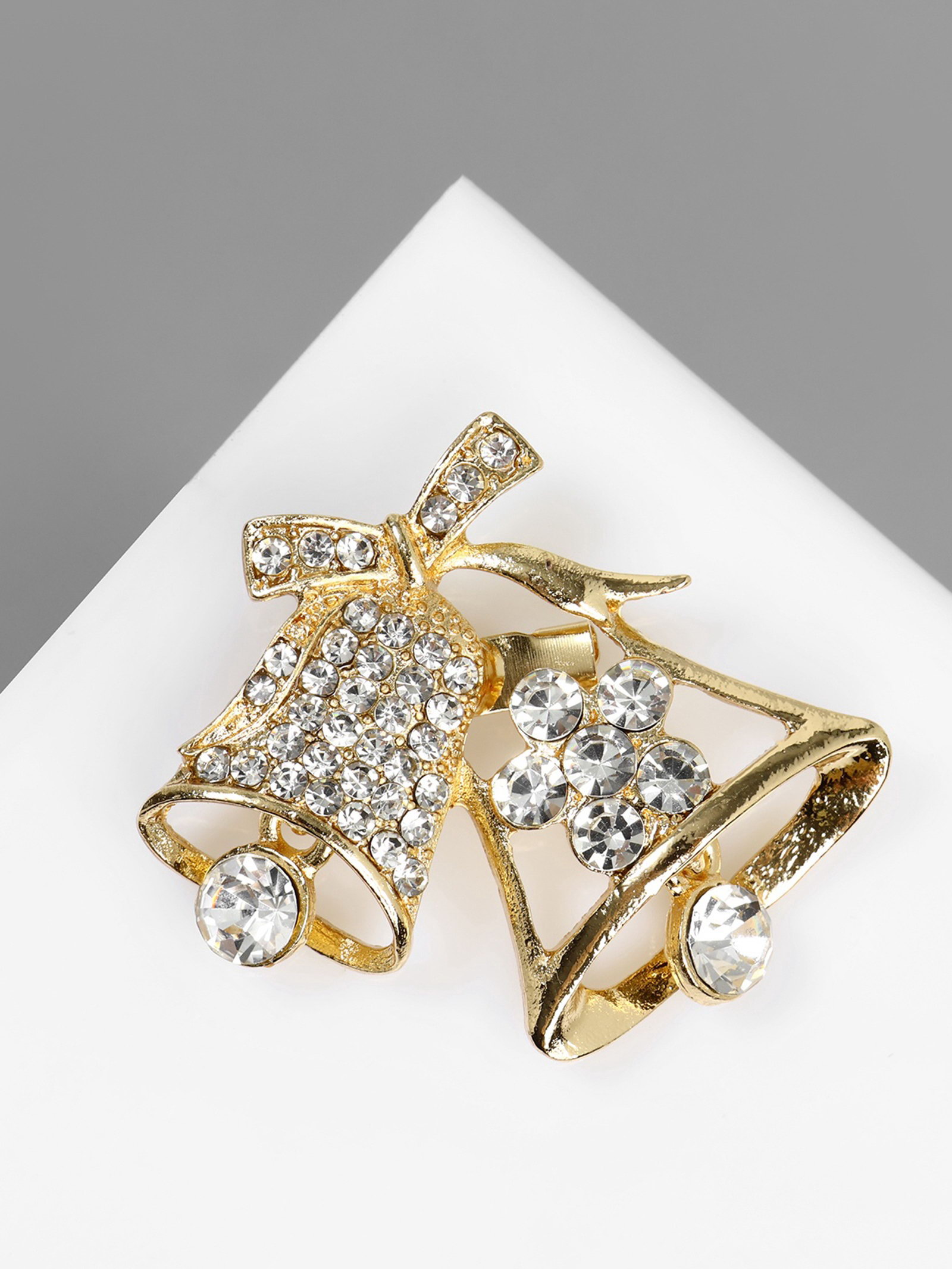 Брошь "Колокольчики", белая в золоте, 3x4x1 см., QF, Китай