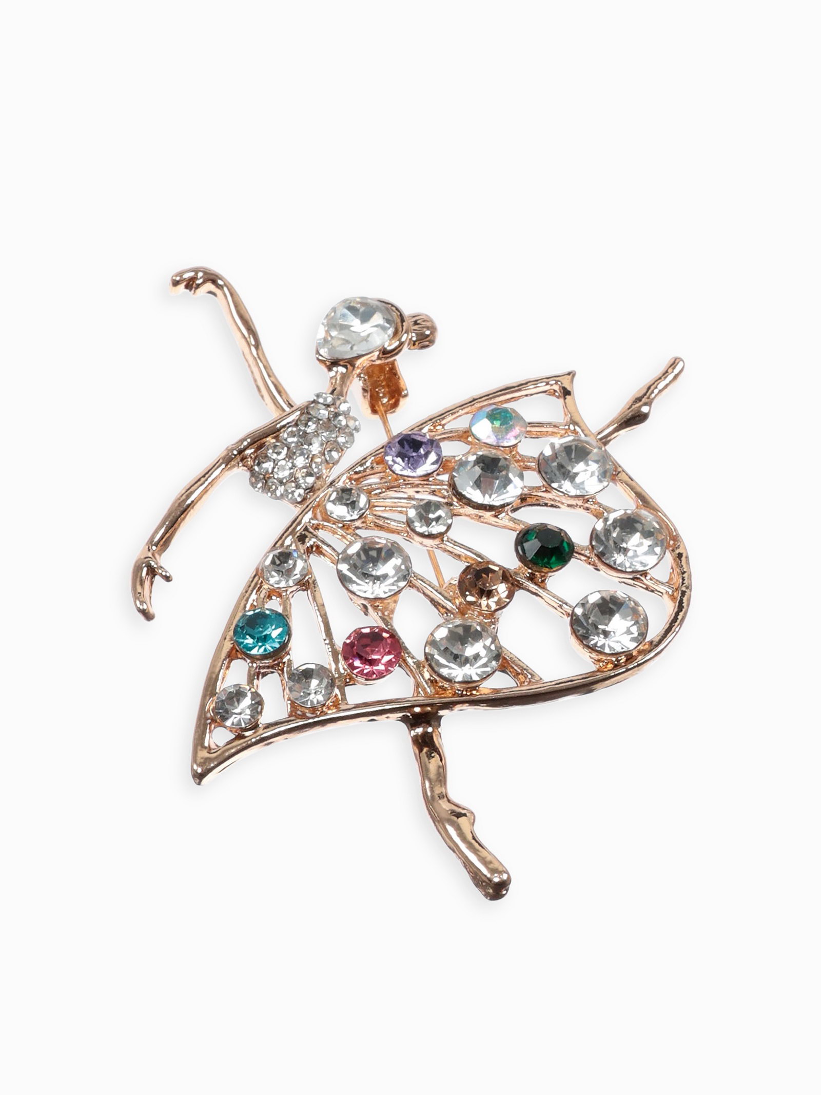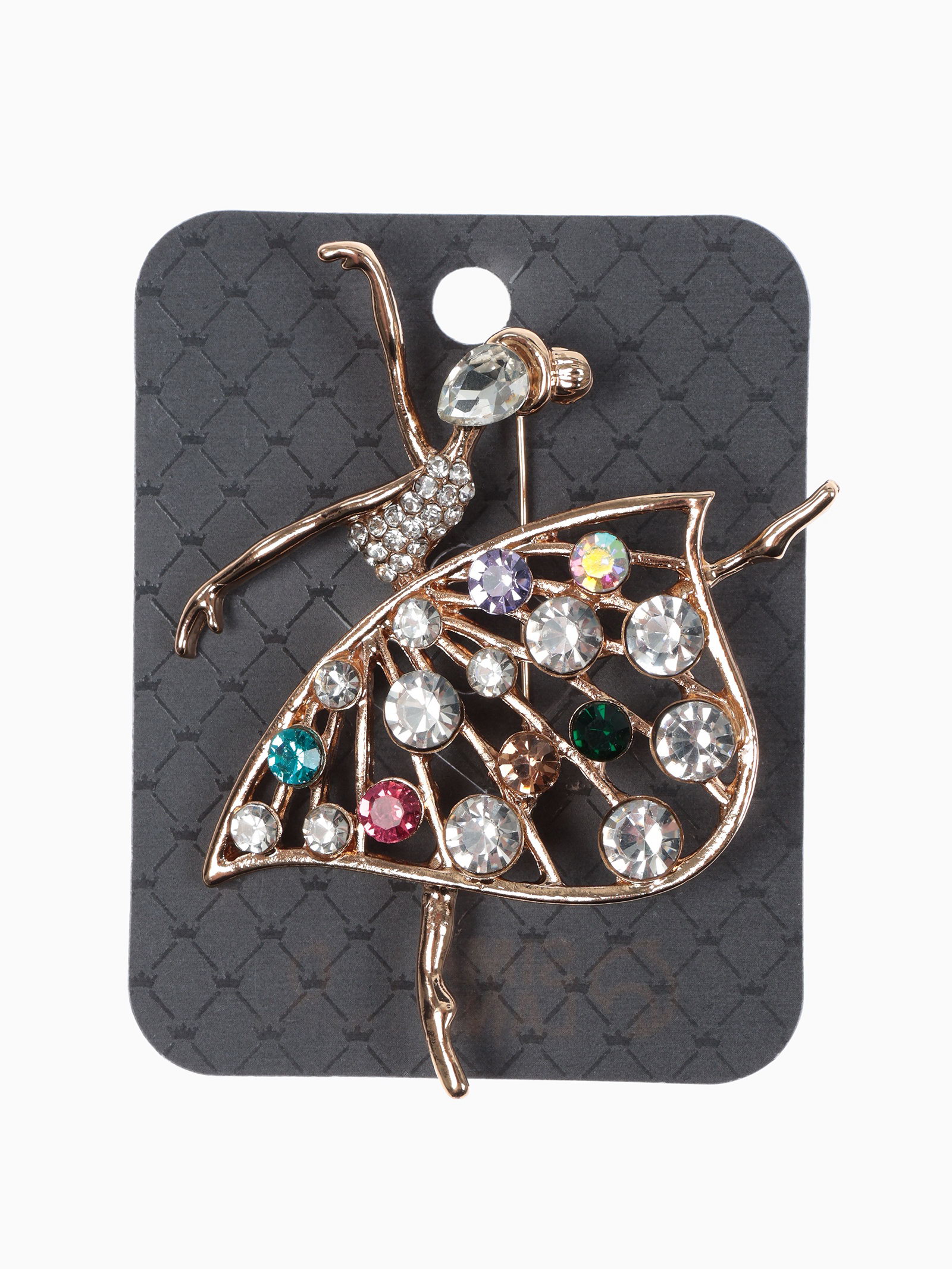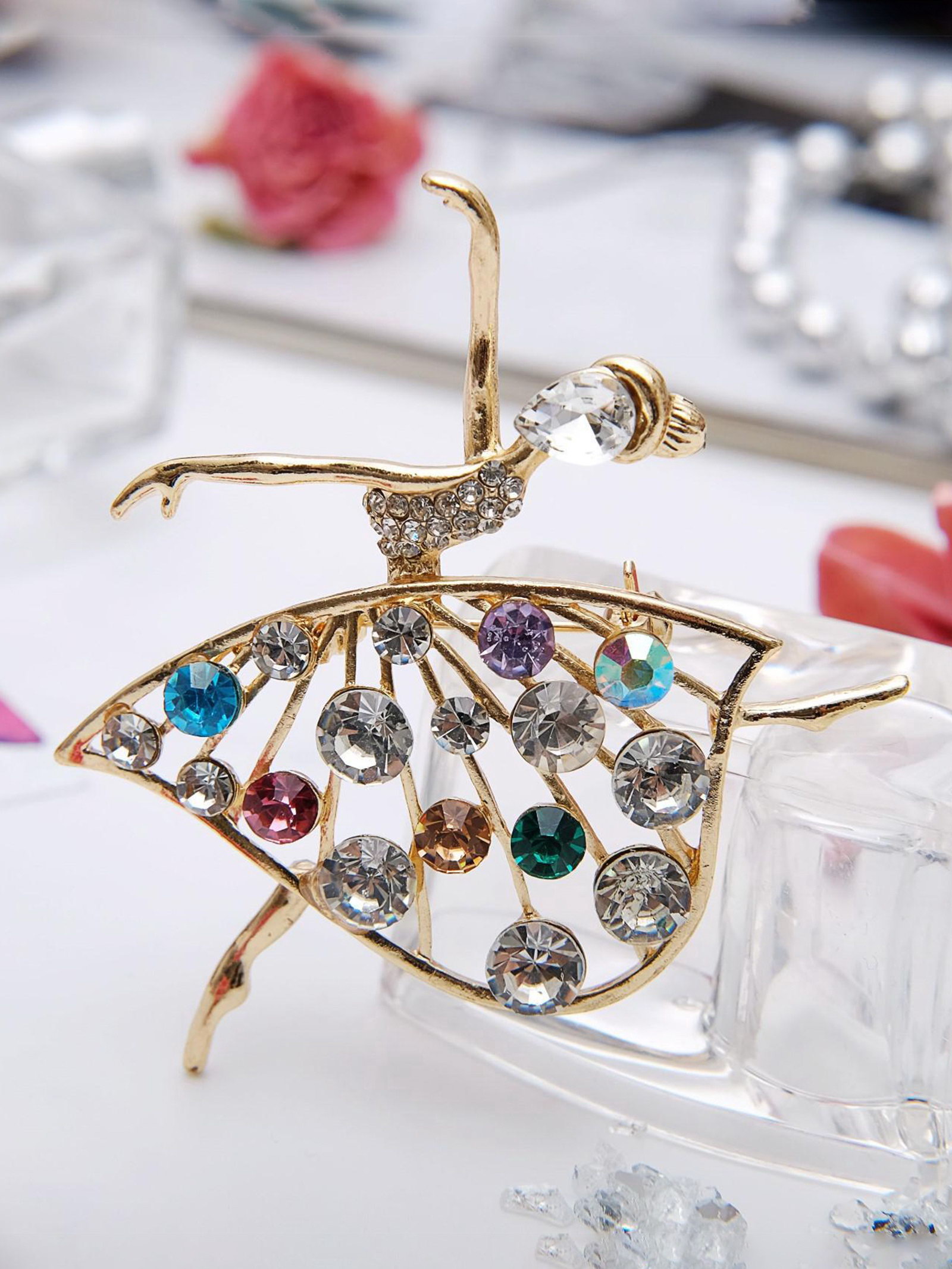 Брошь "Балерина", в платье, цветная в золоте, 7x7x1 см., QF, Китай