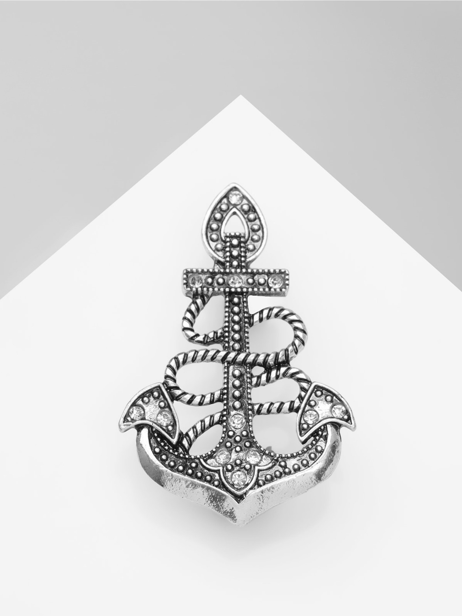 Брошь "Якорь" ретро, белая в чернёном серебре, 3x4.5x1.5 см., QF, Китай