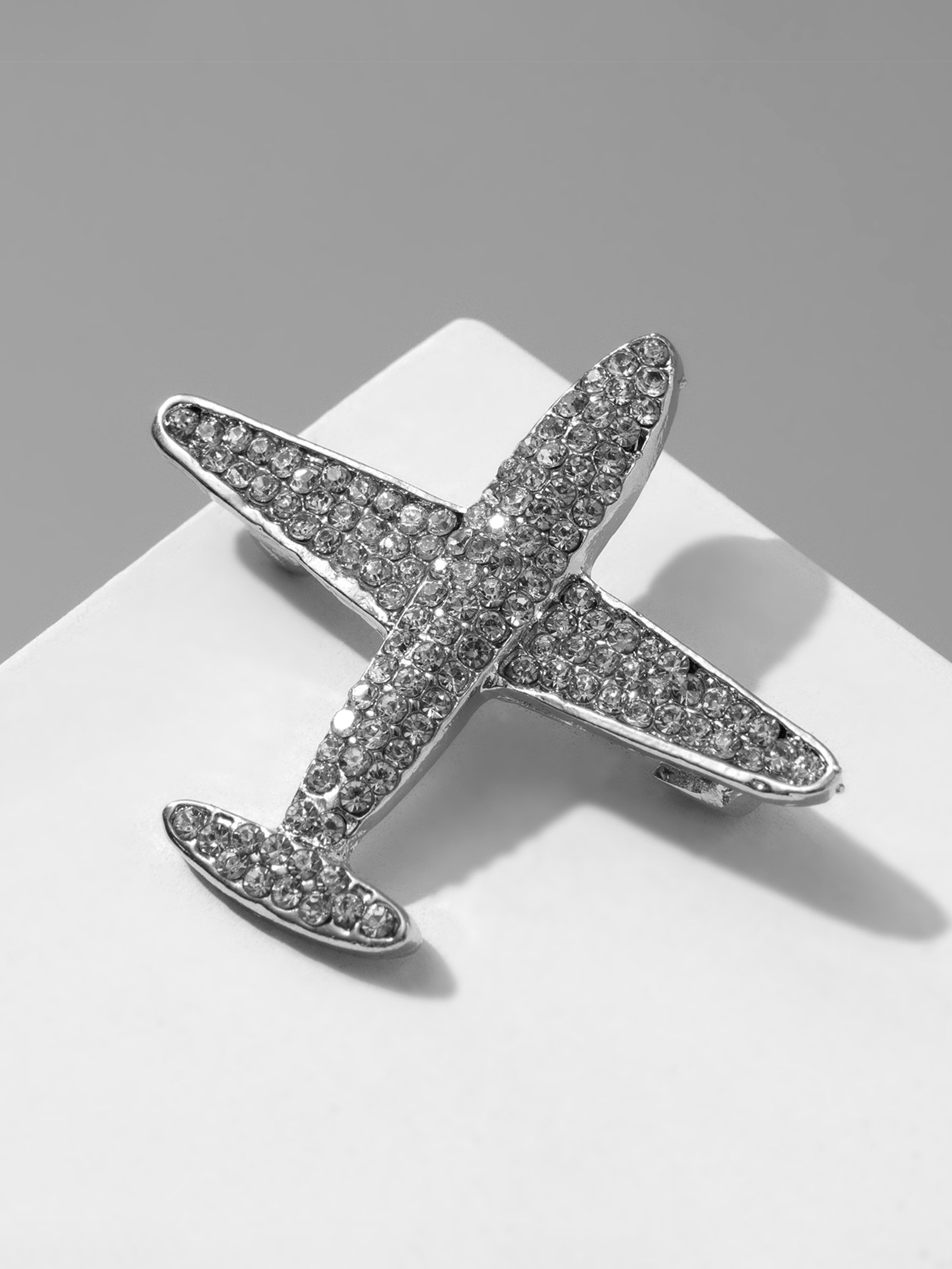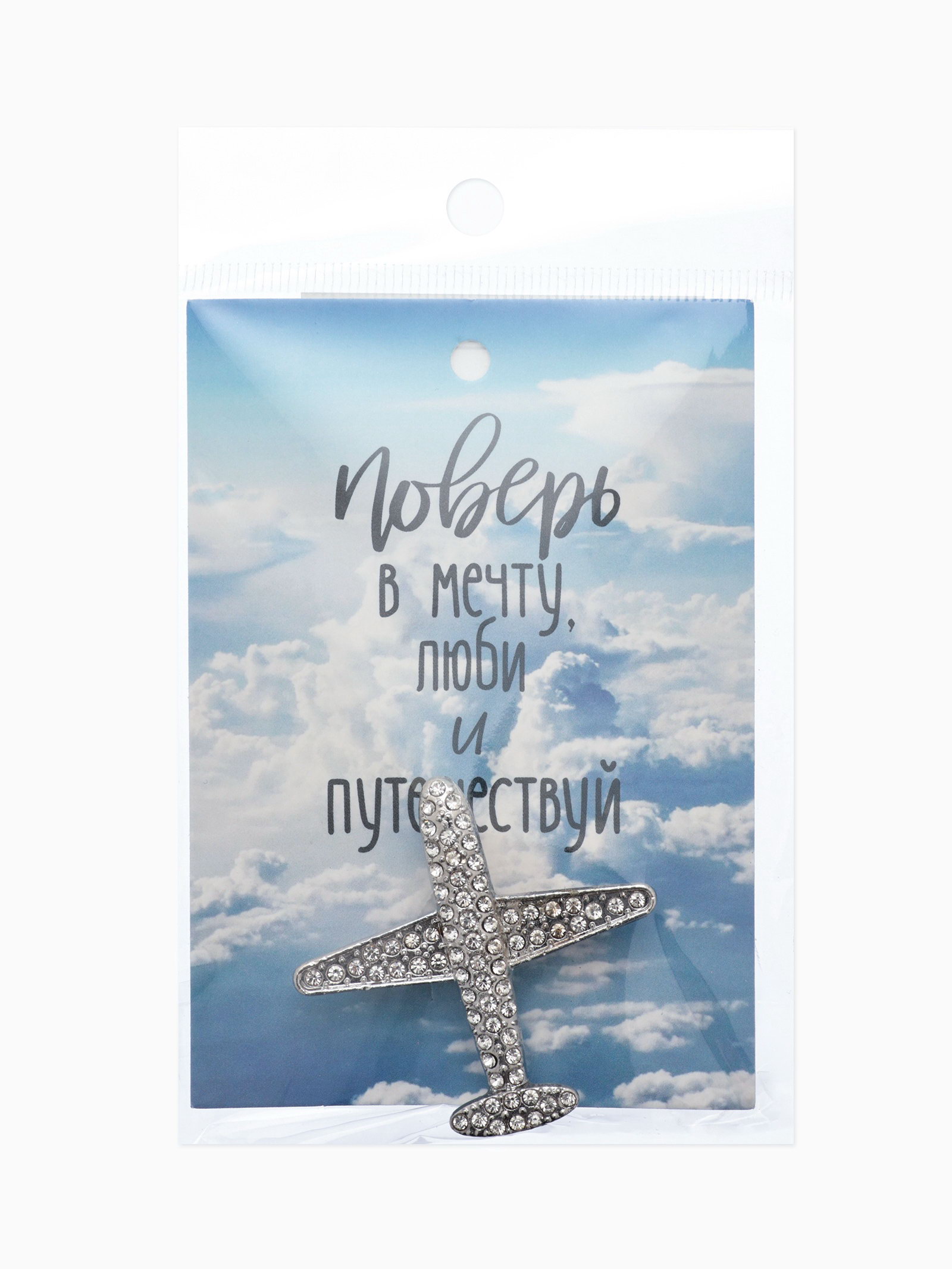 Брошь "Самолёт" туристический, цвет белый в серебре, 4.5x4.5x2 см., QF, Китай