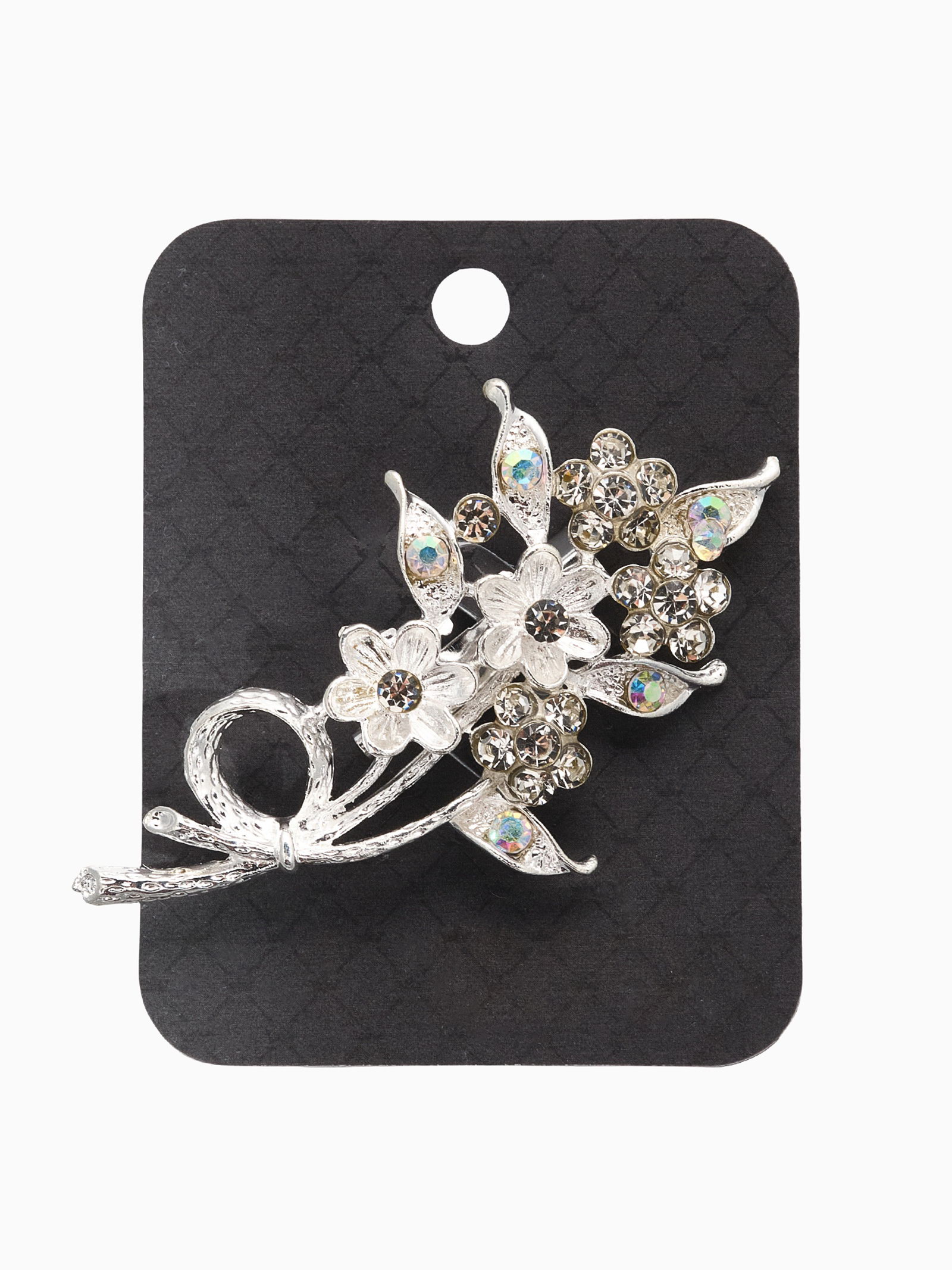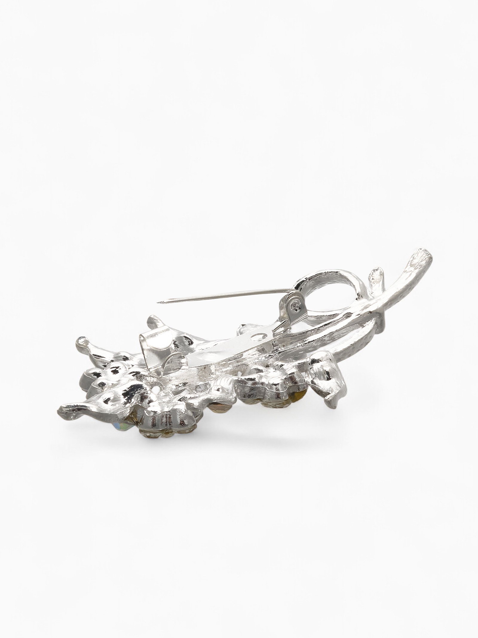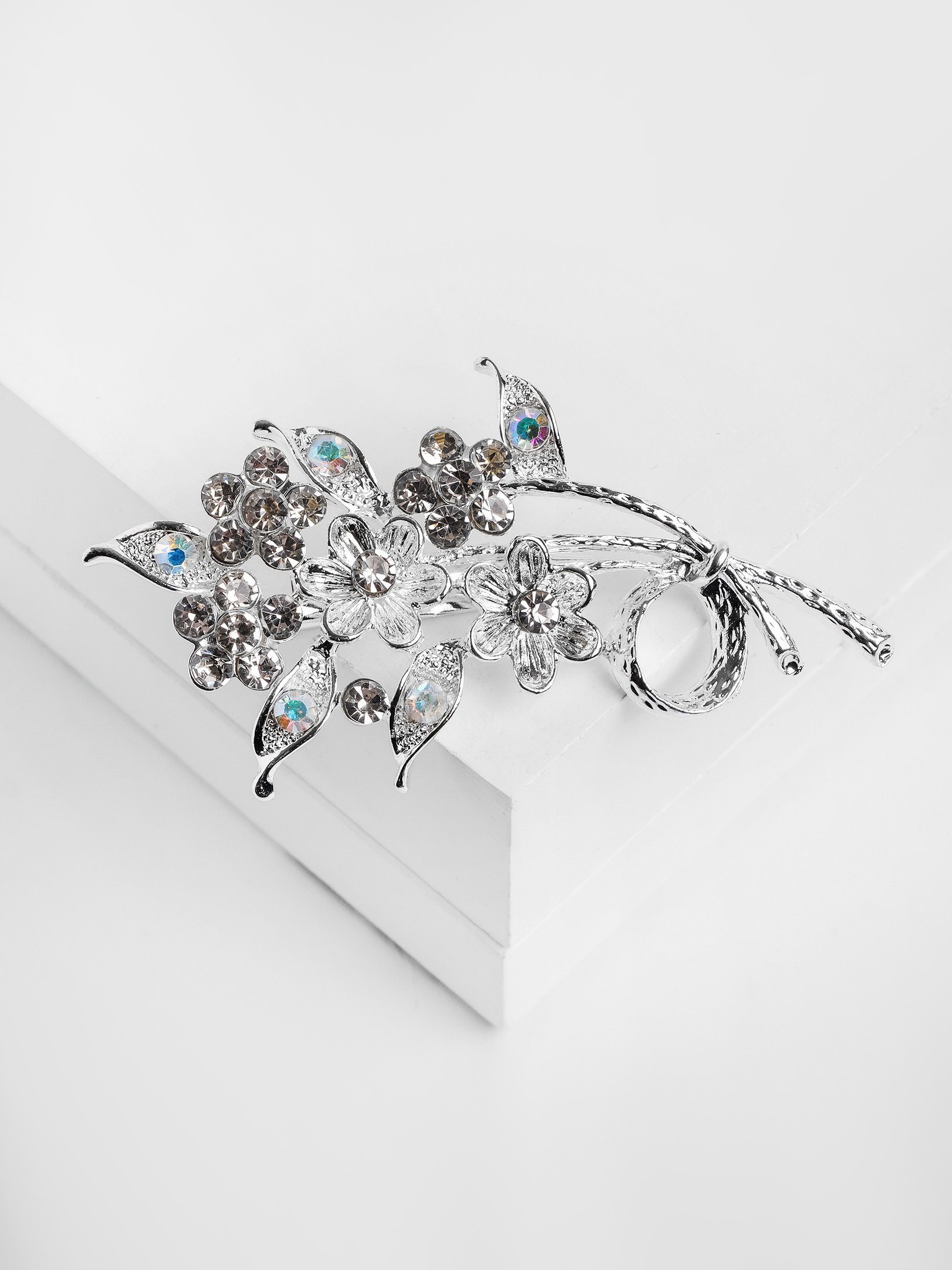 Брошь "Цветы" на ветке, цвет белый в серебре, 3.7x7x1 см., QF, Китай