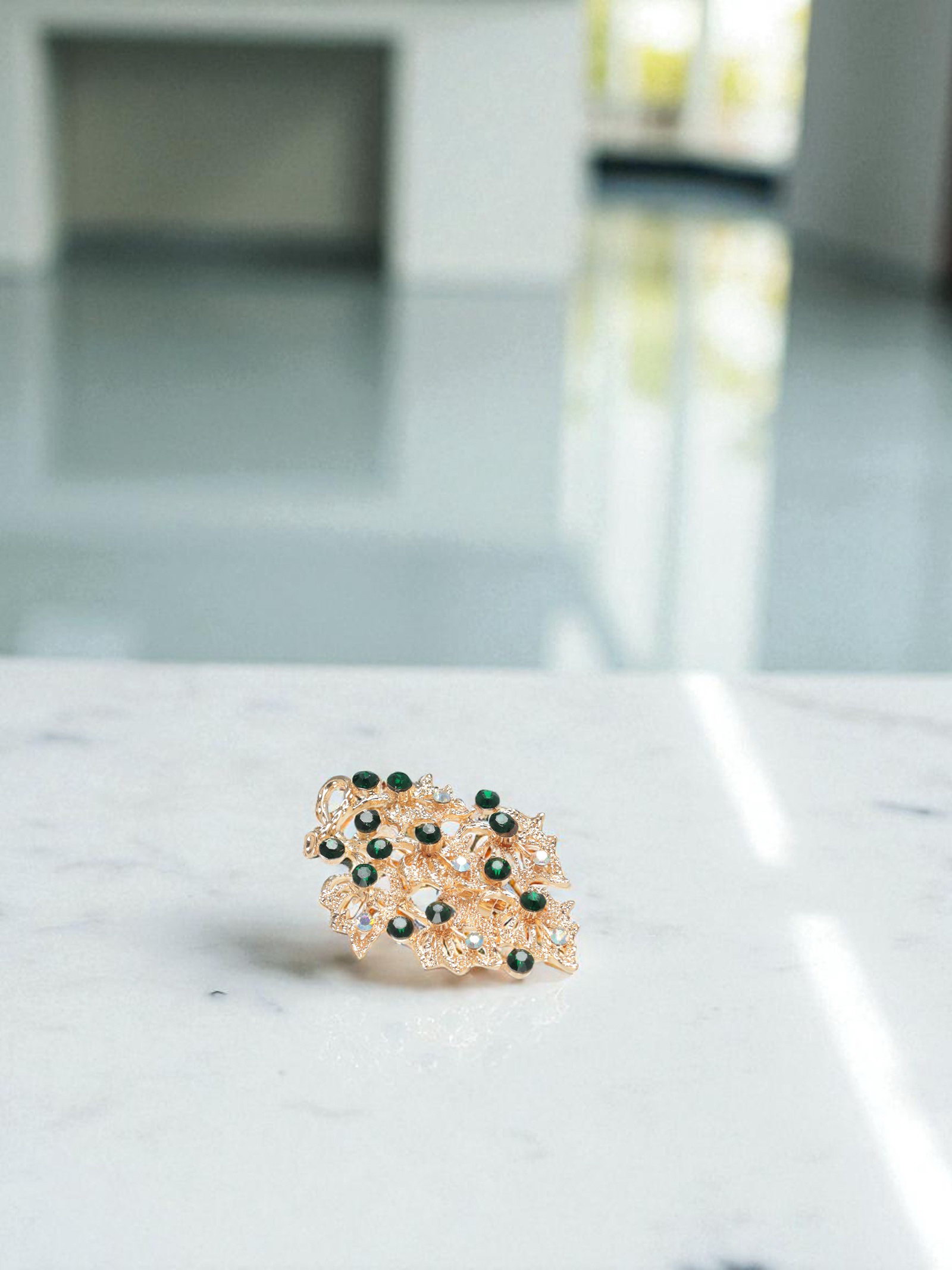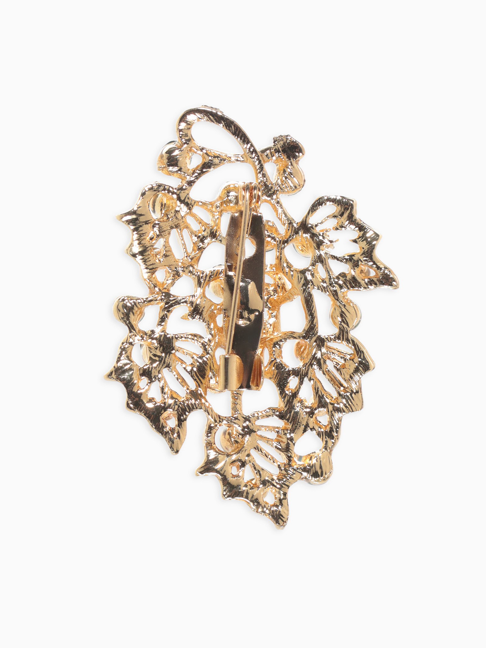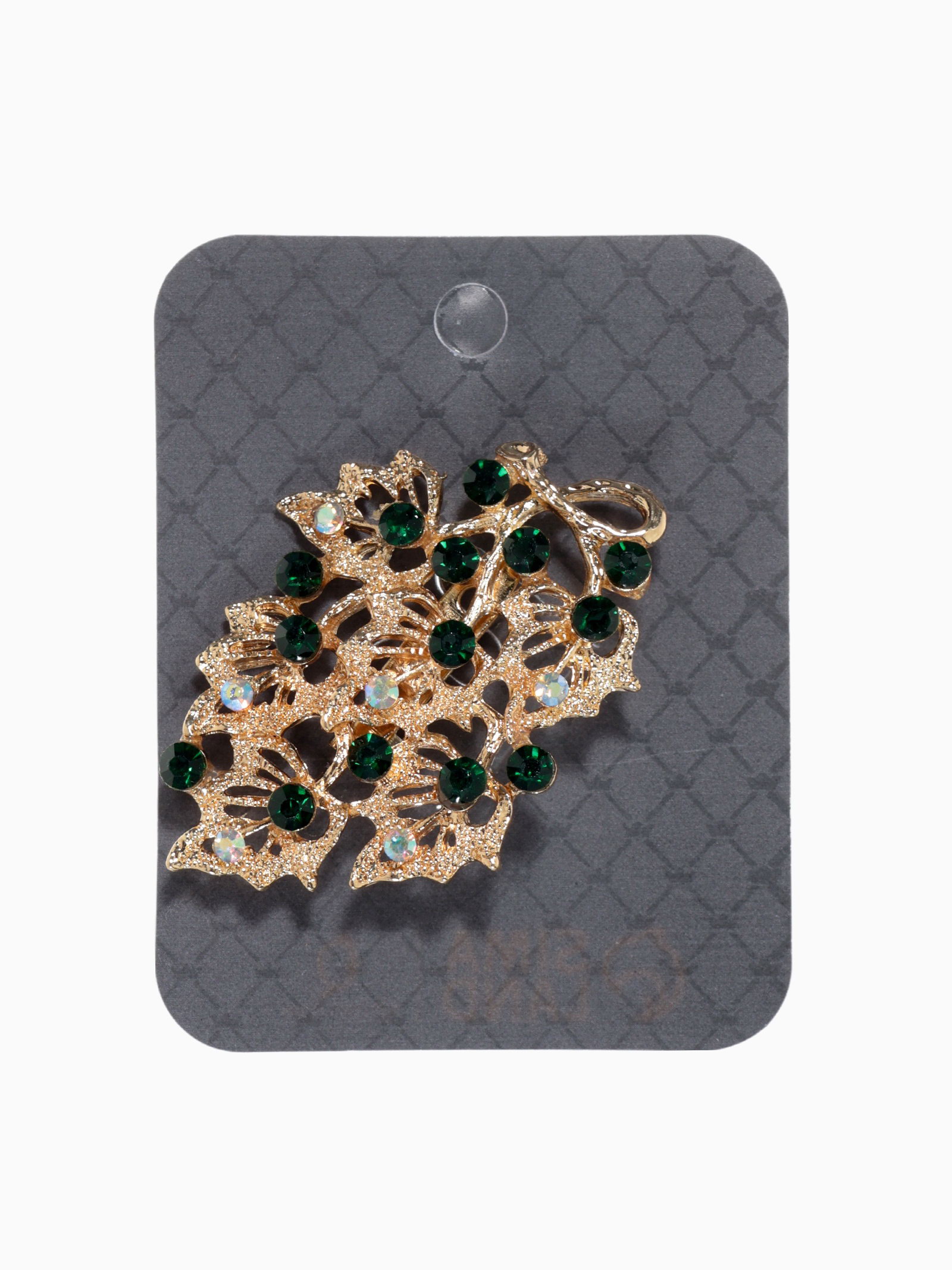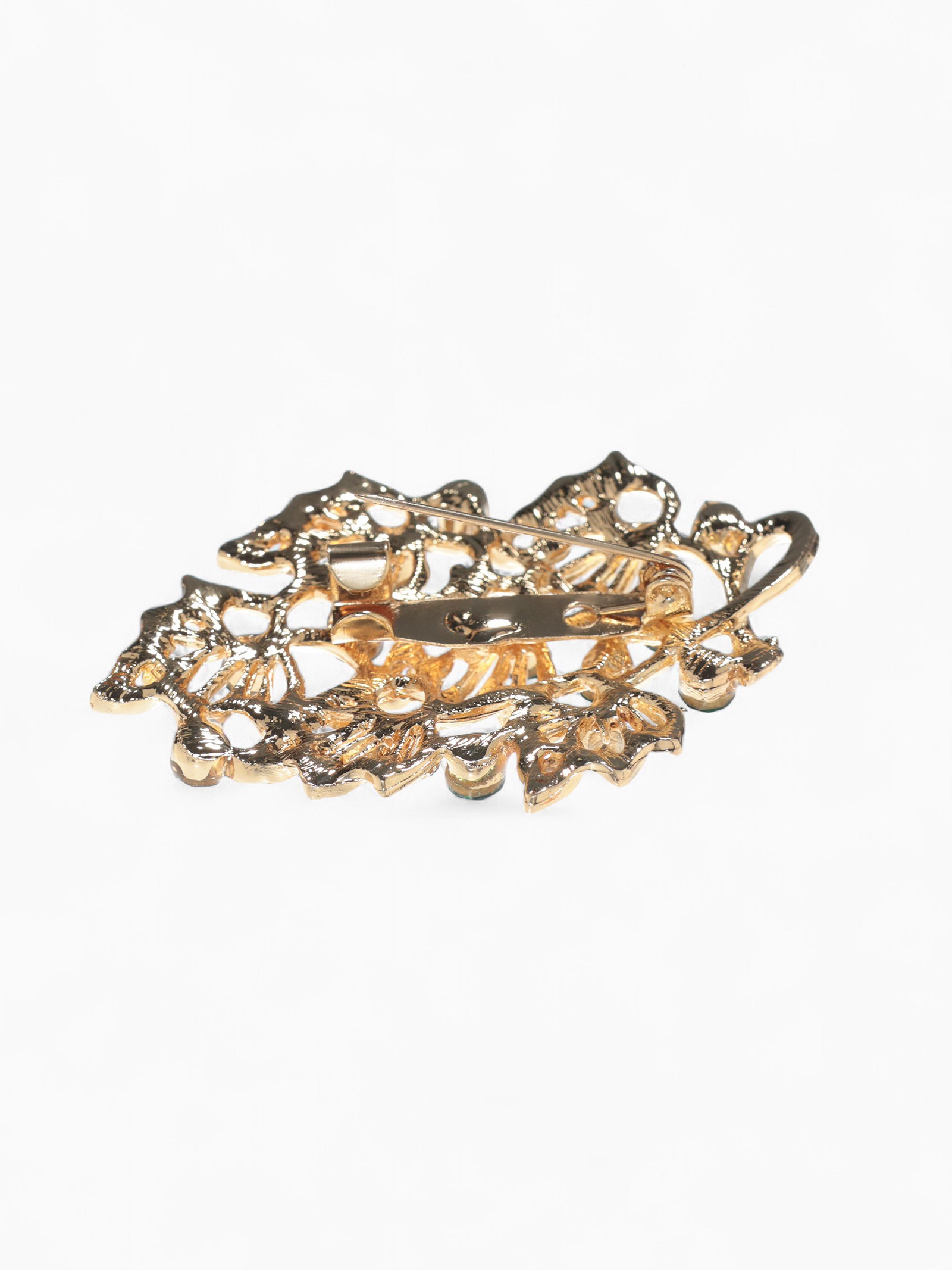Брошь "Листва", цвет изумрудный в золоте, 4x5x1 см., QF, Китай