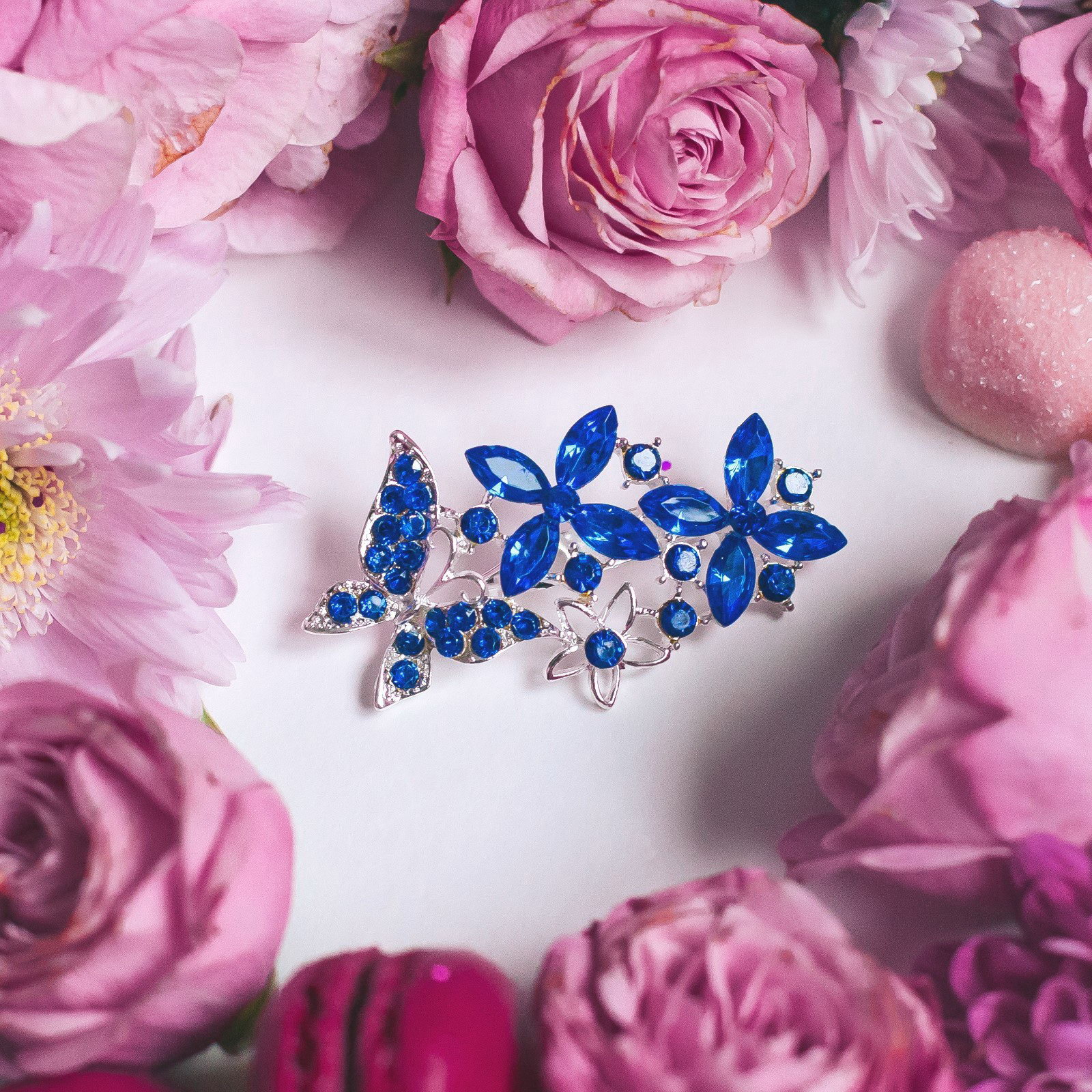 Брошь "Бабочки" синеглазки, цвет синий в серебре, 3.5x5.5x1.5 см., QF, Китай