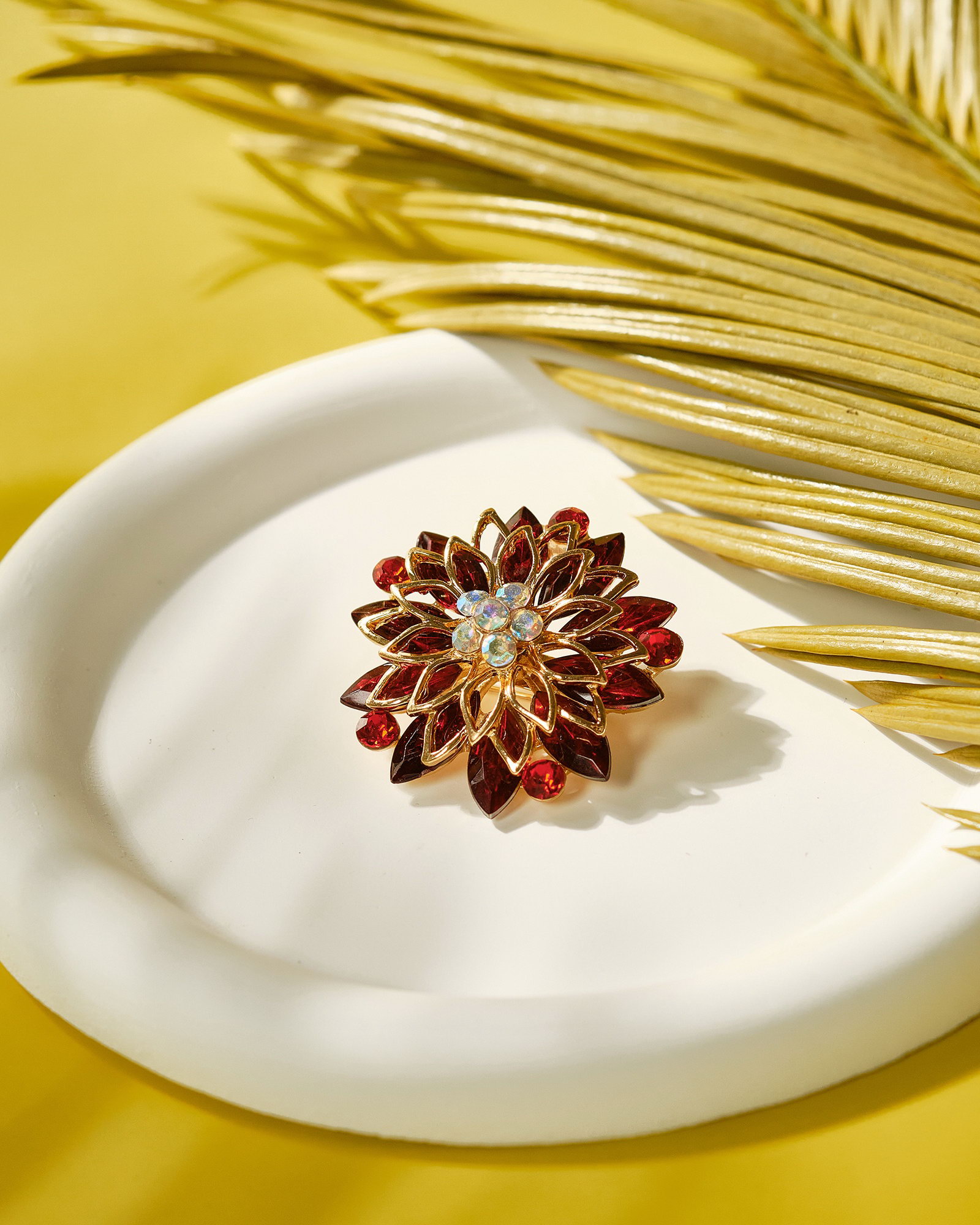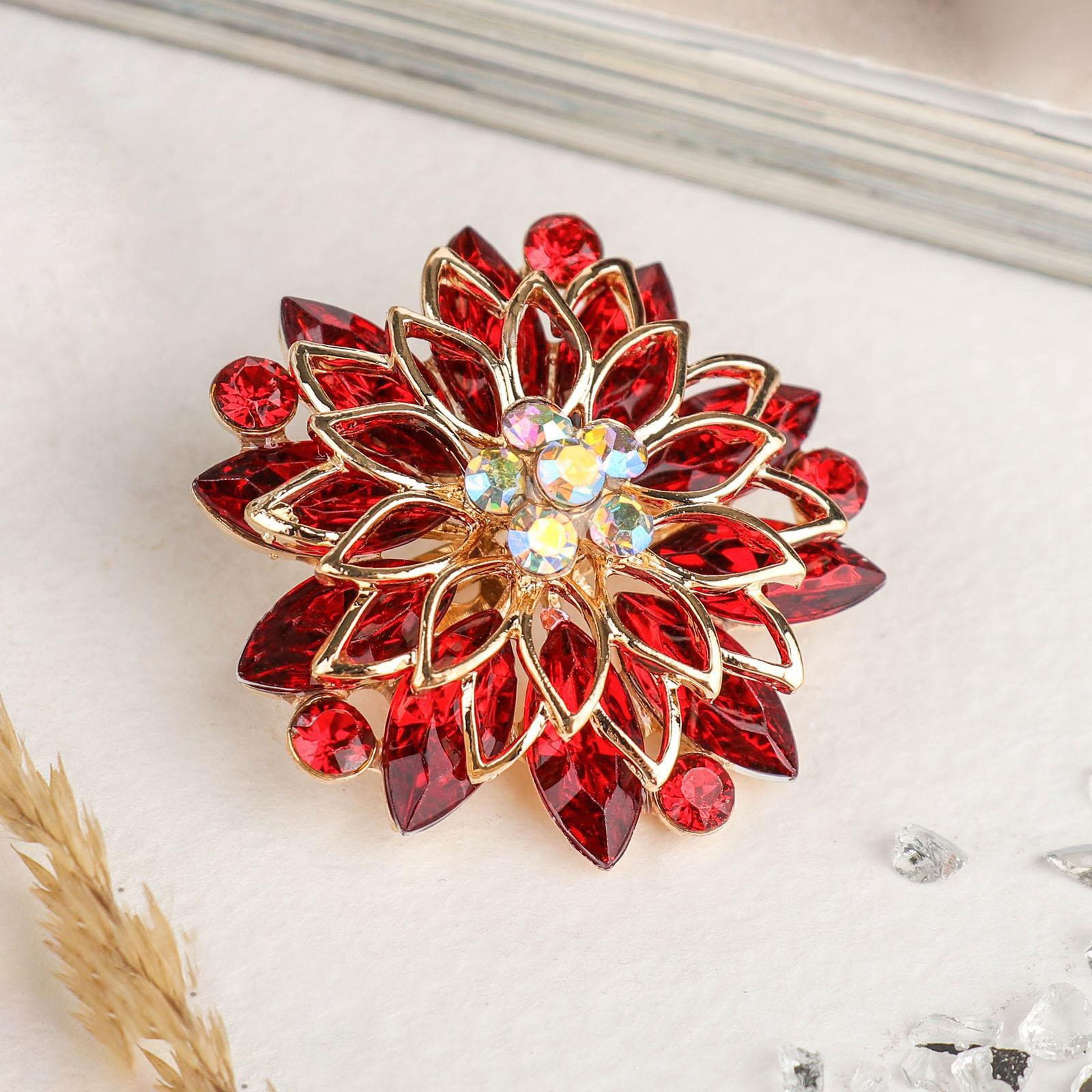 Брошь "Цветок" хризантемы, цвет красный в золоте, 4.5x4.5x1.5 см., QF, Китай
