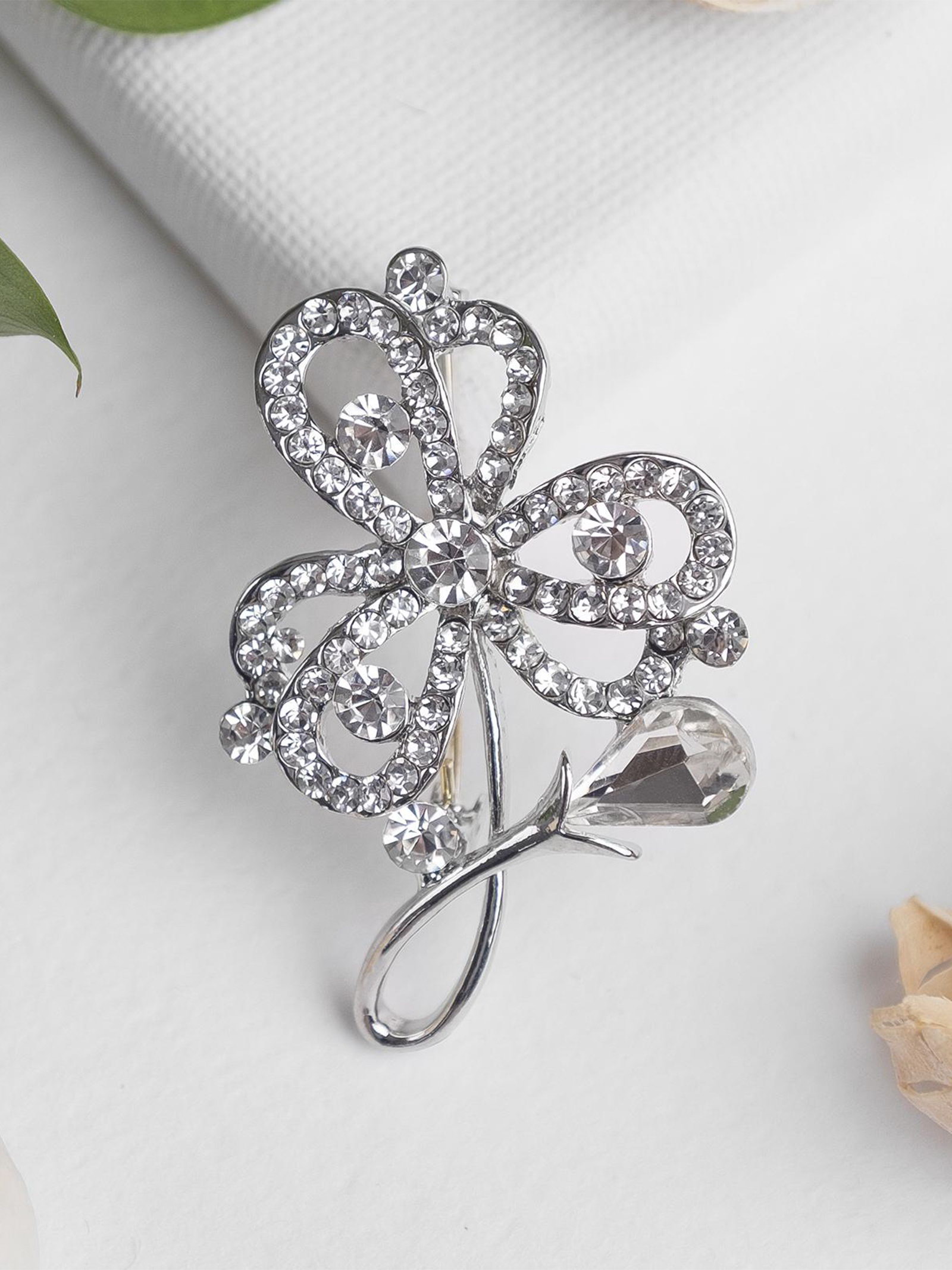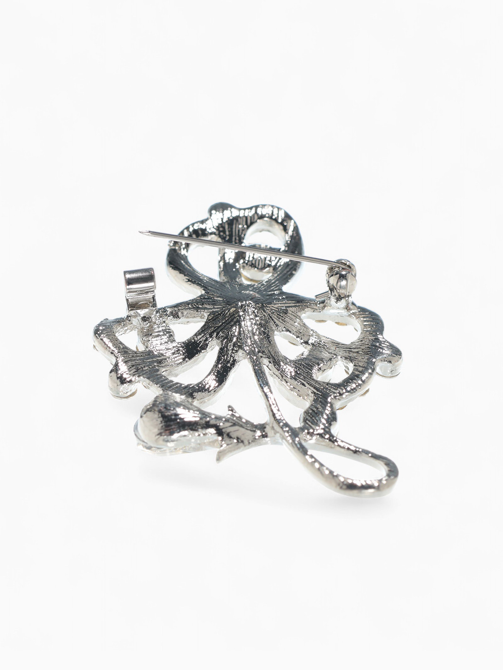 Брошь "Цветок желания", белая в серебре, 3x5.5x1.2 см., QF, Китай