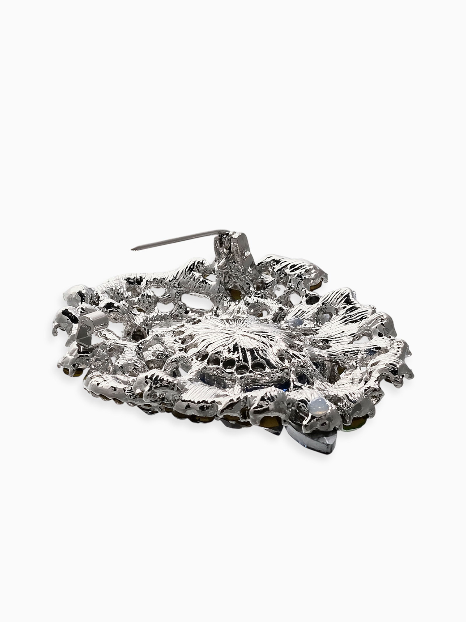 Брошь "Императрица" самоцветная, цветная в серебре, 5.5x6.5x1.5 см., QF, Китай