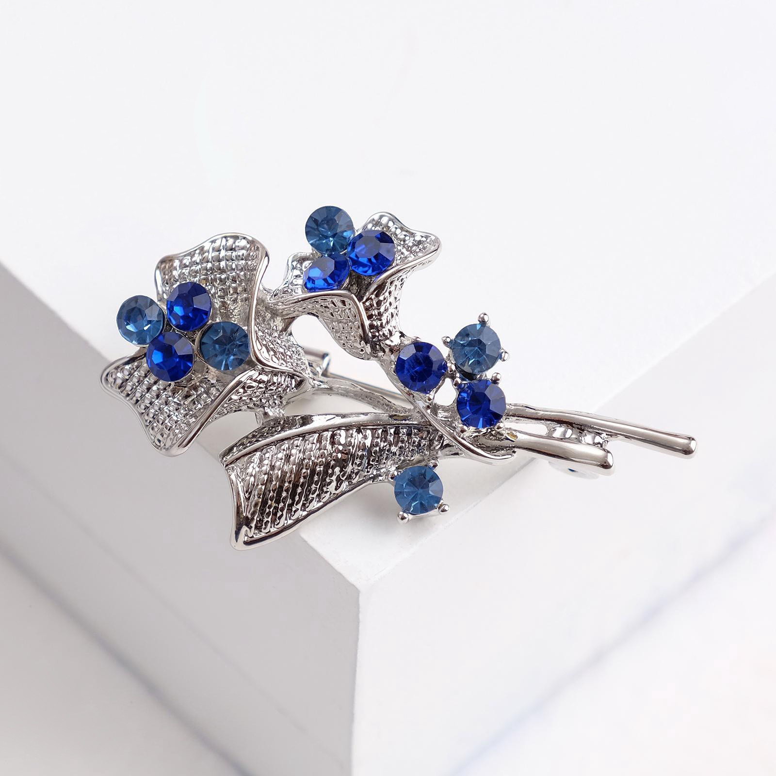 Брошь "Цветы" букет незабудок, цвет сине-голубой в серебре, 1.5x3x1.5 см., QF, Китай
