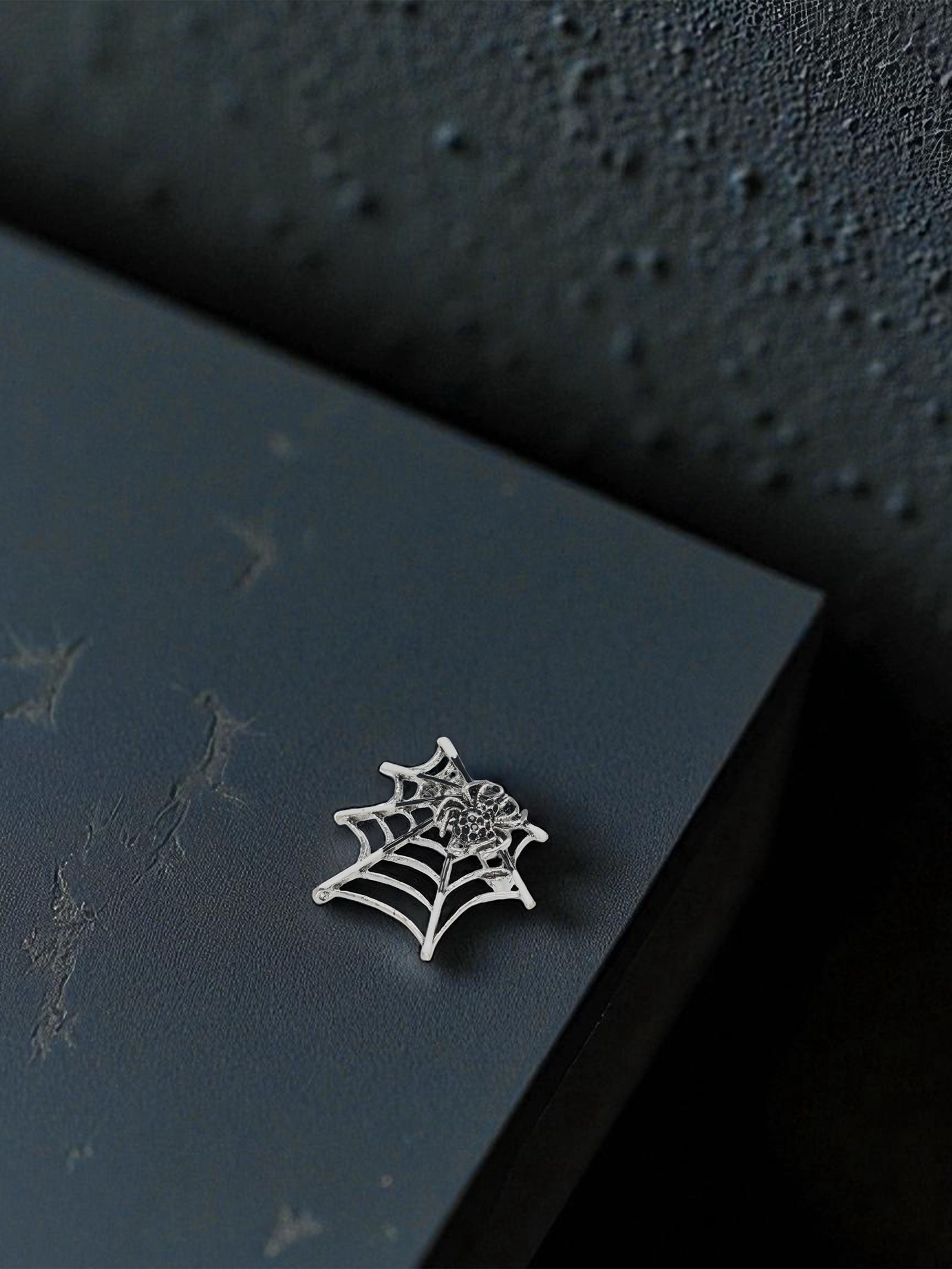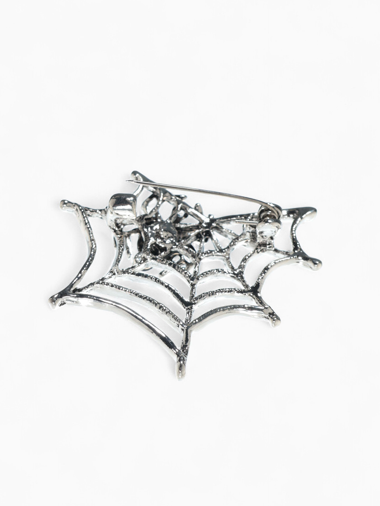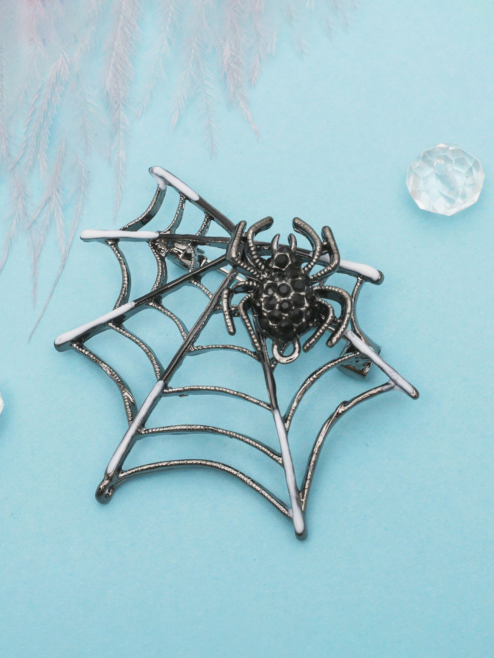 Брошь "Паук в паутине", черно-белая в серебре, 4.5x5x1.5 см., QF, Китай
