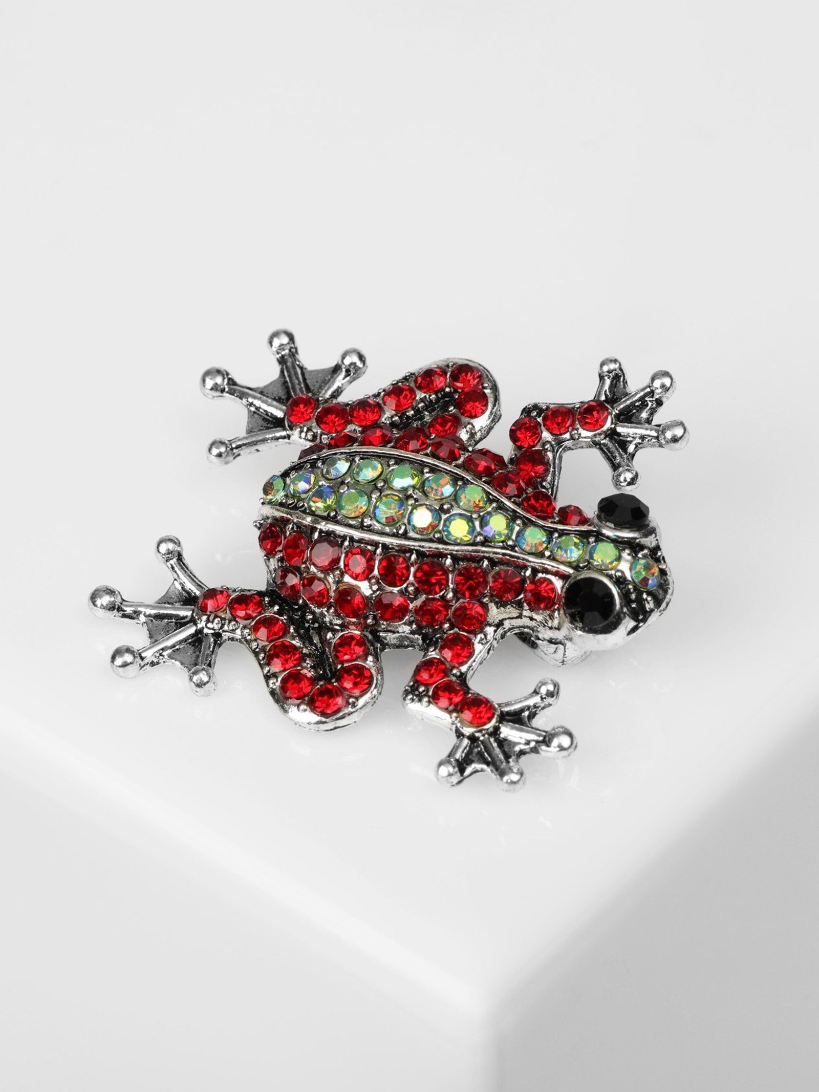 Брошь "Лягушка", красно-зелёная в чернёном серебре, 4x4x1.5 см., QF, Китай