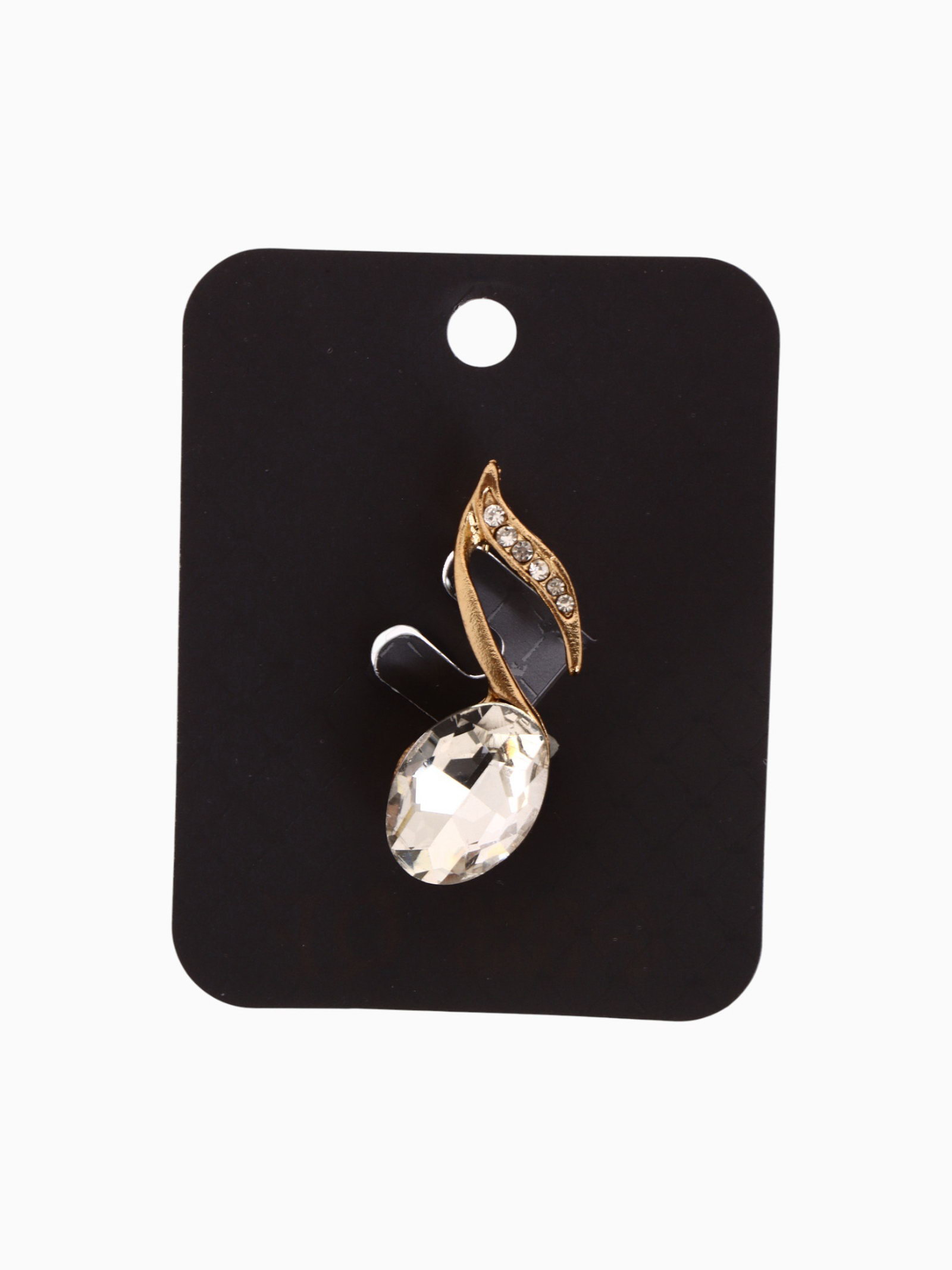 Брошь "Нота", из симфонии, белая в золоте, 2.5x4x1.5 см., QF, Китай