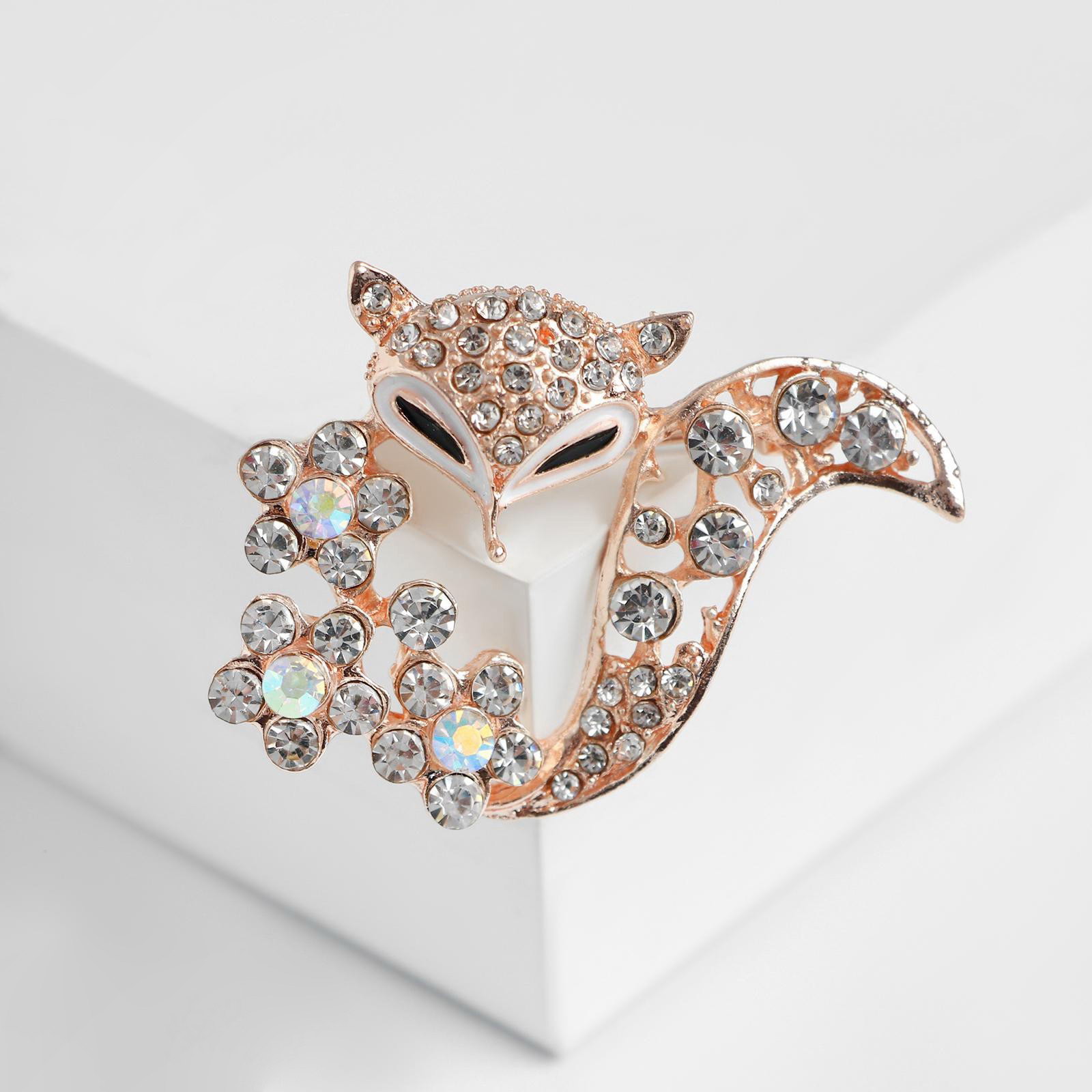 Брошь "Лиса" в цветах, цвет белый в золоте, 3.5x4.5x1 см., QF, Китай