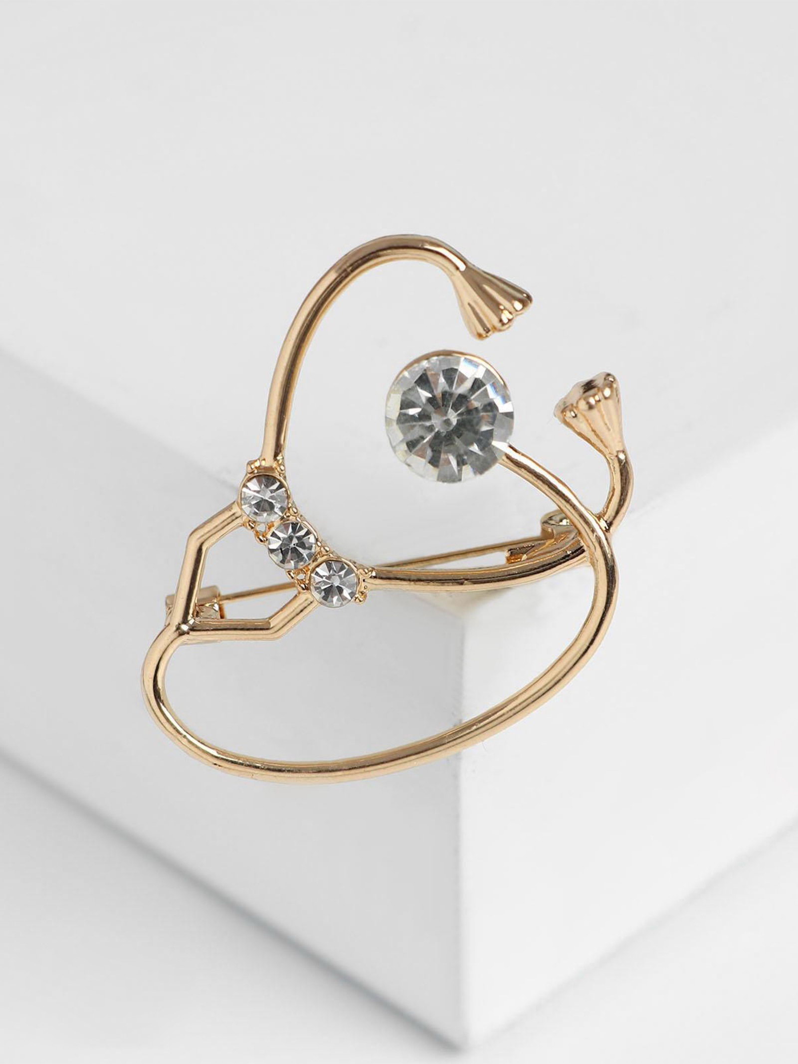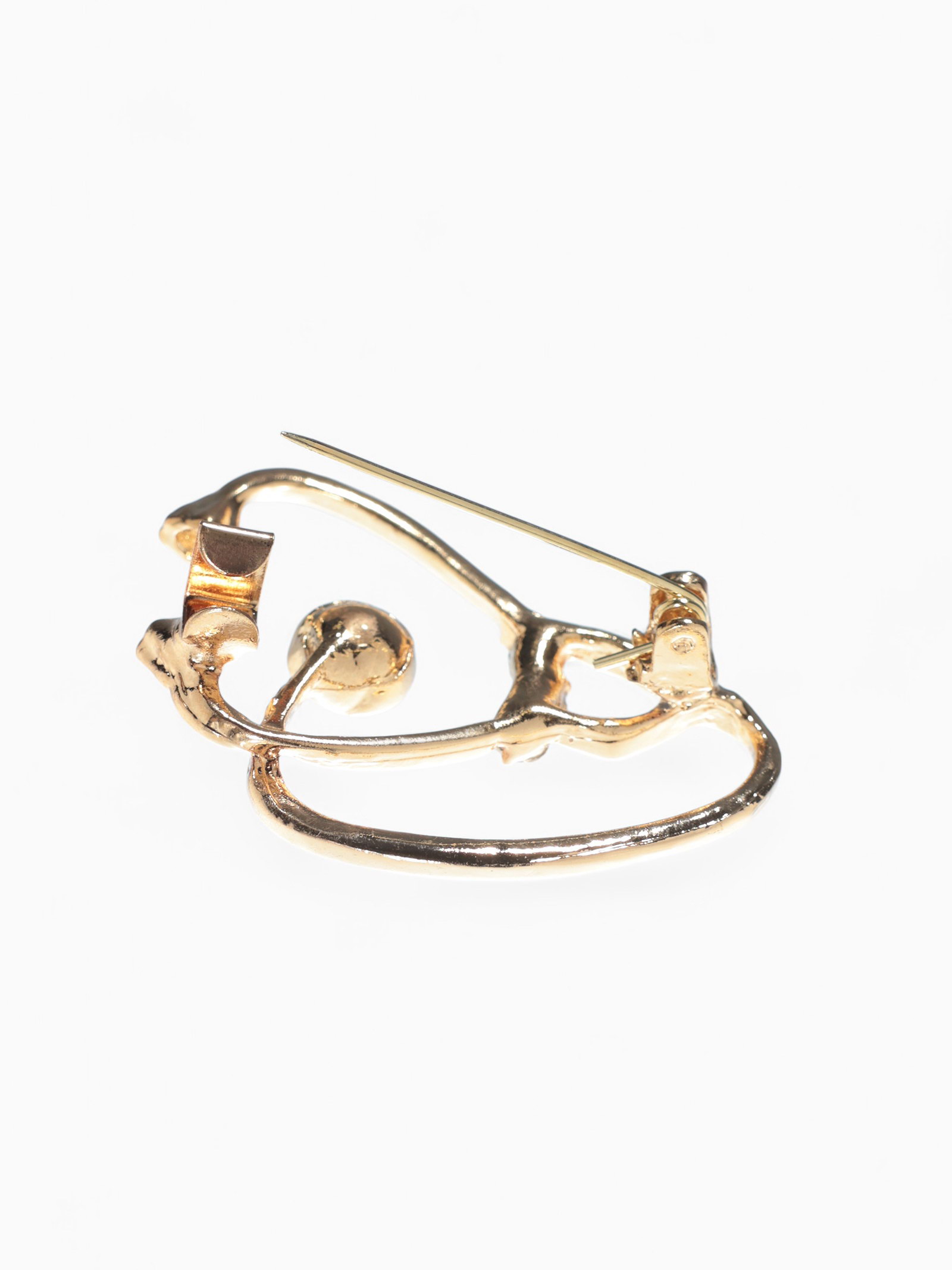 Брошь "Стетоскоп" крупный, белая в золоте, 3x4x0.5 см., QF, Китай