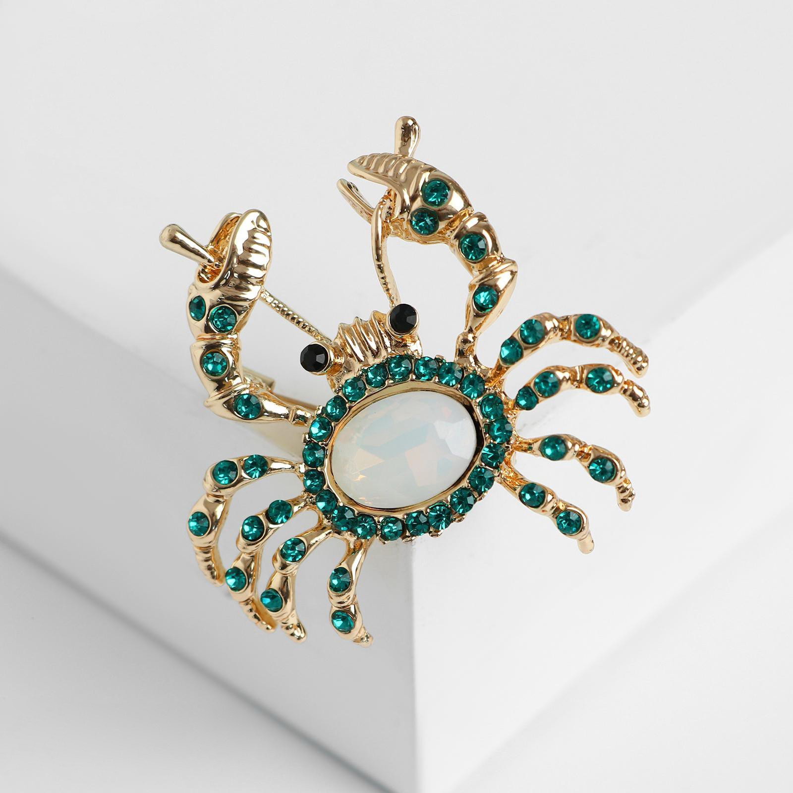Брошь "Крабик", цвет морской в золоте, 4.6x4.3x0.8 см., Queen fair, Китай
