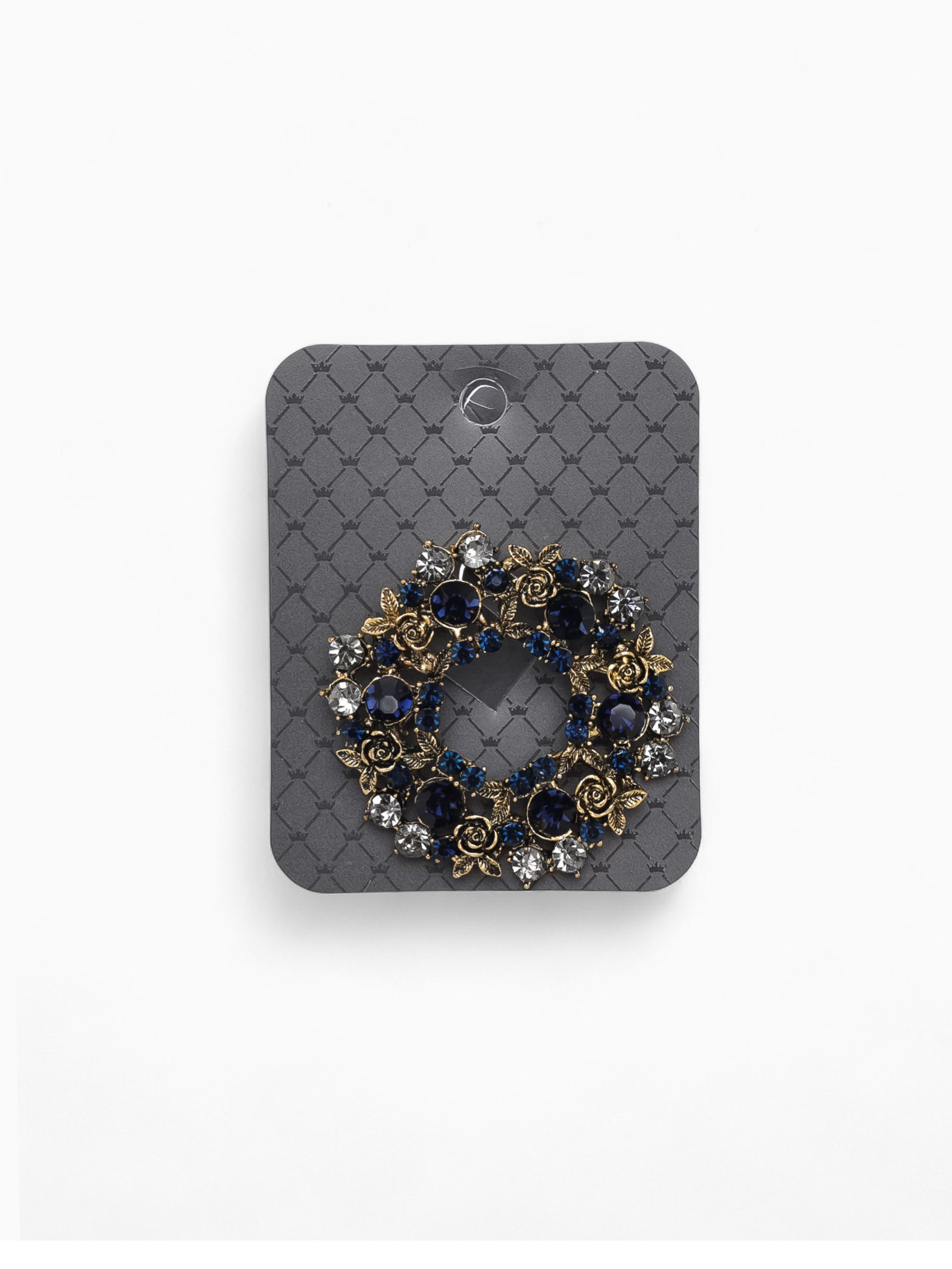 Брошь "Императрица" круг с розами, серо-синяя в чернёном золоте, 4.5x4.5x0.8 см., QF, Китай