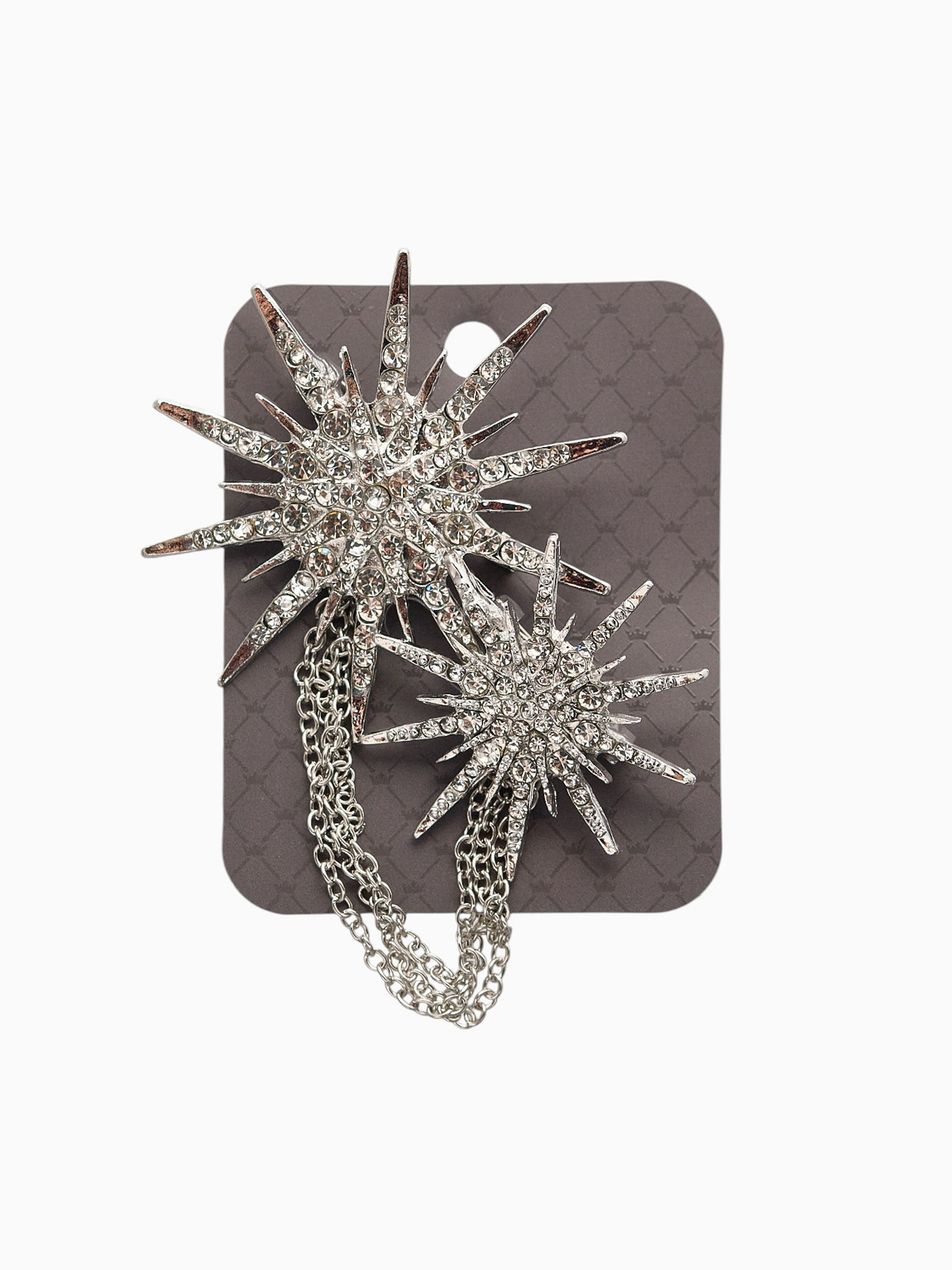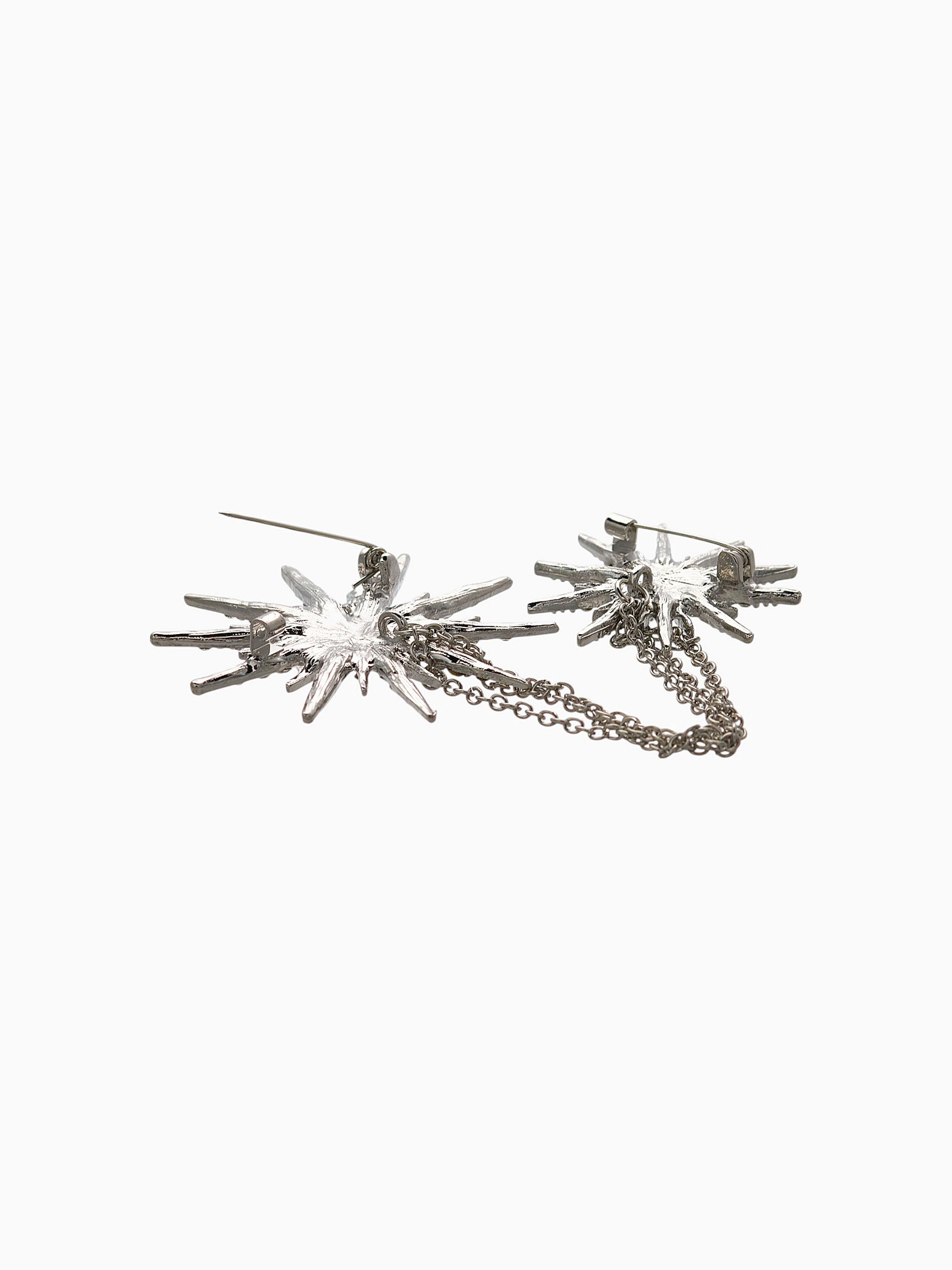 Брошь "Сияние" с цепочками, цвет белый в серебре, 7x5.5x0.5 см., QF, Китай