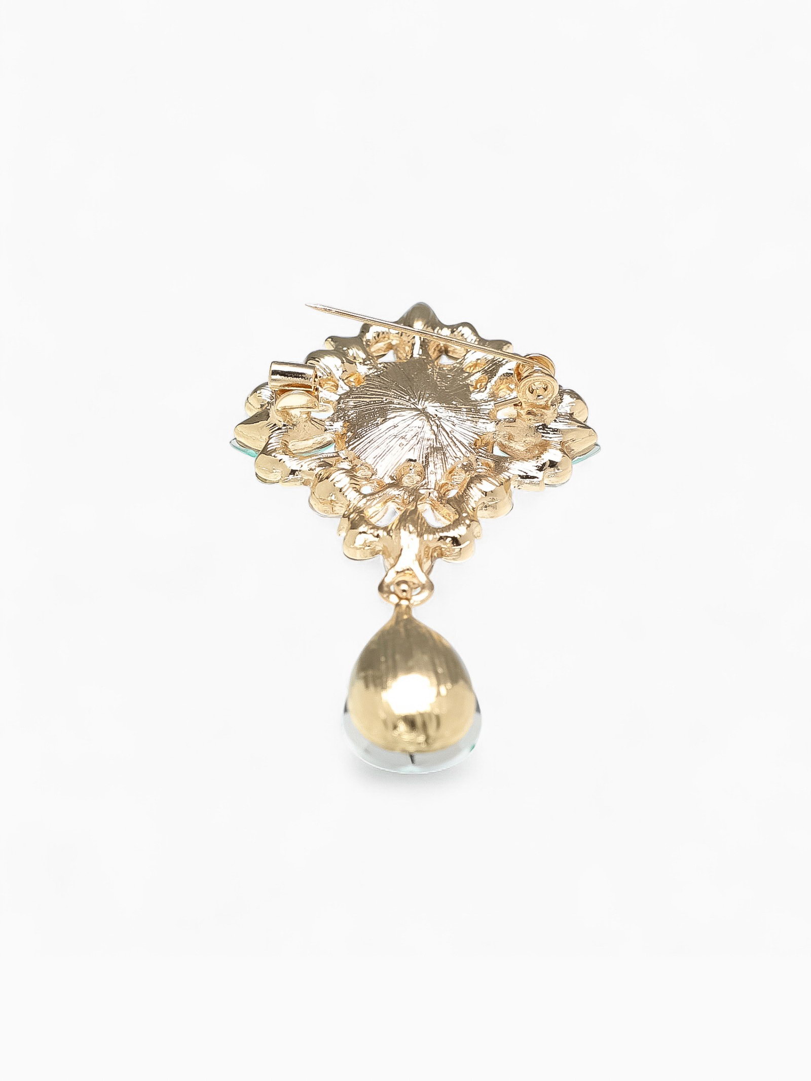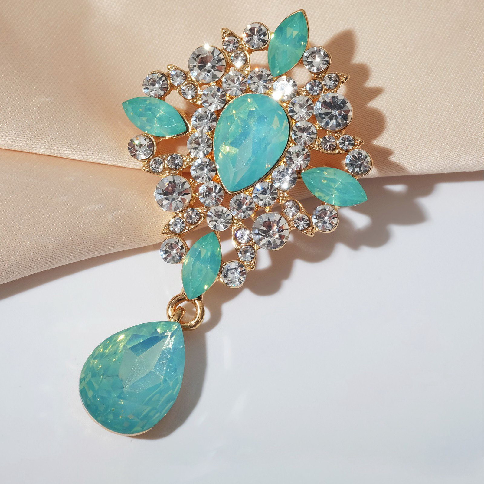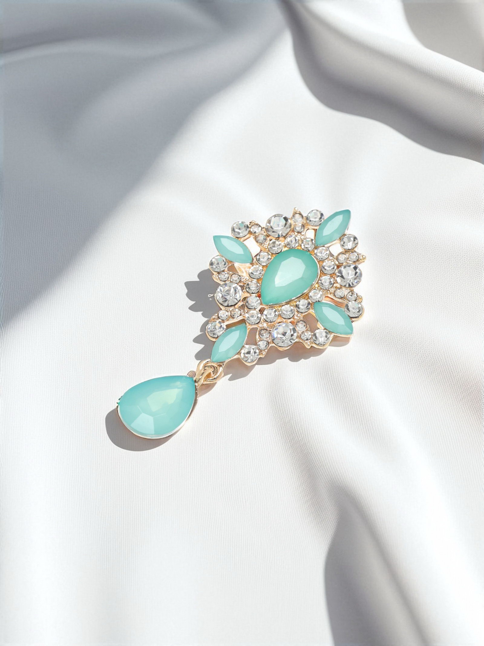 Брошь "Императрица" гамма, бело-зелёная в золоте, 3.8x6.5x1.5 см., QF, Китай