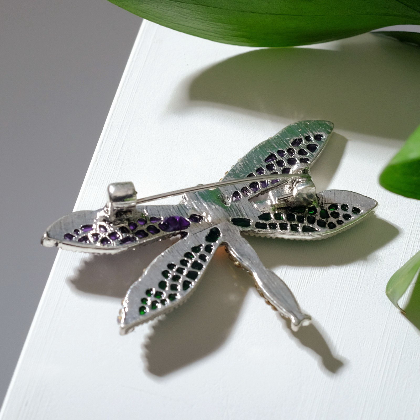 Брошь "Стрекоза", цветная в чернёном серебре, 3.5x4.5x0.8 см., QF, Китай