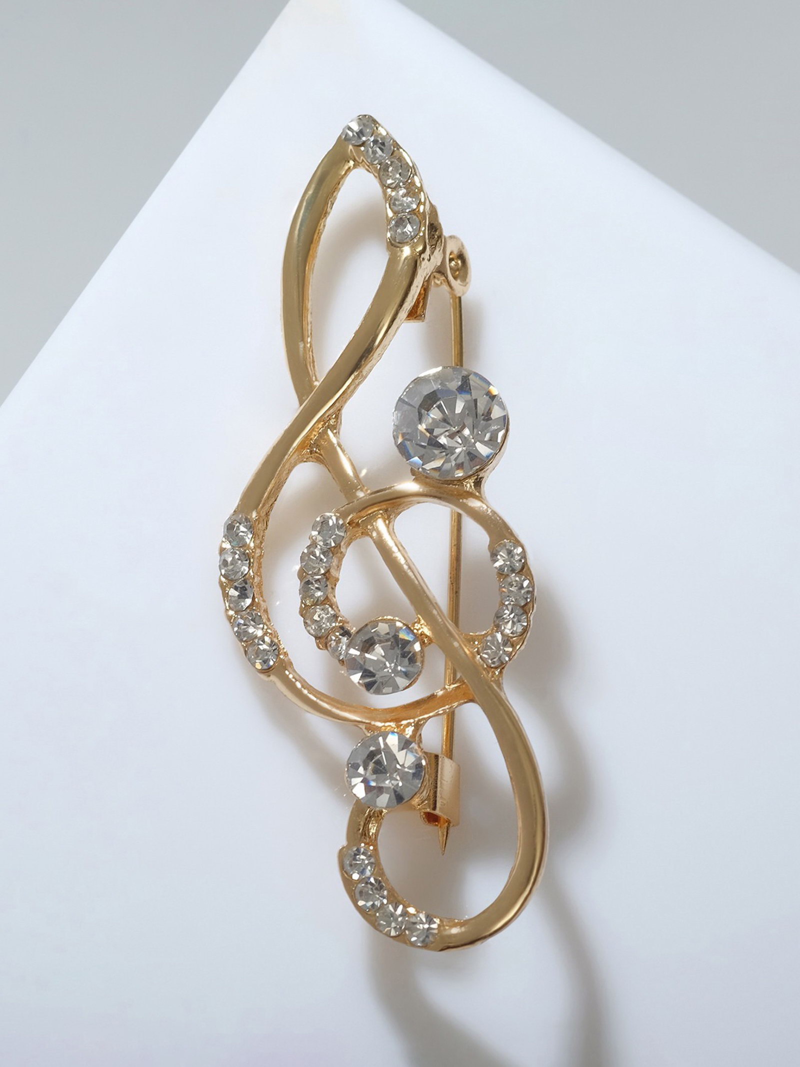 Брошь "Скрипичный ключ" изящный, цвет белый в золоте, 2x5.5x1.5 см., QF, Китай