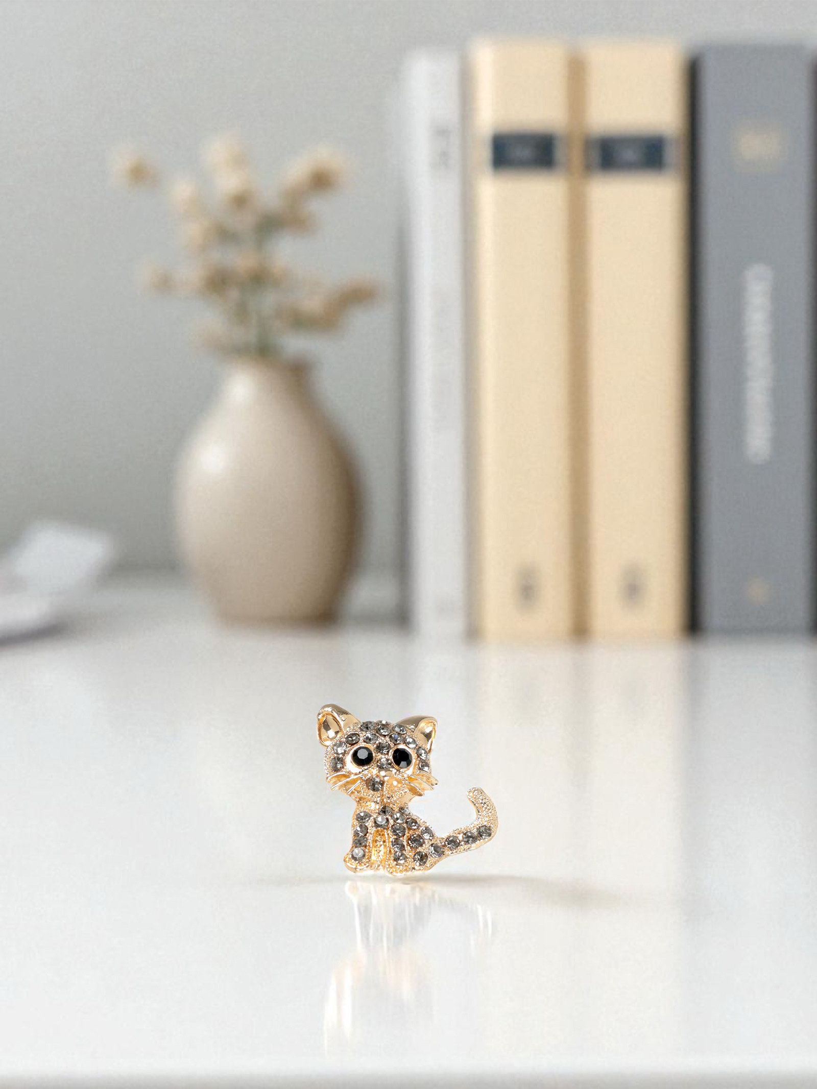 Брошь "Кошечка" очаровательная, чёрно-серая в золоте, 3x3x1 см., QF, Китай