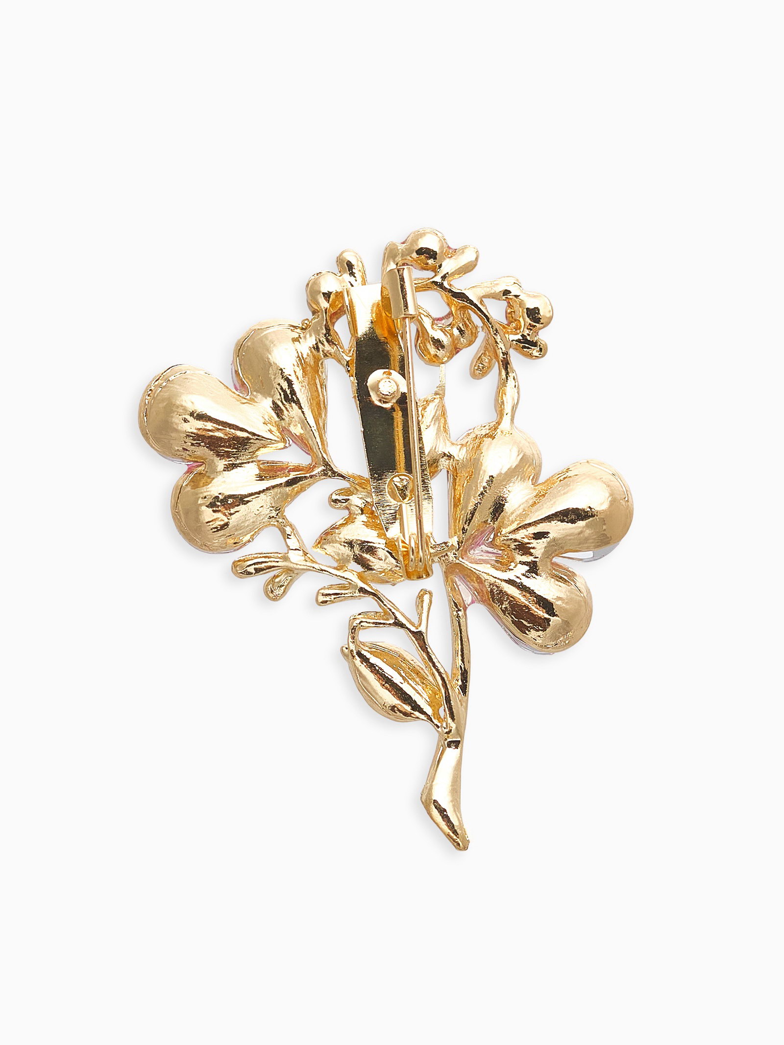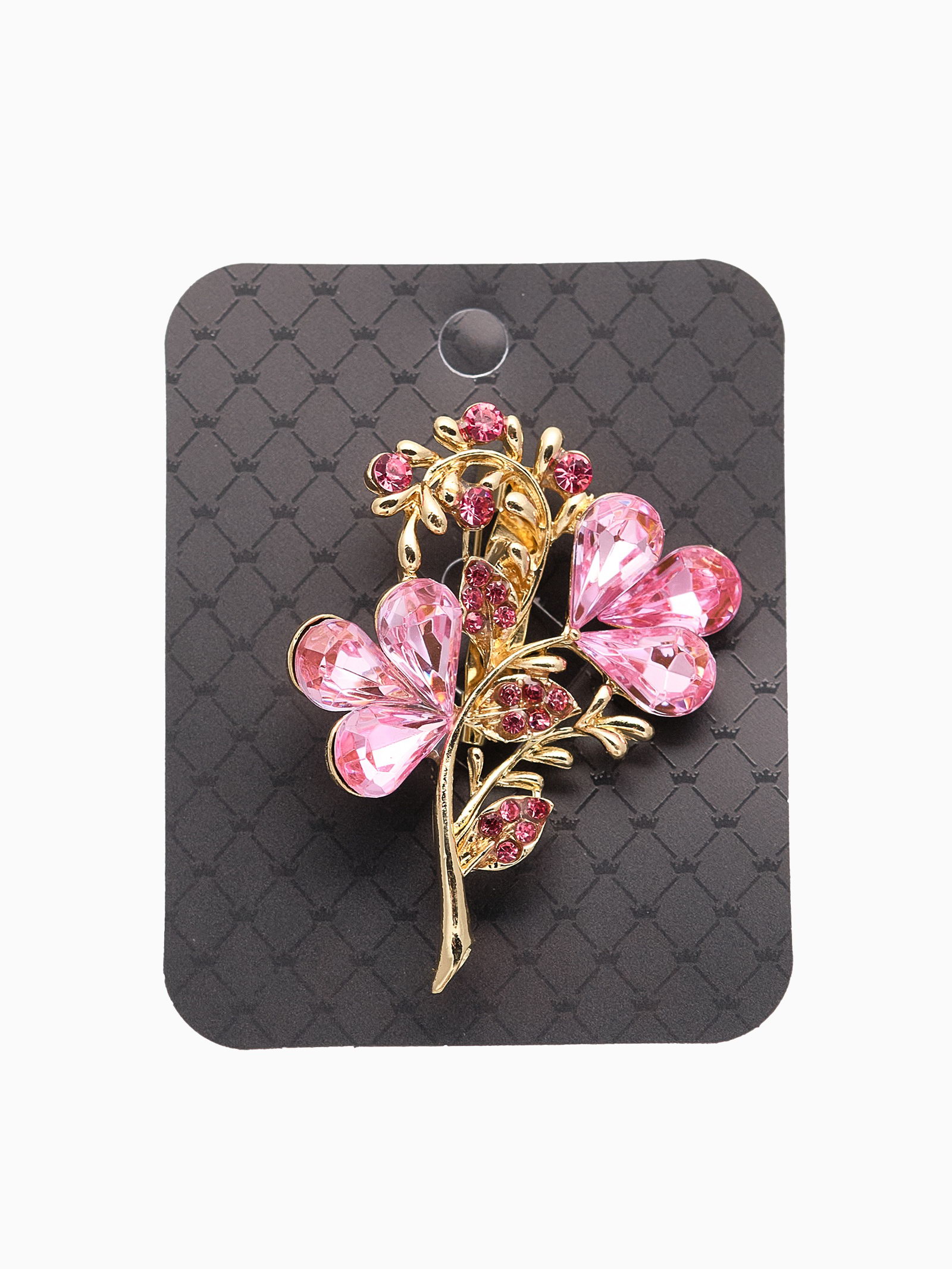 Брошь "Цветок" трилистник, розовая в золоте, 4x5.6x1.4 см., QF, Китай