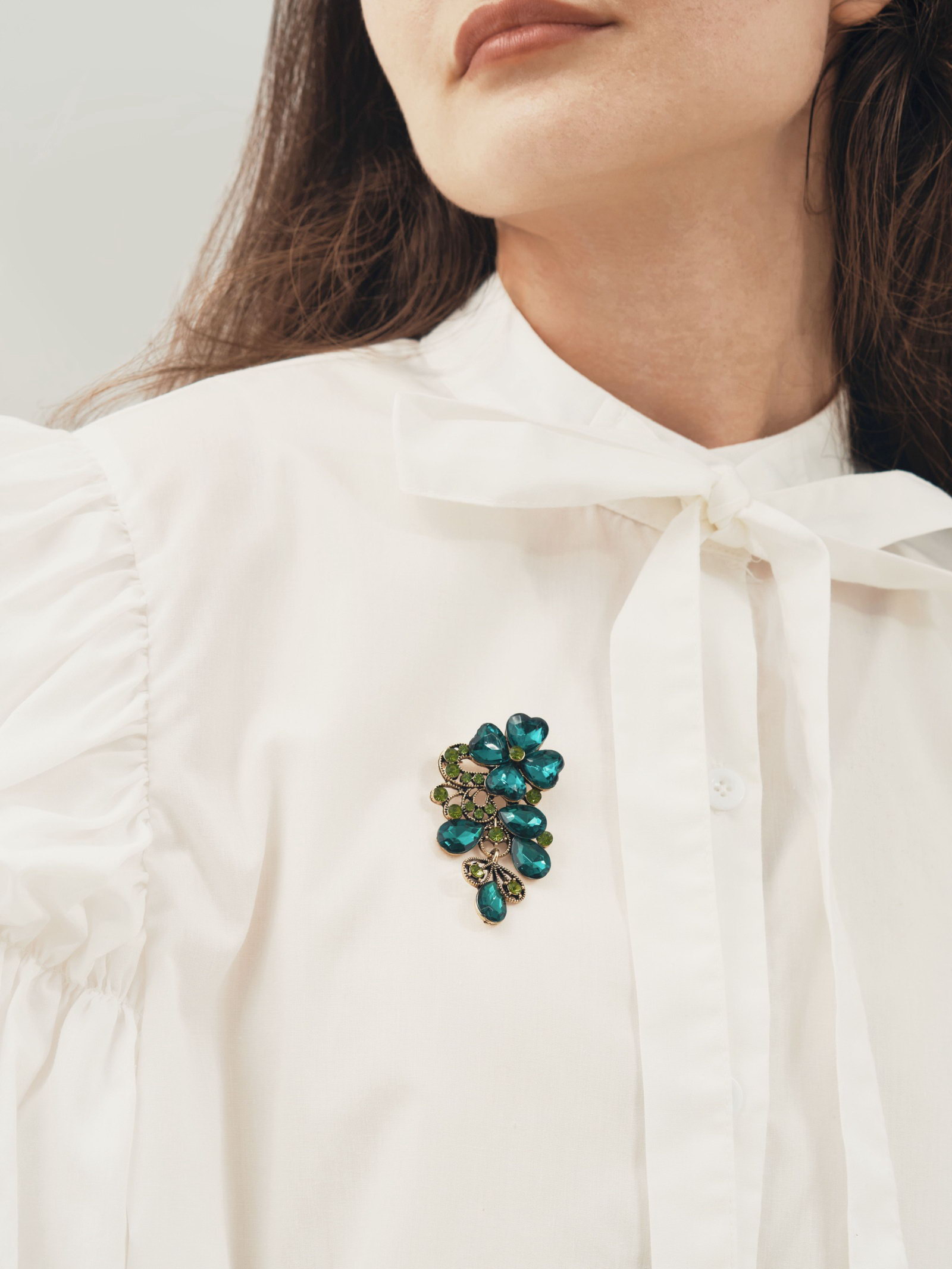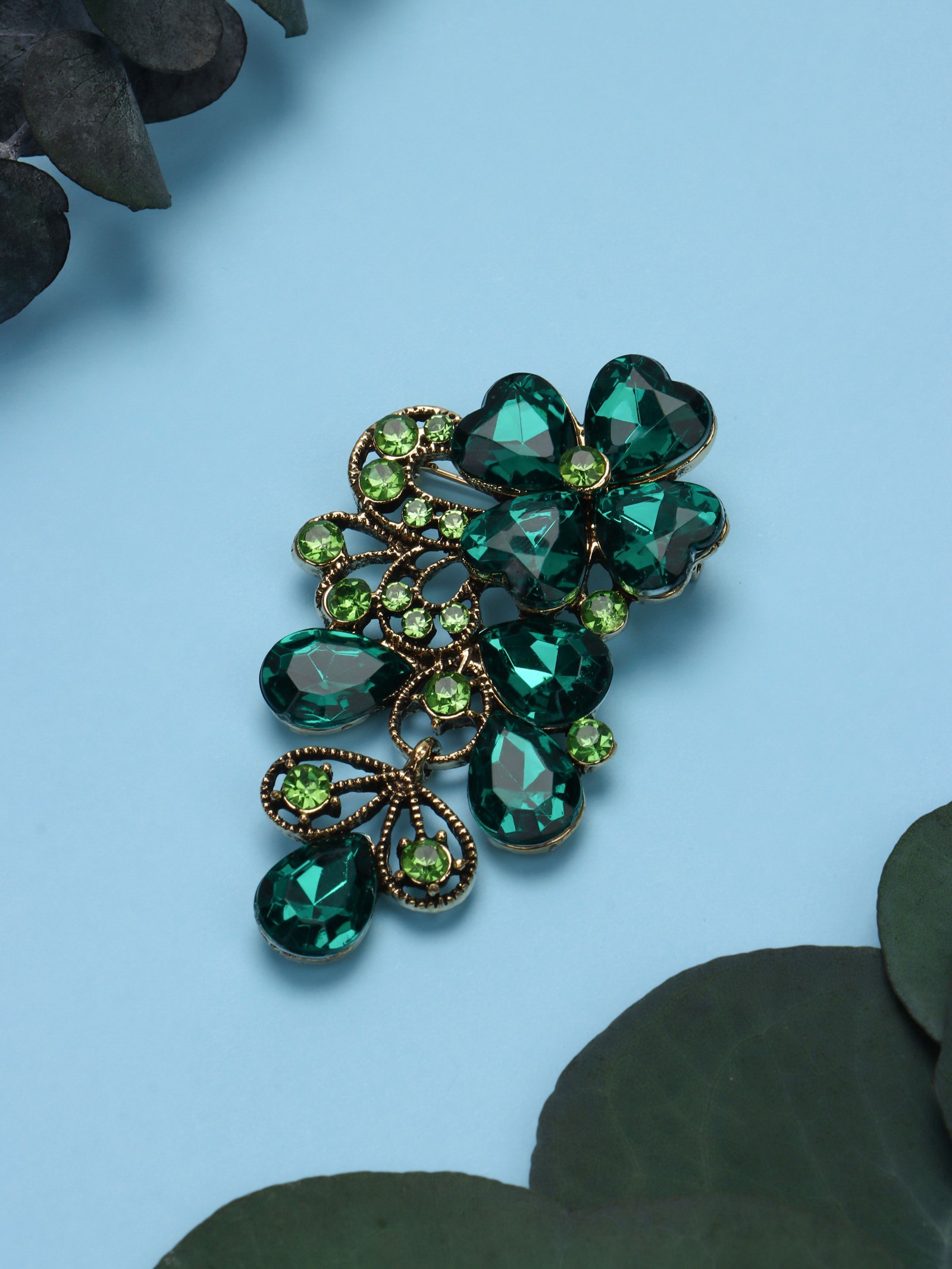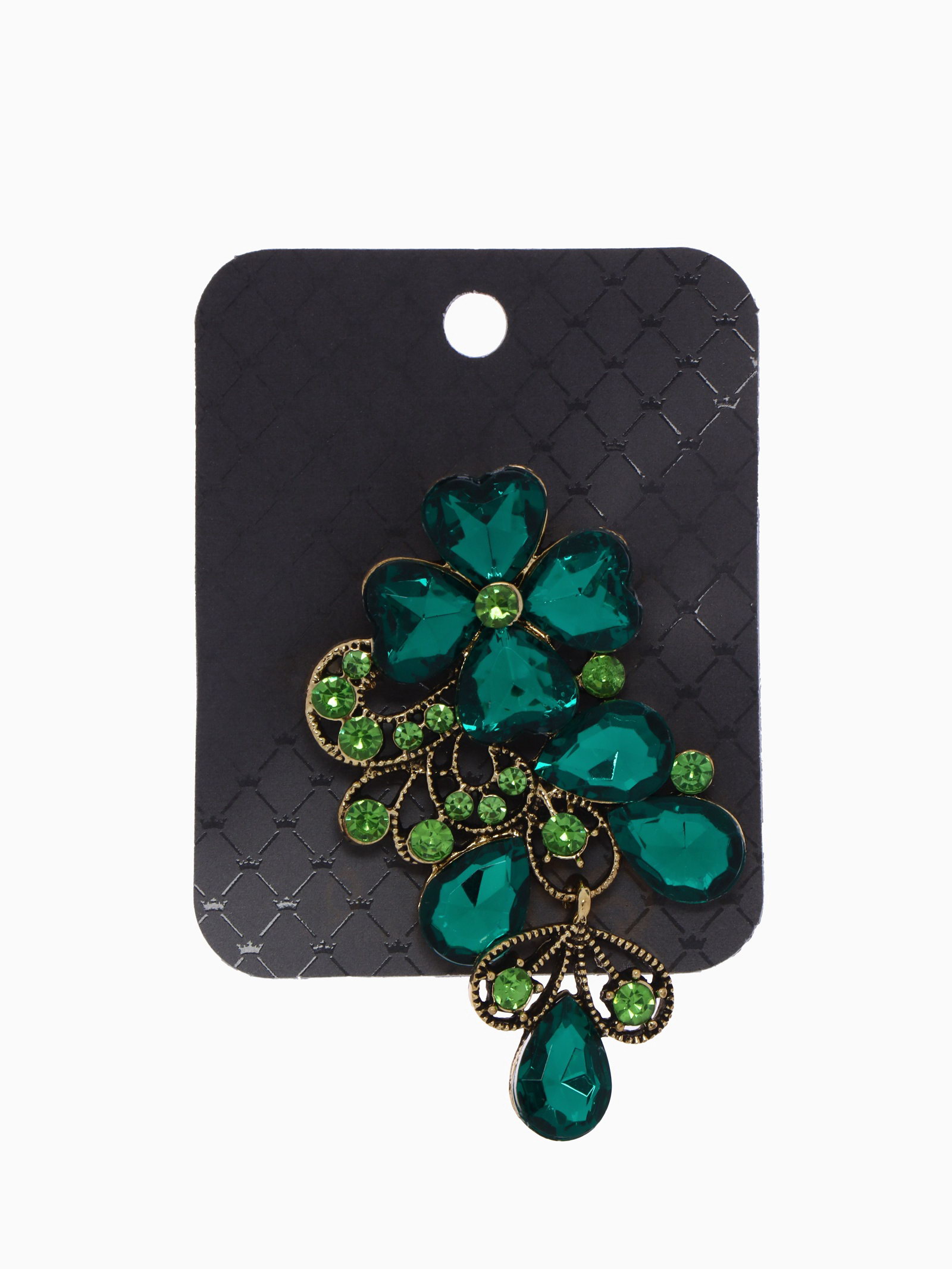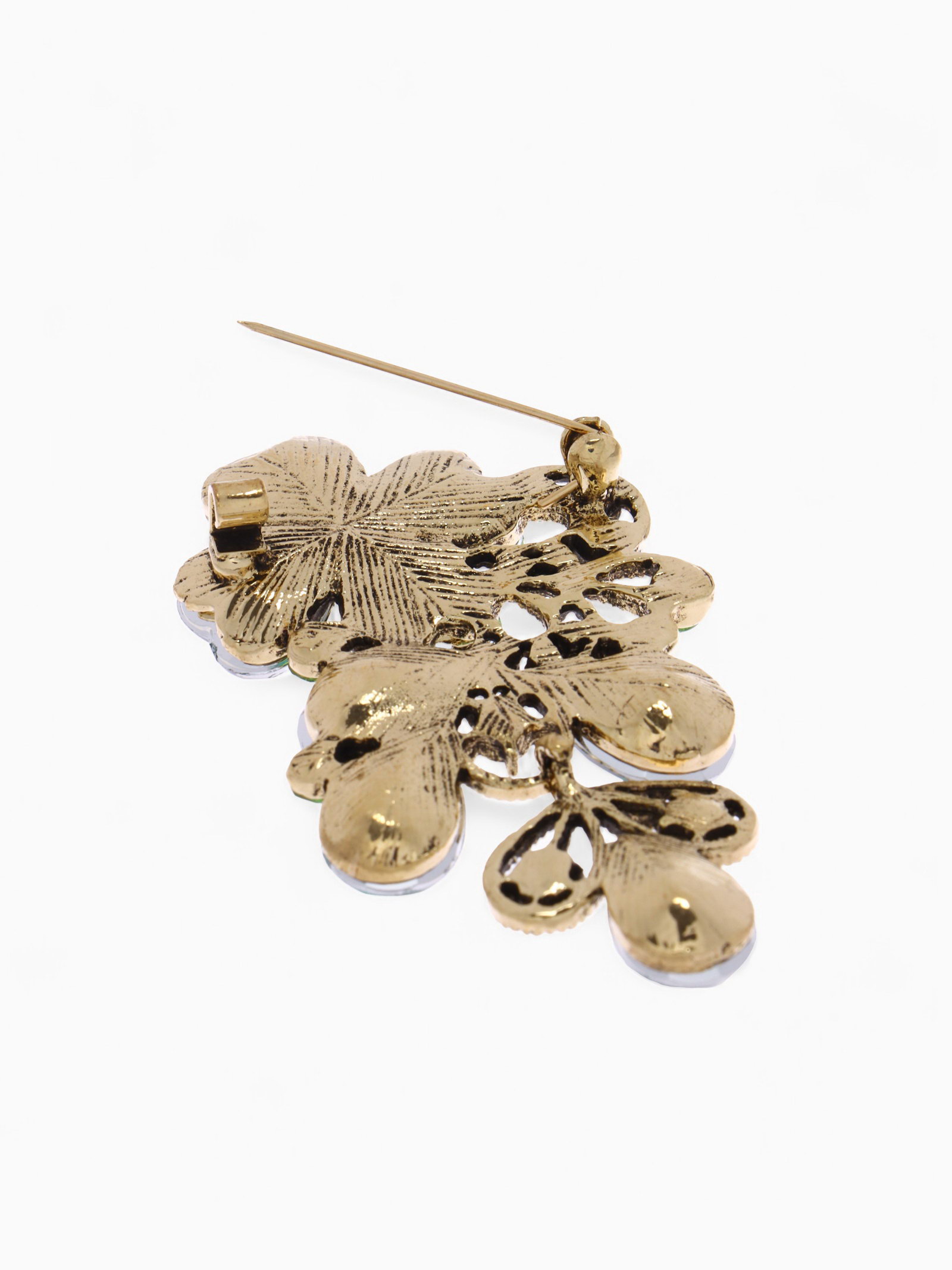 Брошь "Цветочная лоза", цвет изумрудный в чернёном золоте, 4x6.5x1.4 см., QF, Китай