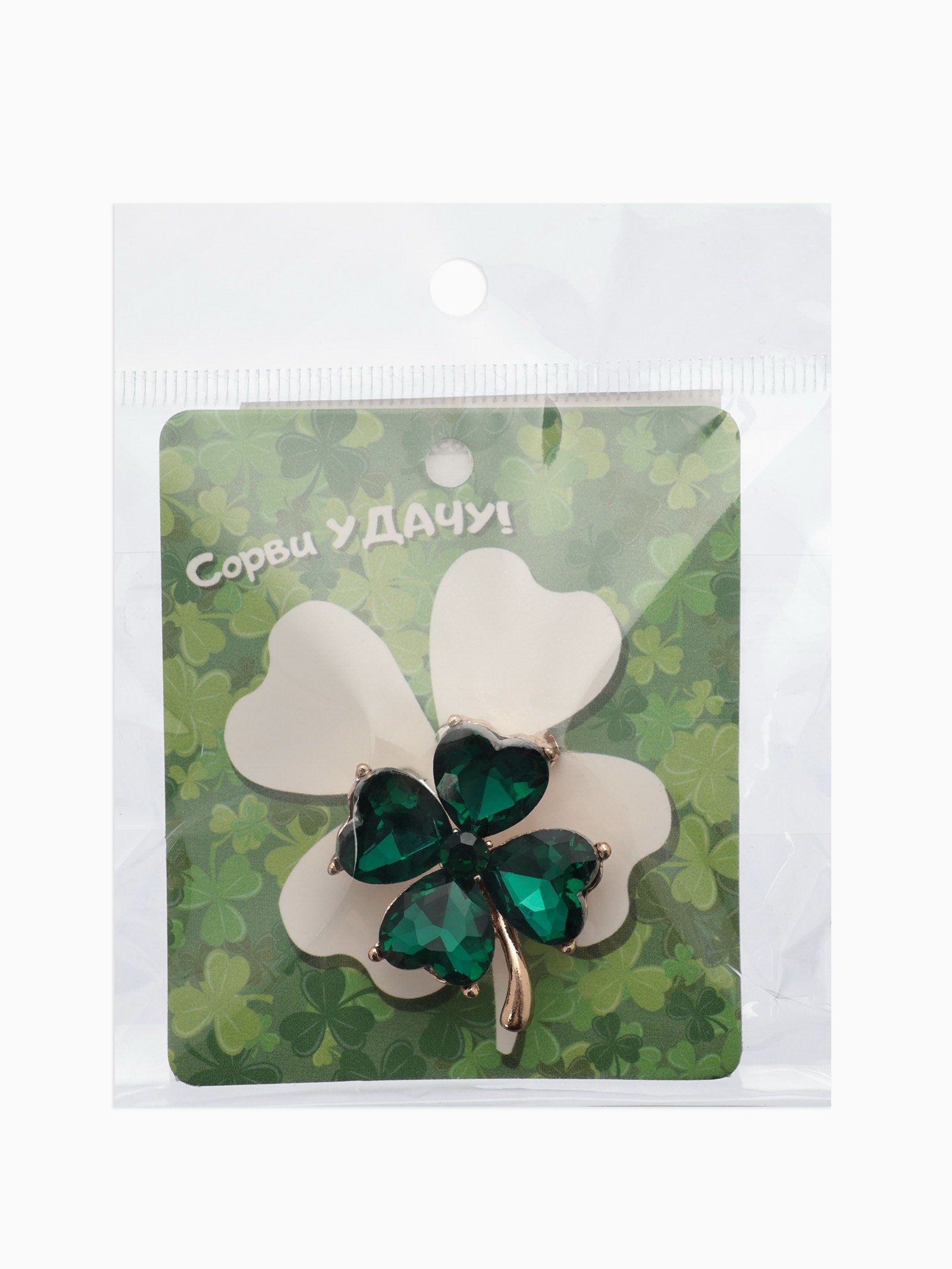 Брошь "Клевер" роскошный, тёмно-зелёная в золоте, 0.3x2x2.5 см., QF, Китай