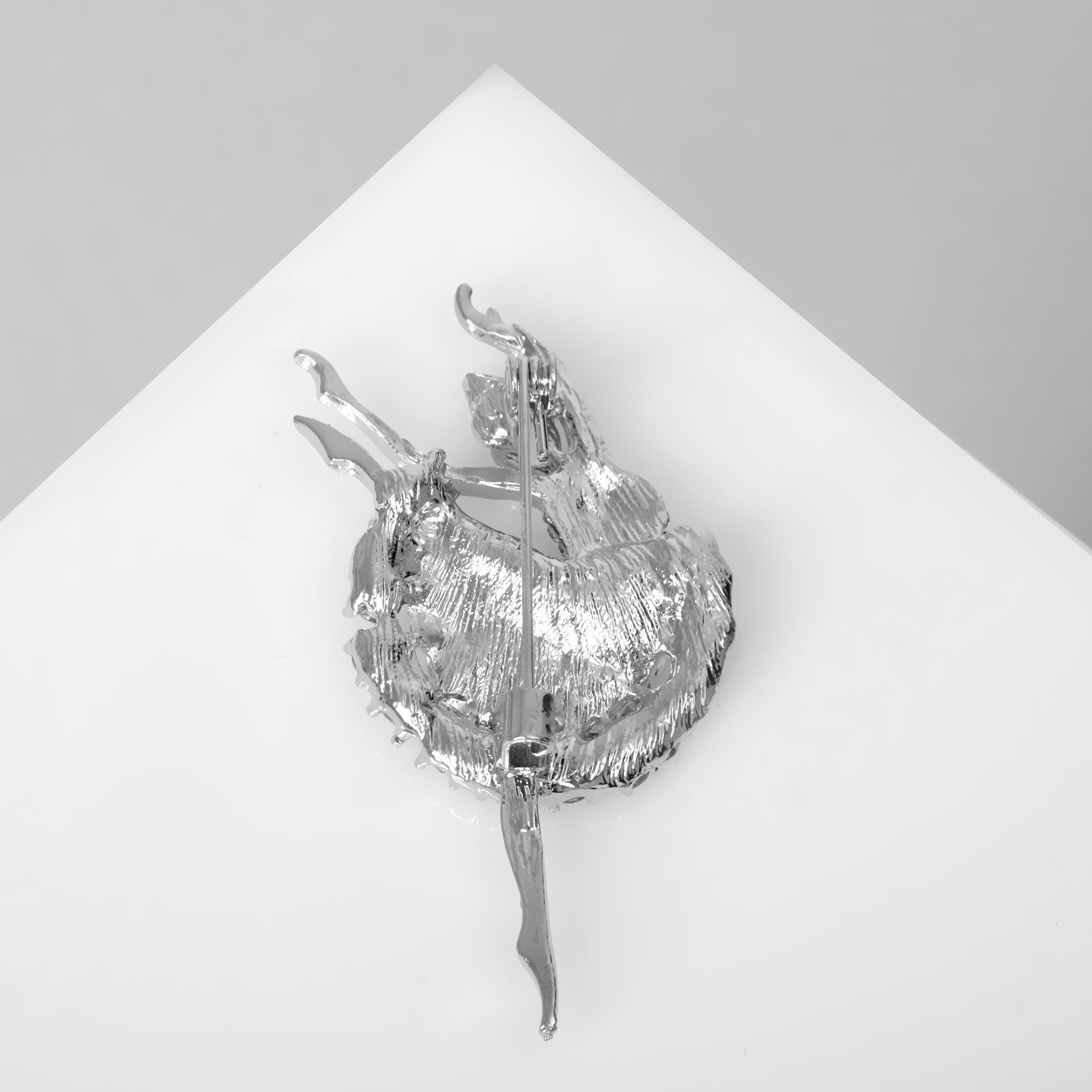 Брошь "Балерина", белая в серебре, 2.2x5.7x1.5 см., QF, Китай