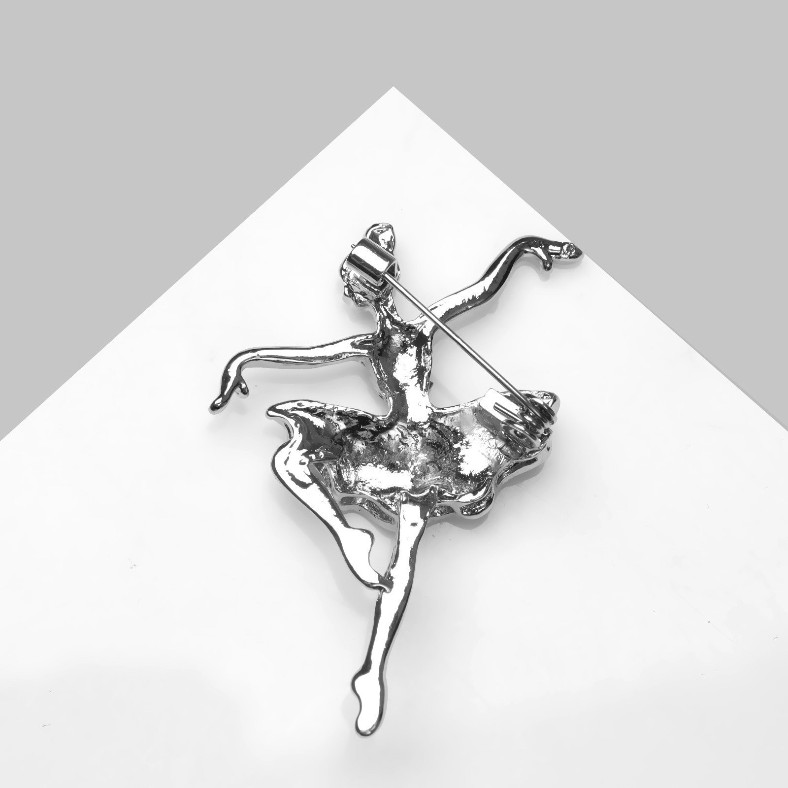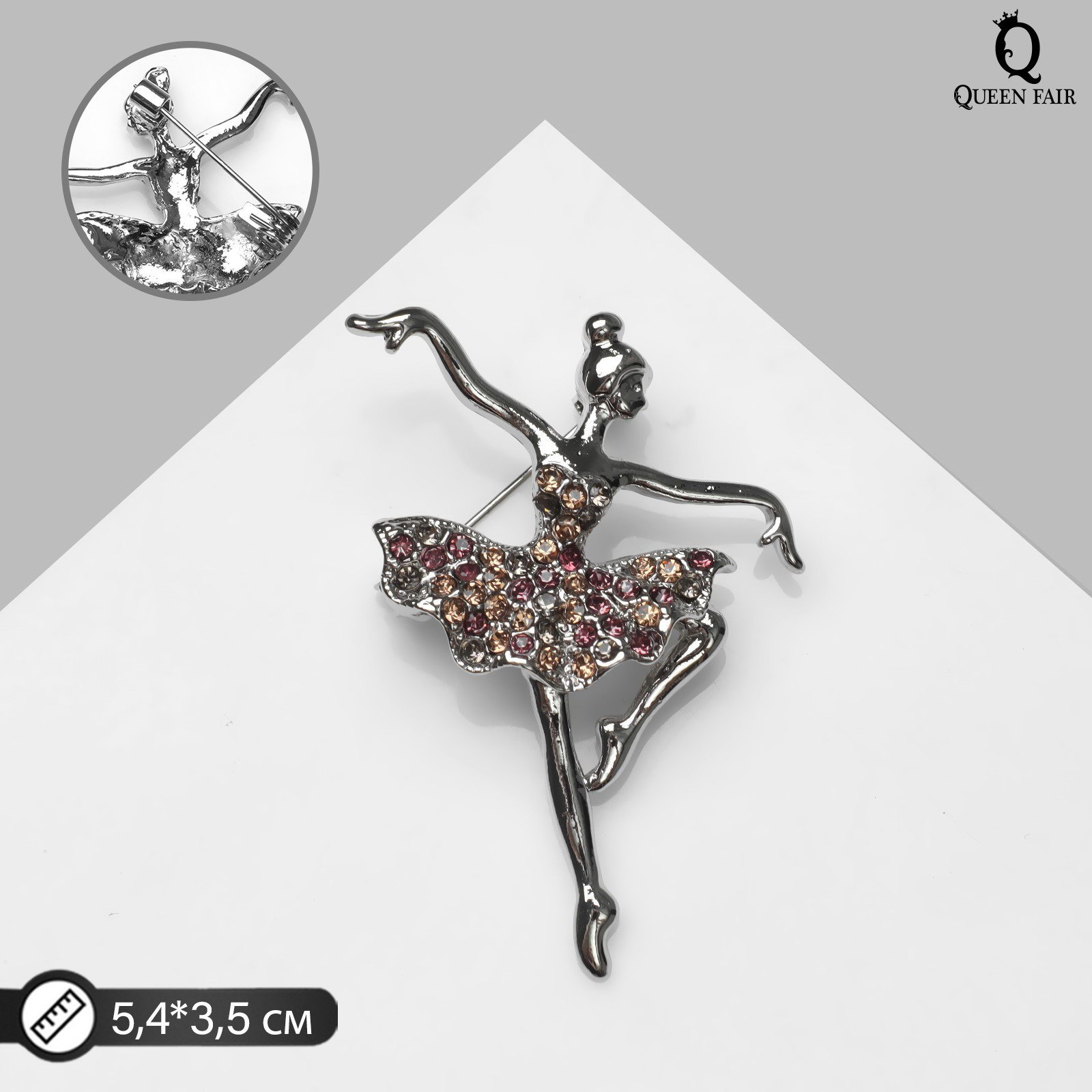 Брошь "Балерина", цветная в серебре, 3.5x5.4x1 см., QF, Китай