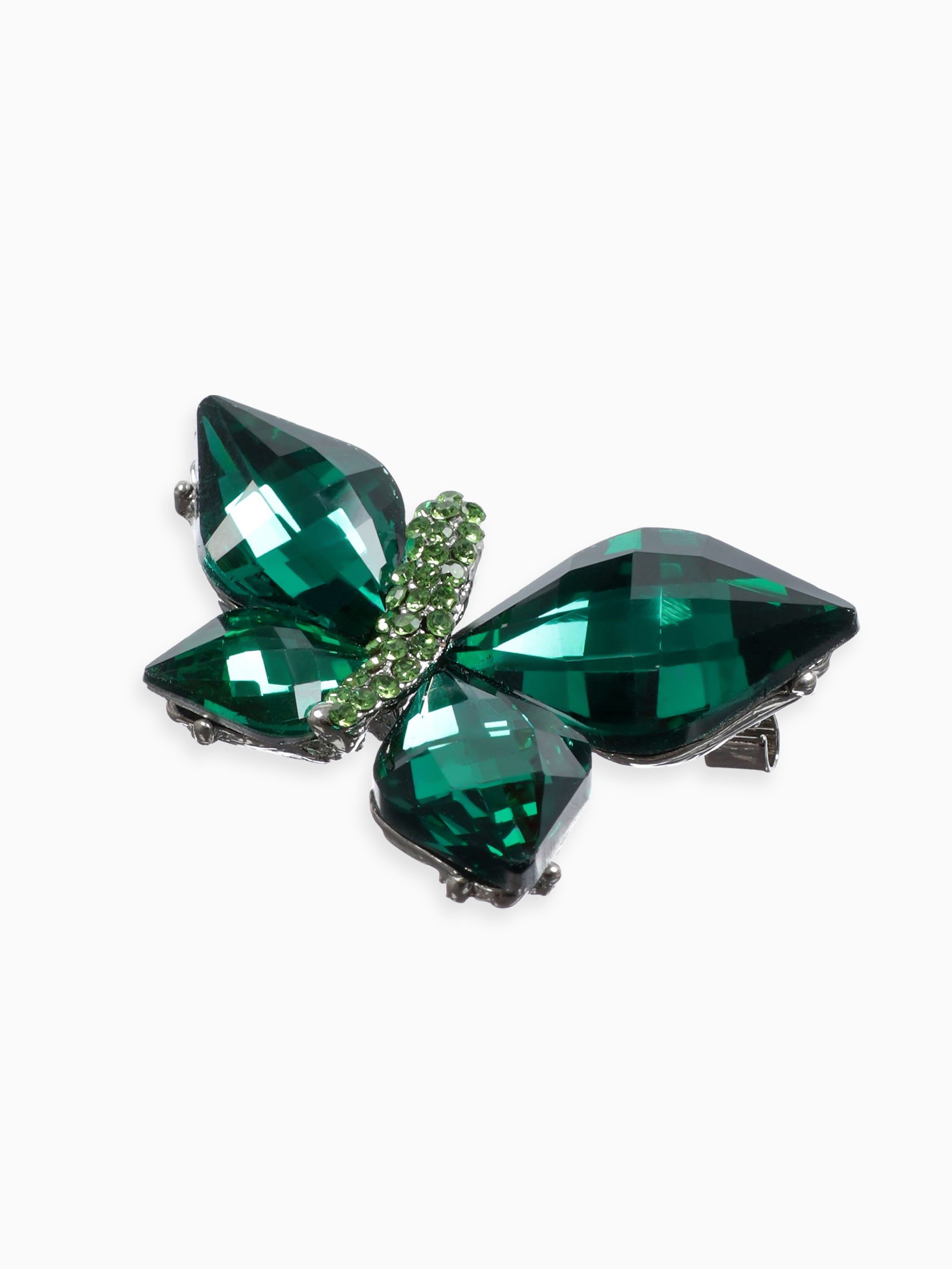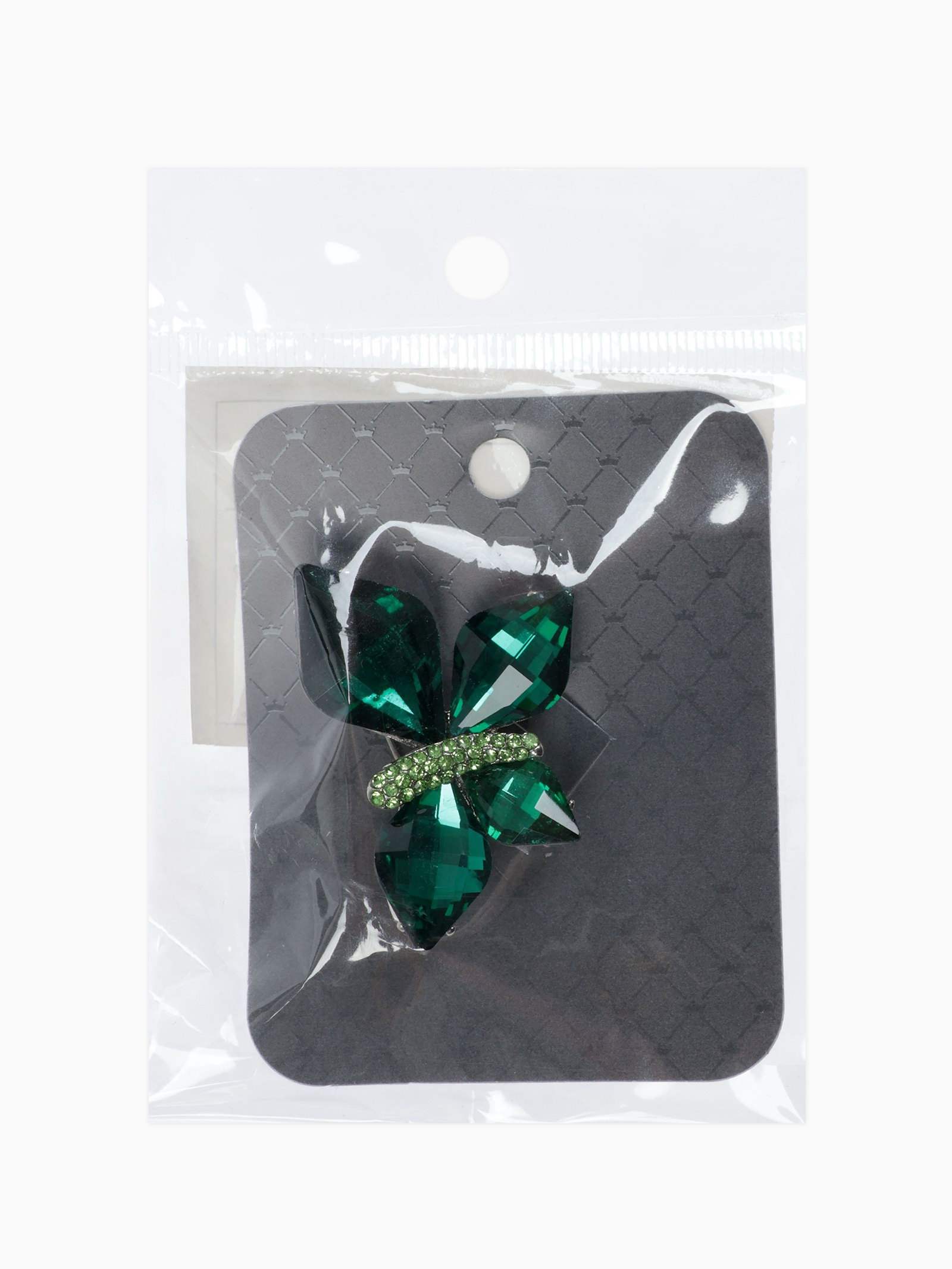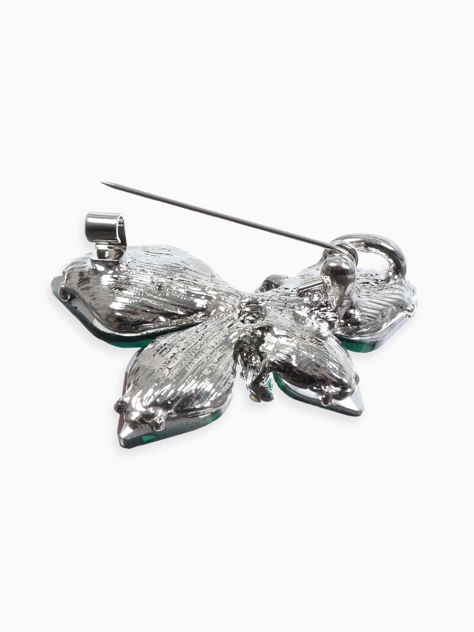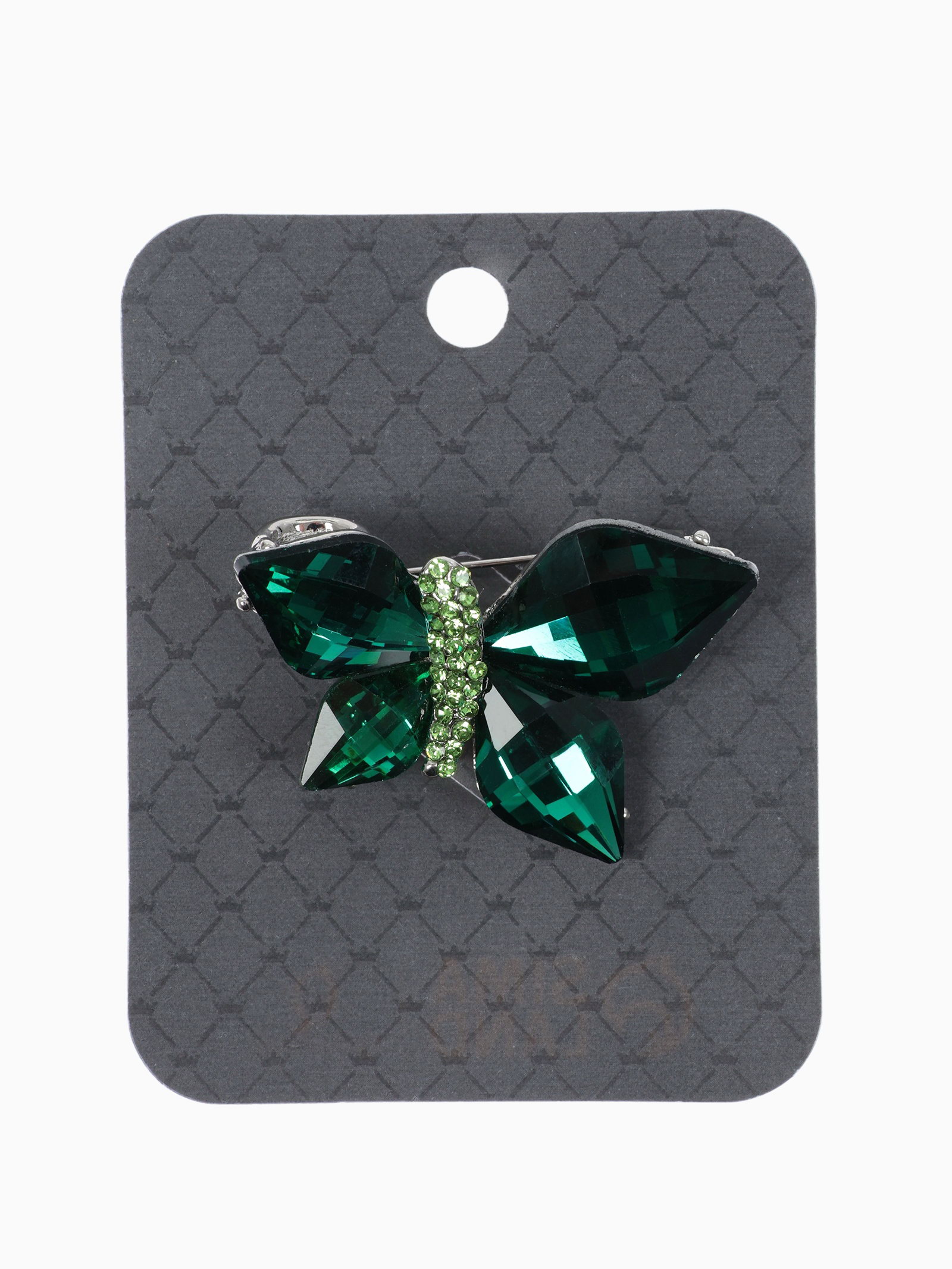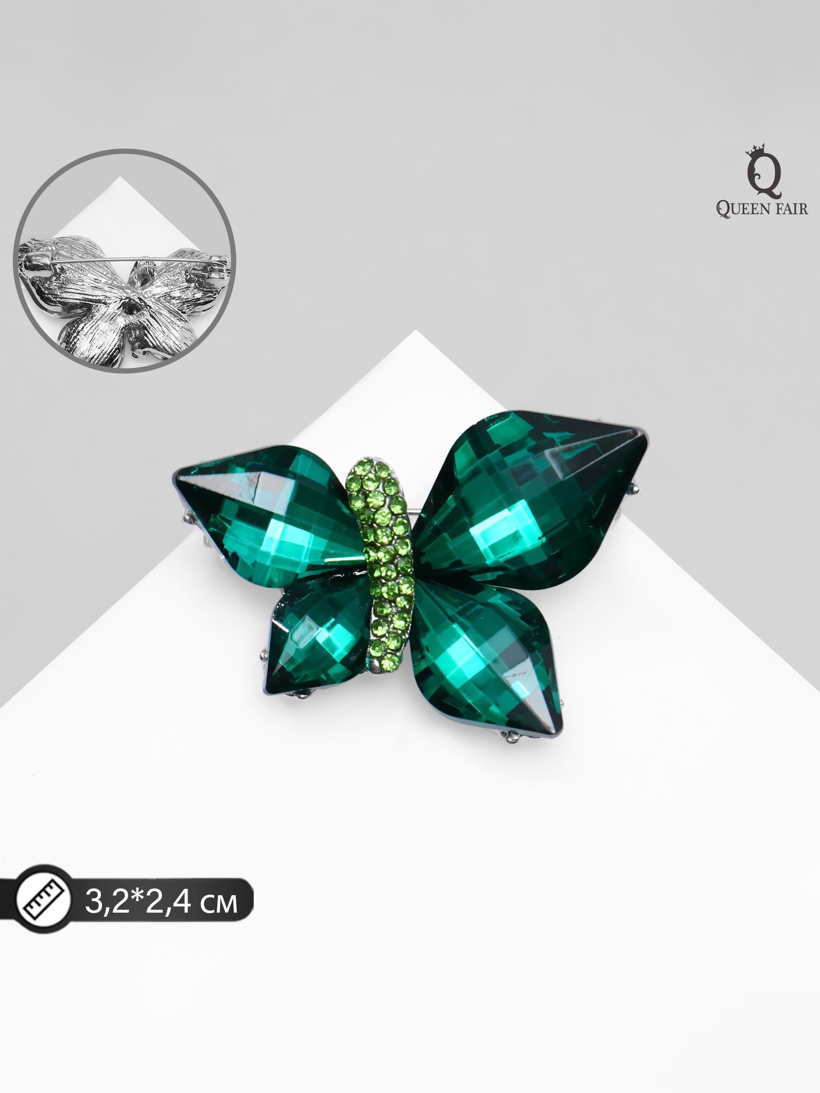 Брошь "Бабочка" крупная, зелёная в серебре, 3.2x2.4x1.5 см., QF, Китай
