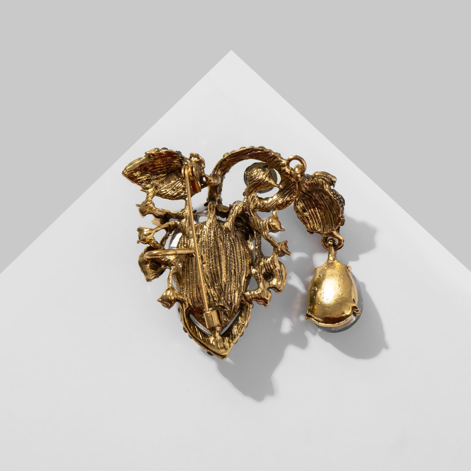 Брошь "Цветы" бутоны с подвеской, цветная в чернёном золоте, 5.3x9.5x1.3 см., QF, КИТАЙ