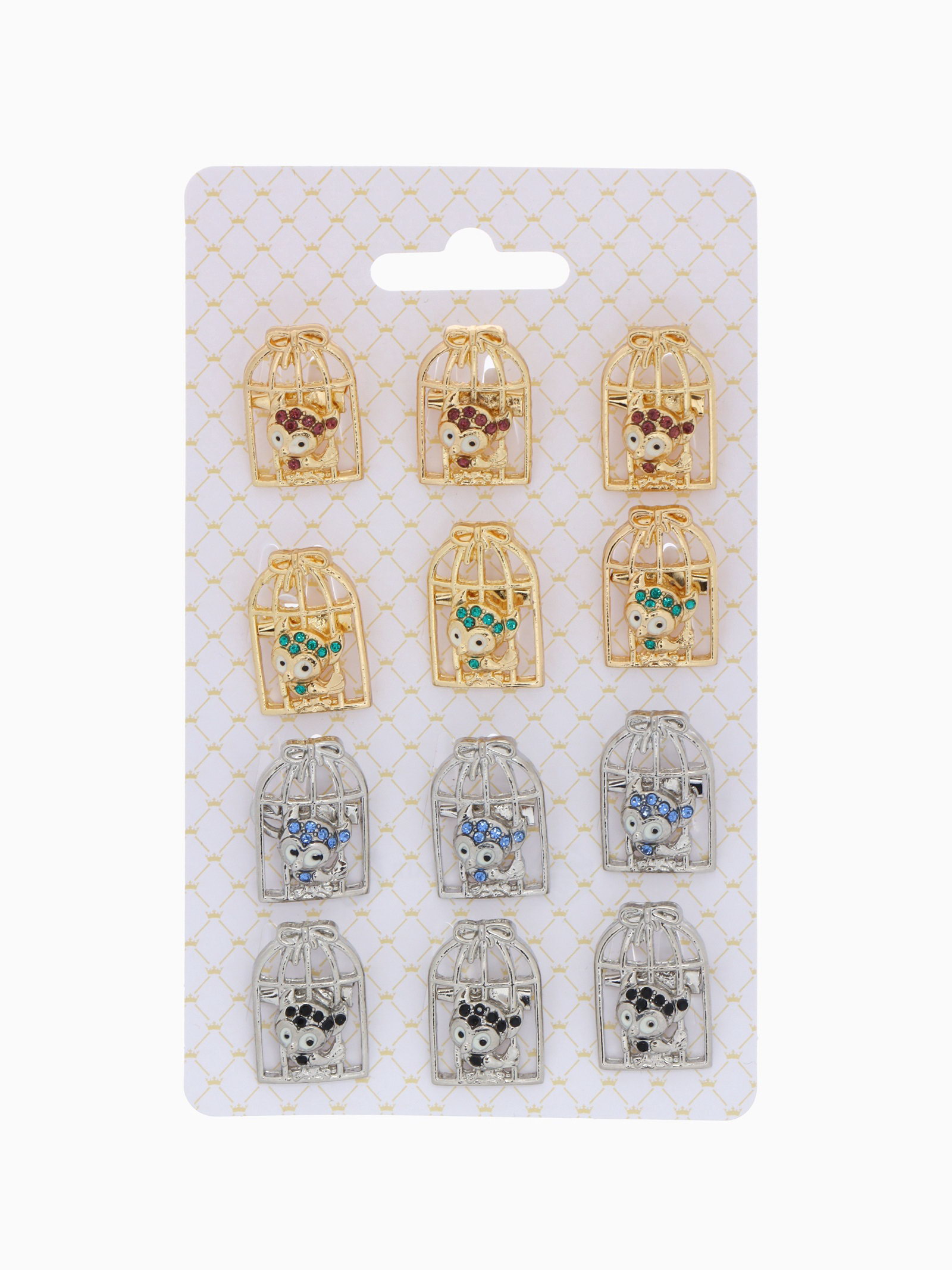 Брошь "Птица" сова в клетке, МИКС, 1.7x2.5x0.5 см., QF, Китай