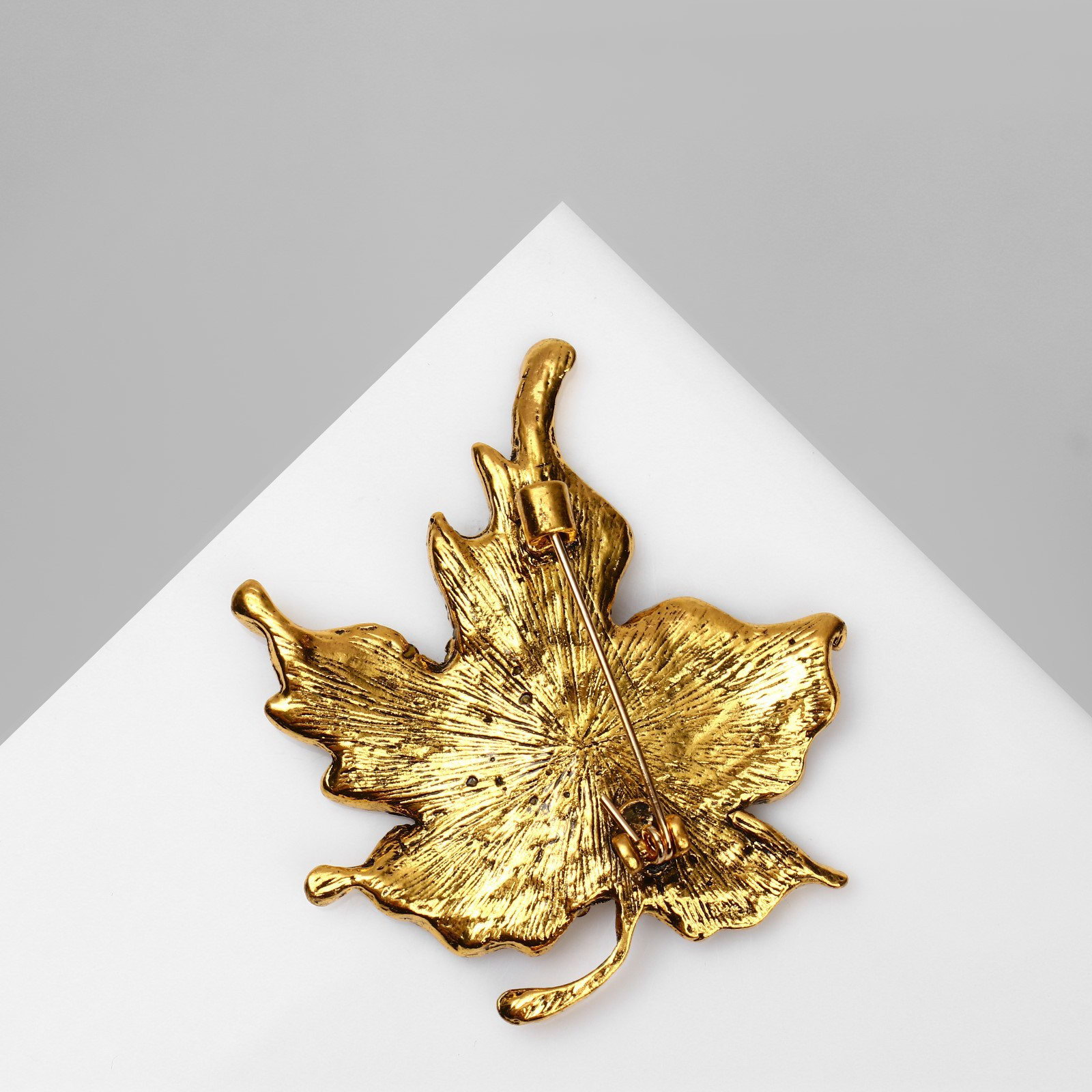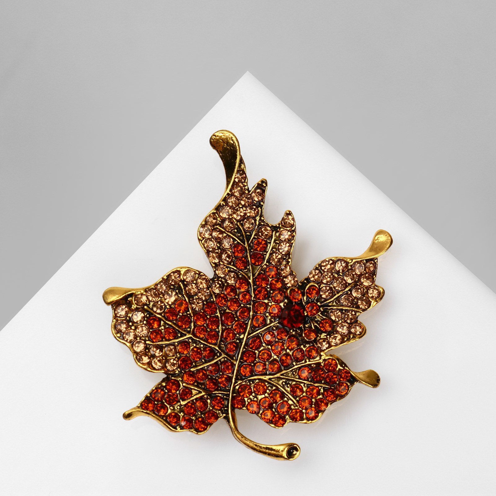 Брошь "Лист" кленовый, цвет коричневый в чернёном золоте, 4.8x5.5x0.6 см., QF, Китай