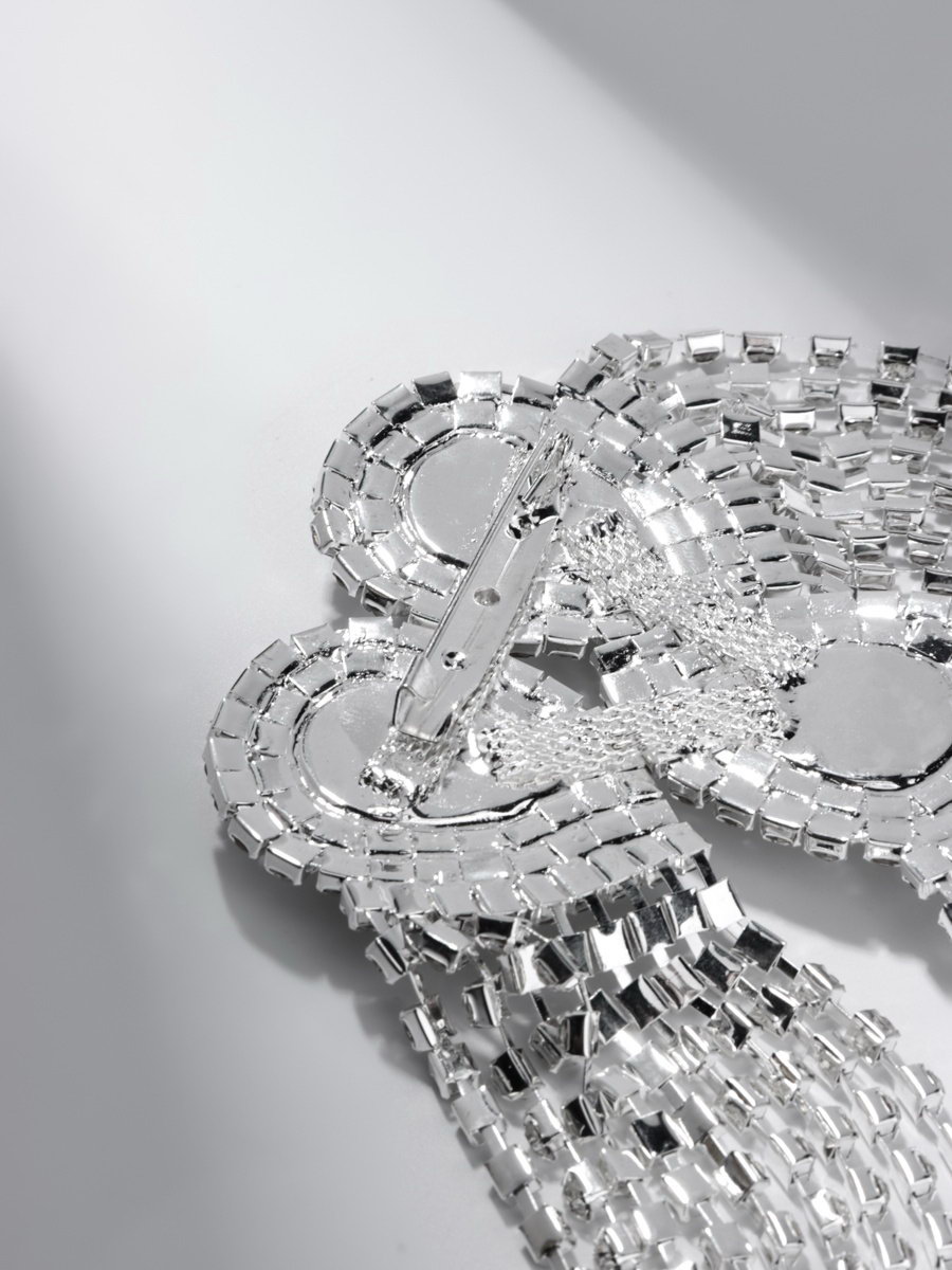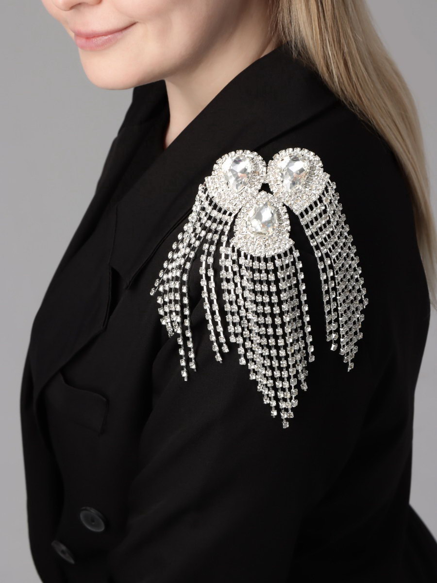 Брошь эполет "Голливуд", 13x9x3 см, белая в серебре, 9x13x3 см., QF, Китай