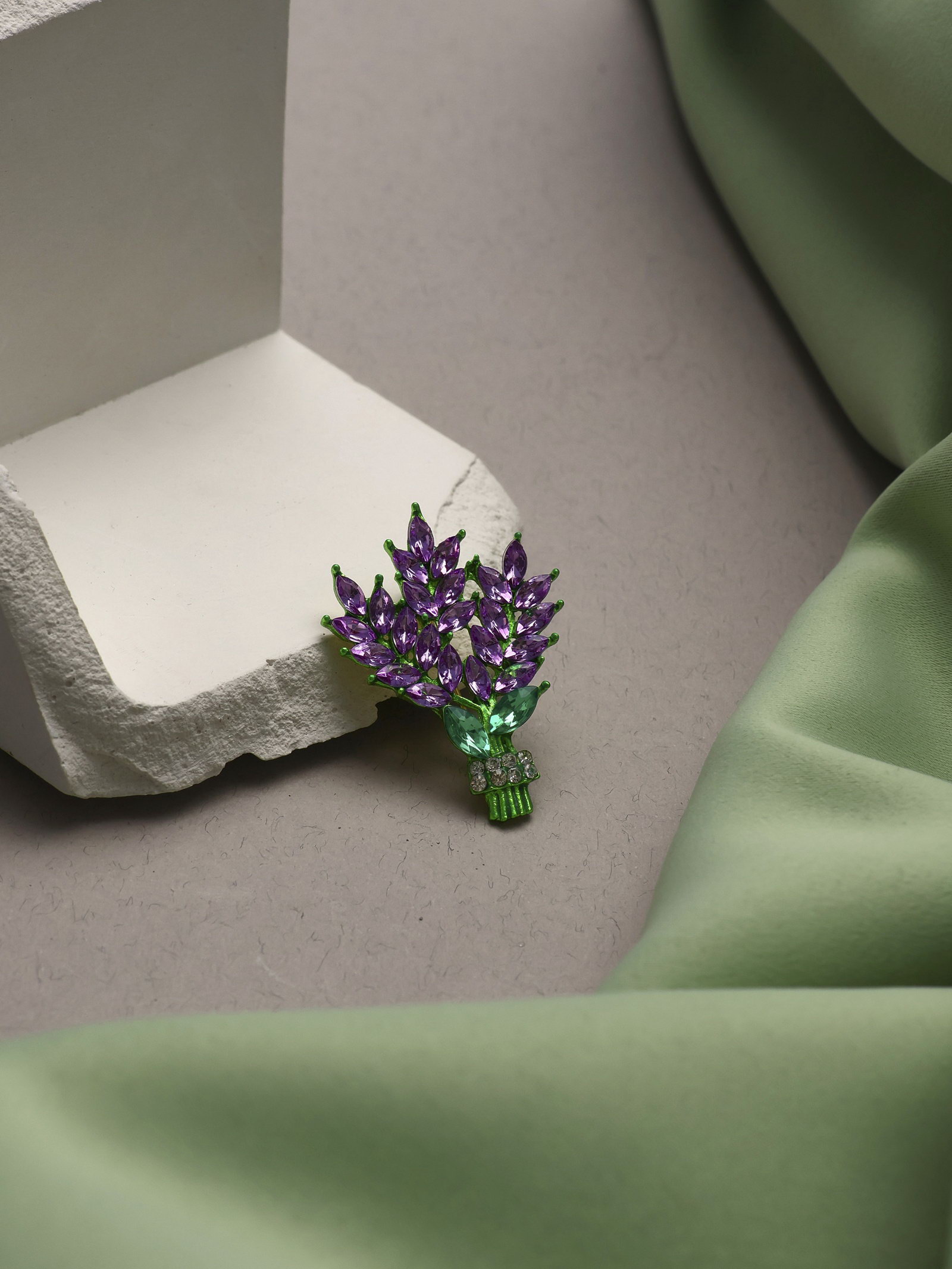 Брошь "Букет" лаванды, сиреневая в золоте, 3x4x0.5 см., QF, Китай