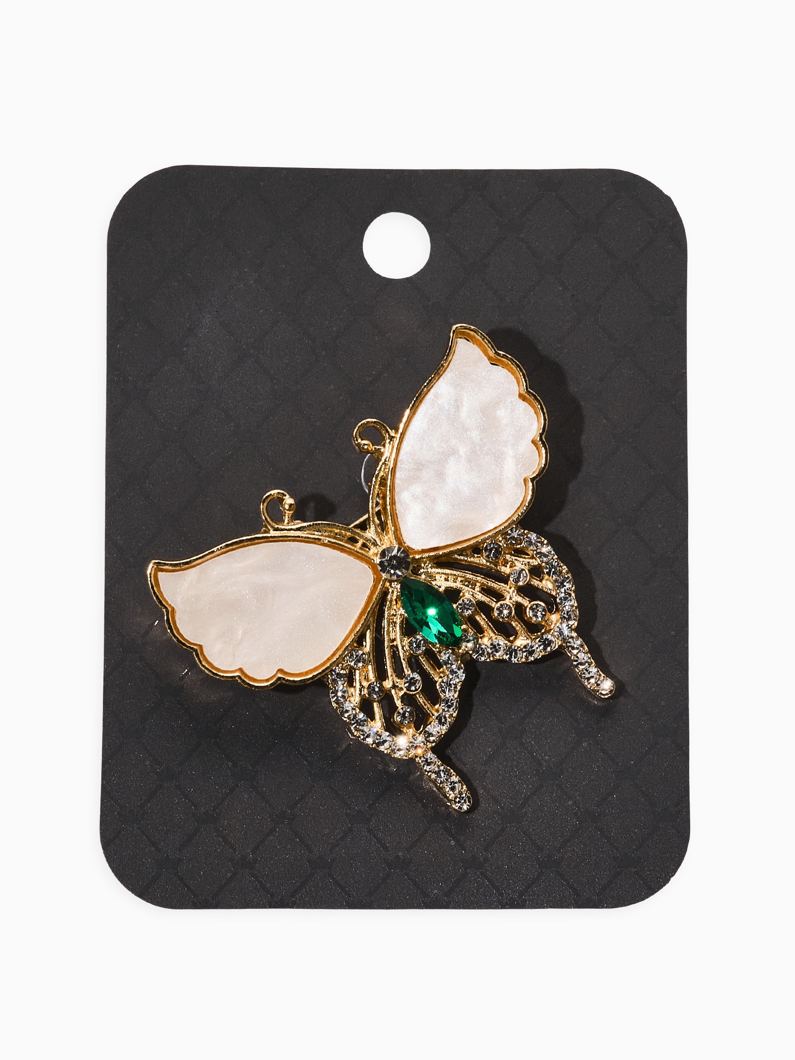 Брошь "Бабочка", белая в золоте, 4x4x0.5 см., QF, Китай