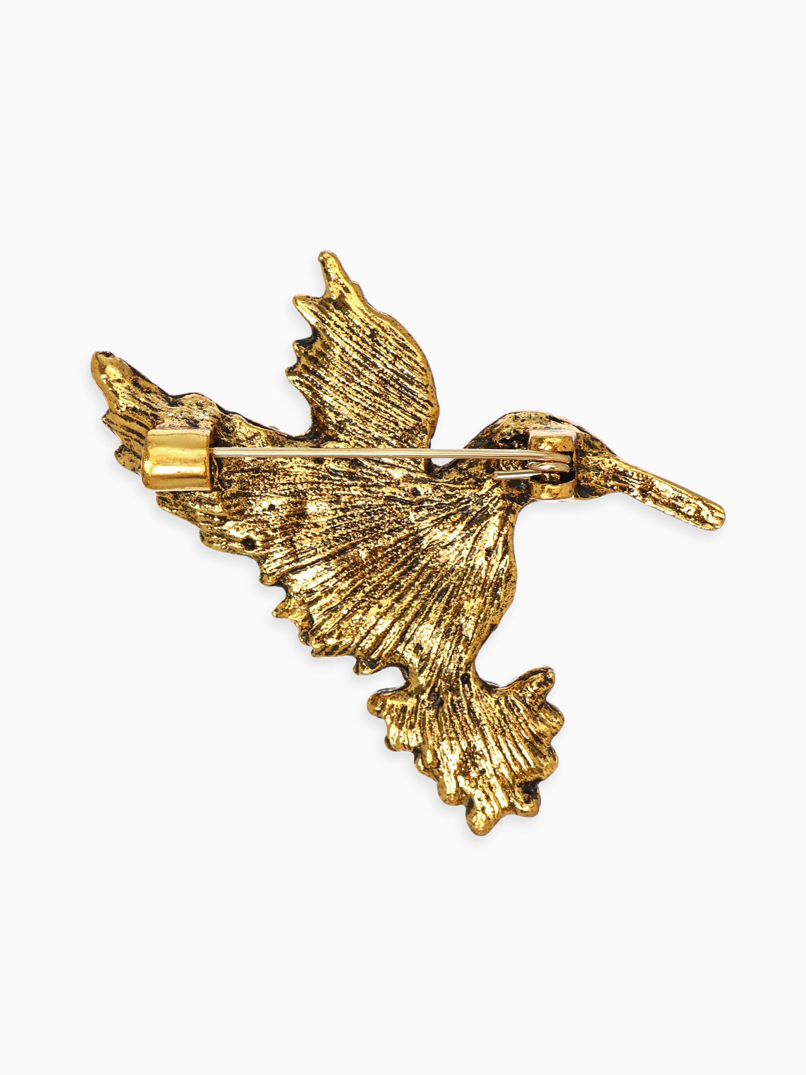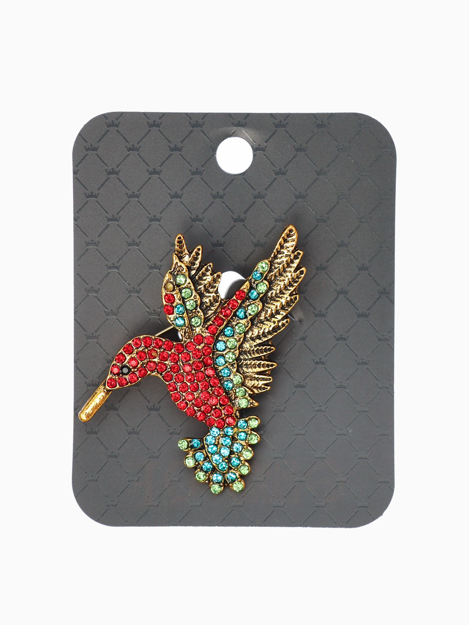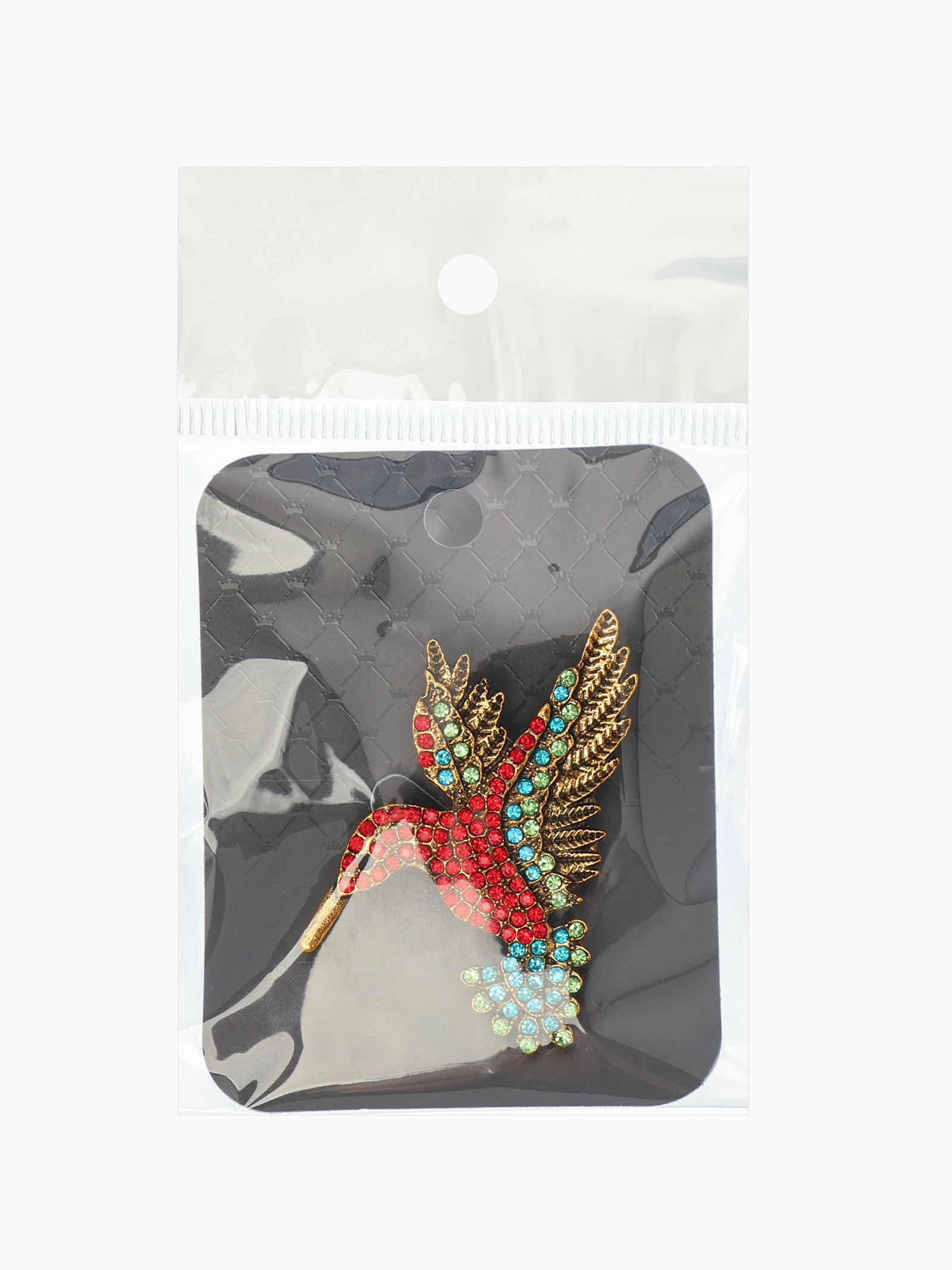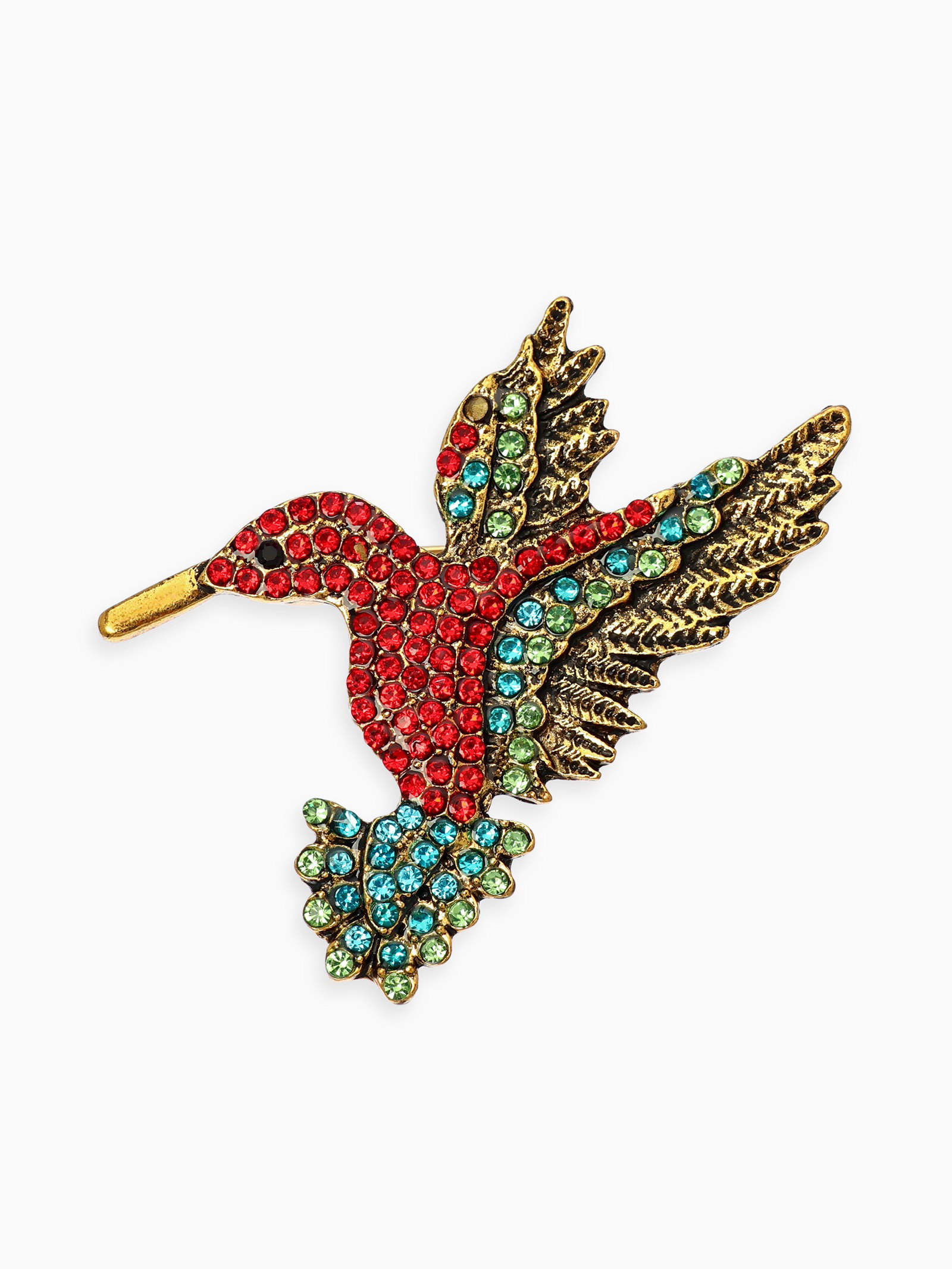 Брошь "Калибри", цветная в чернёном золоте, 4.5x5x1 см., QF, Китай