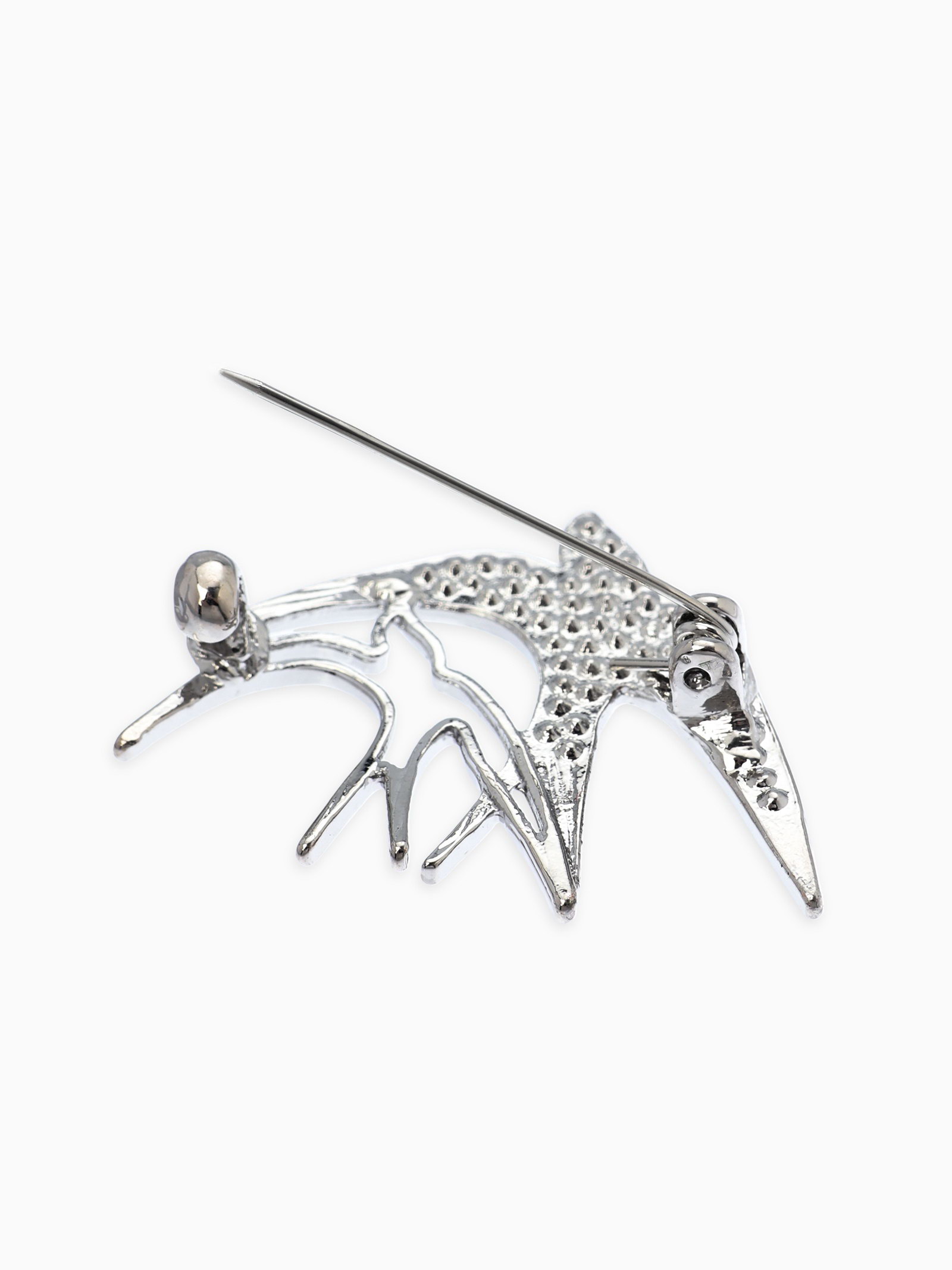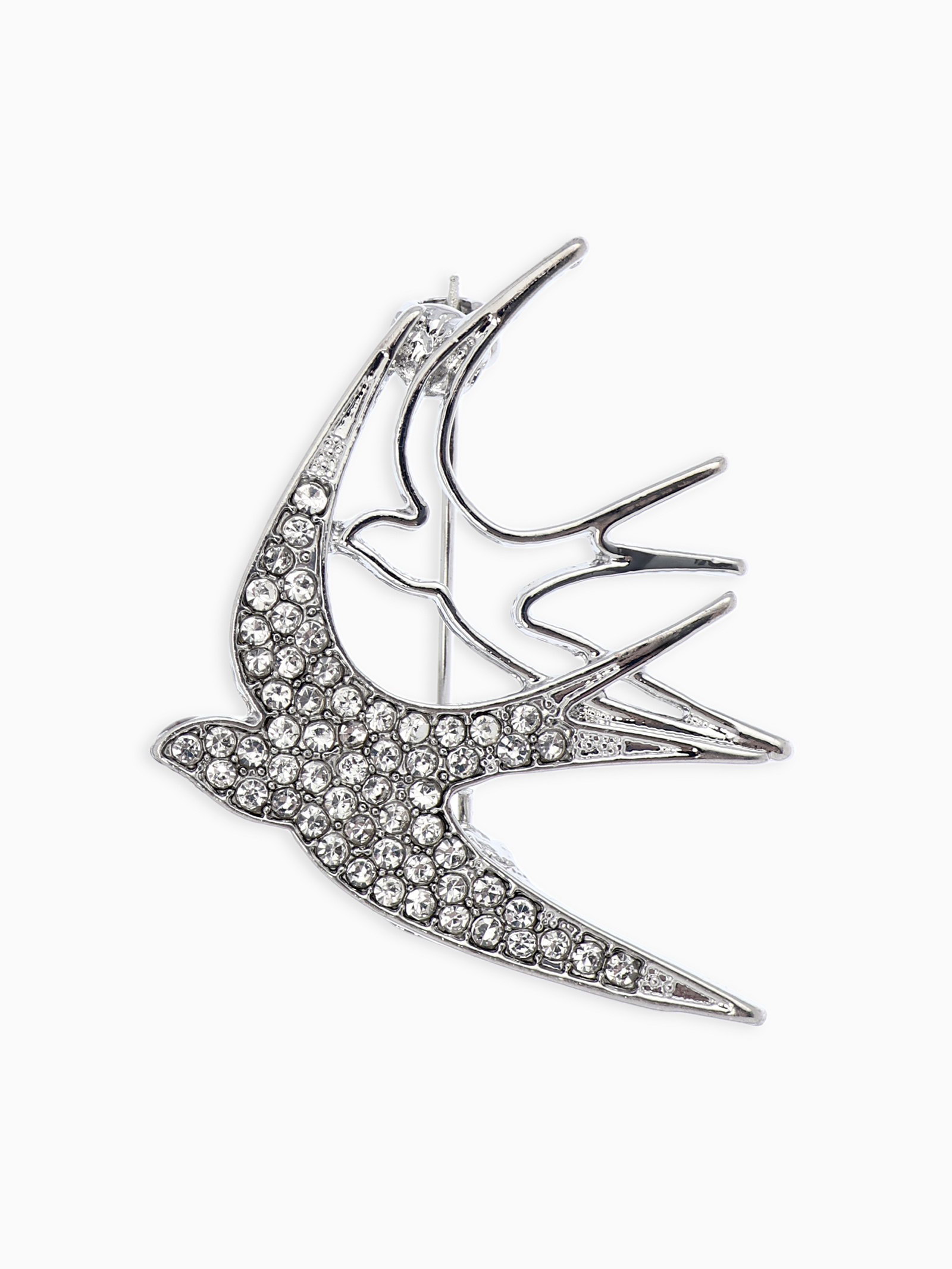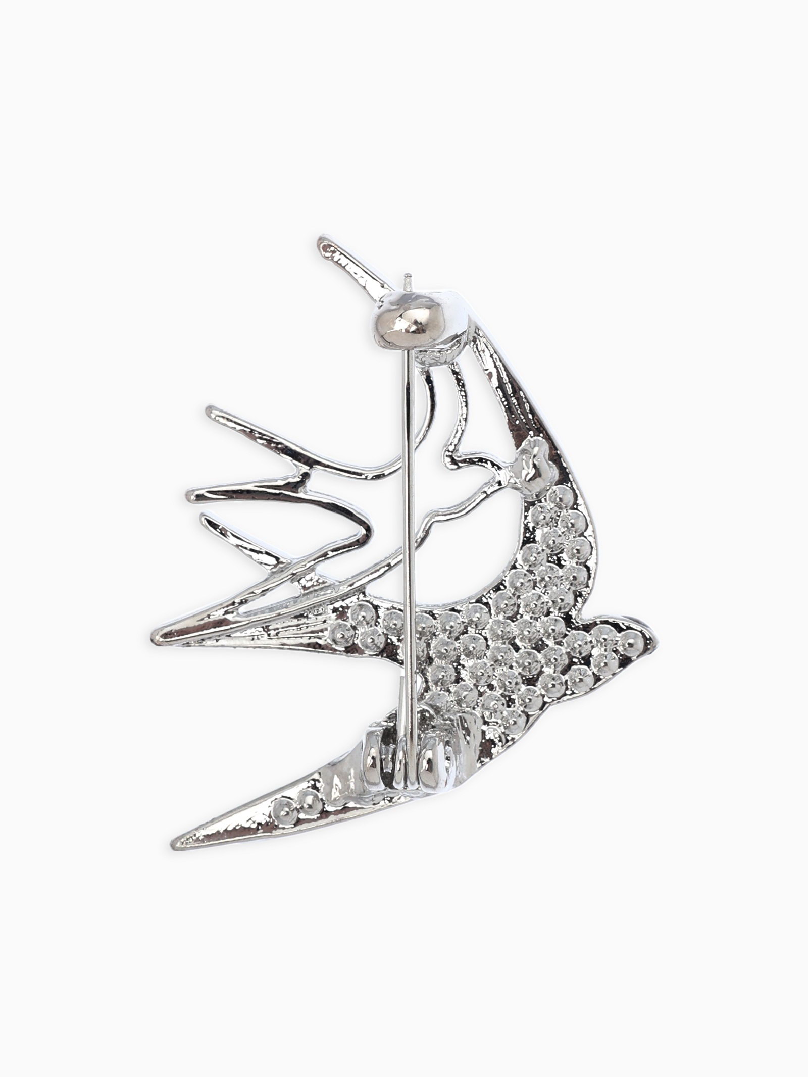 Брошь "Ласточки", белая в серебре, 3.5x4x0.5 см., QF, Китай