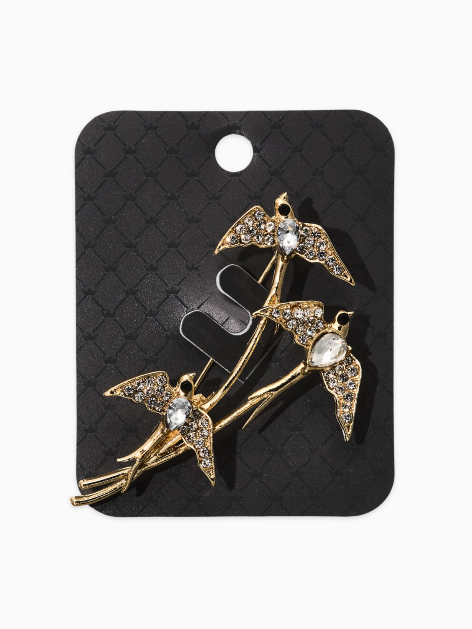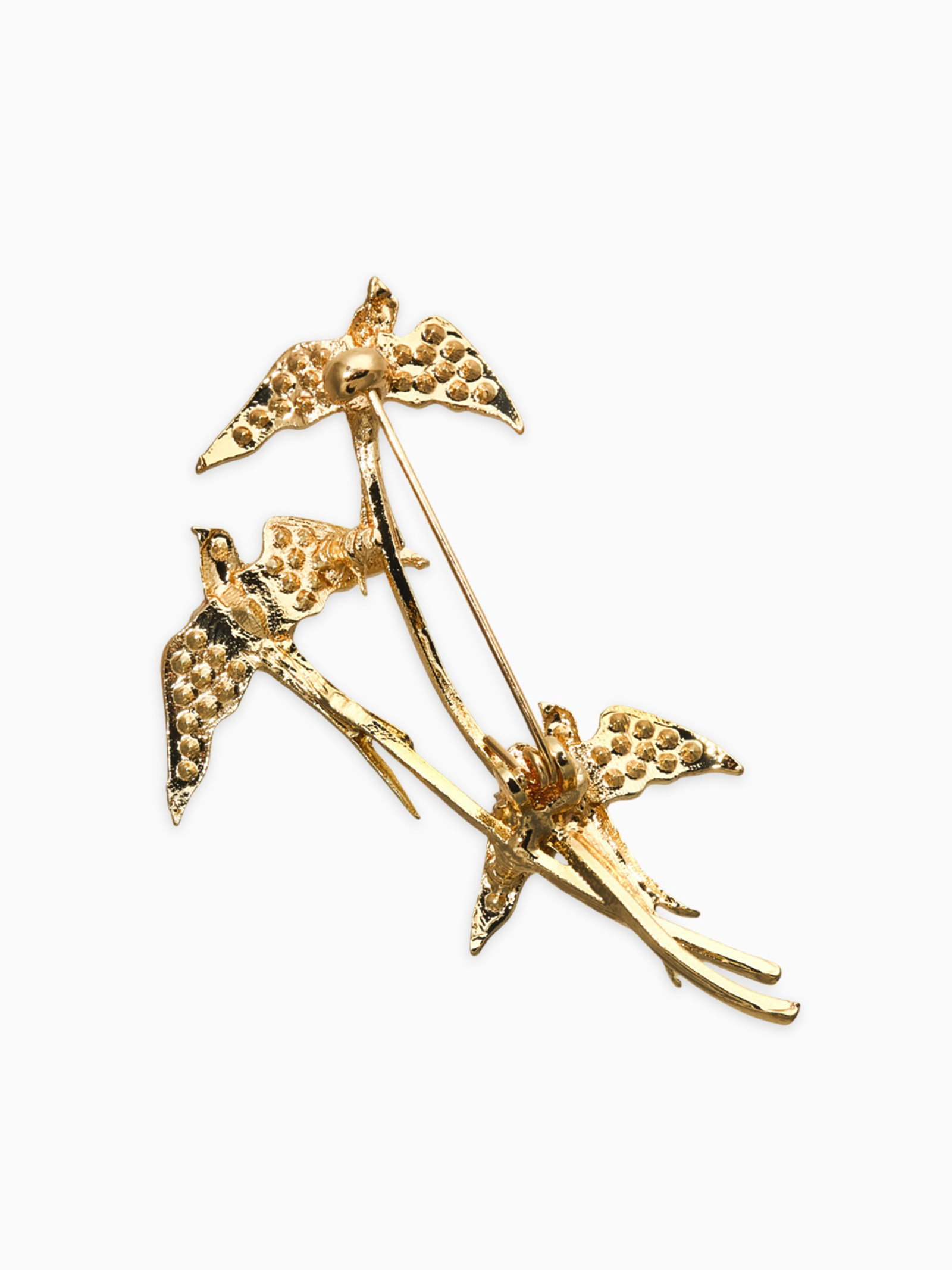 Брошь "Три ласточки", белая в золоте, 3.5x6.5x2 см., QF, Китай