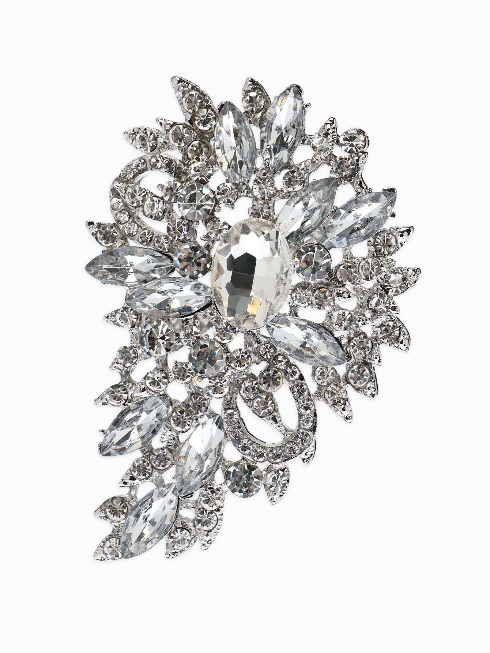 Брошь "Императрица. Льдинки в цветке", белая в серебре, 6x8.5x2 см., QF, Китай