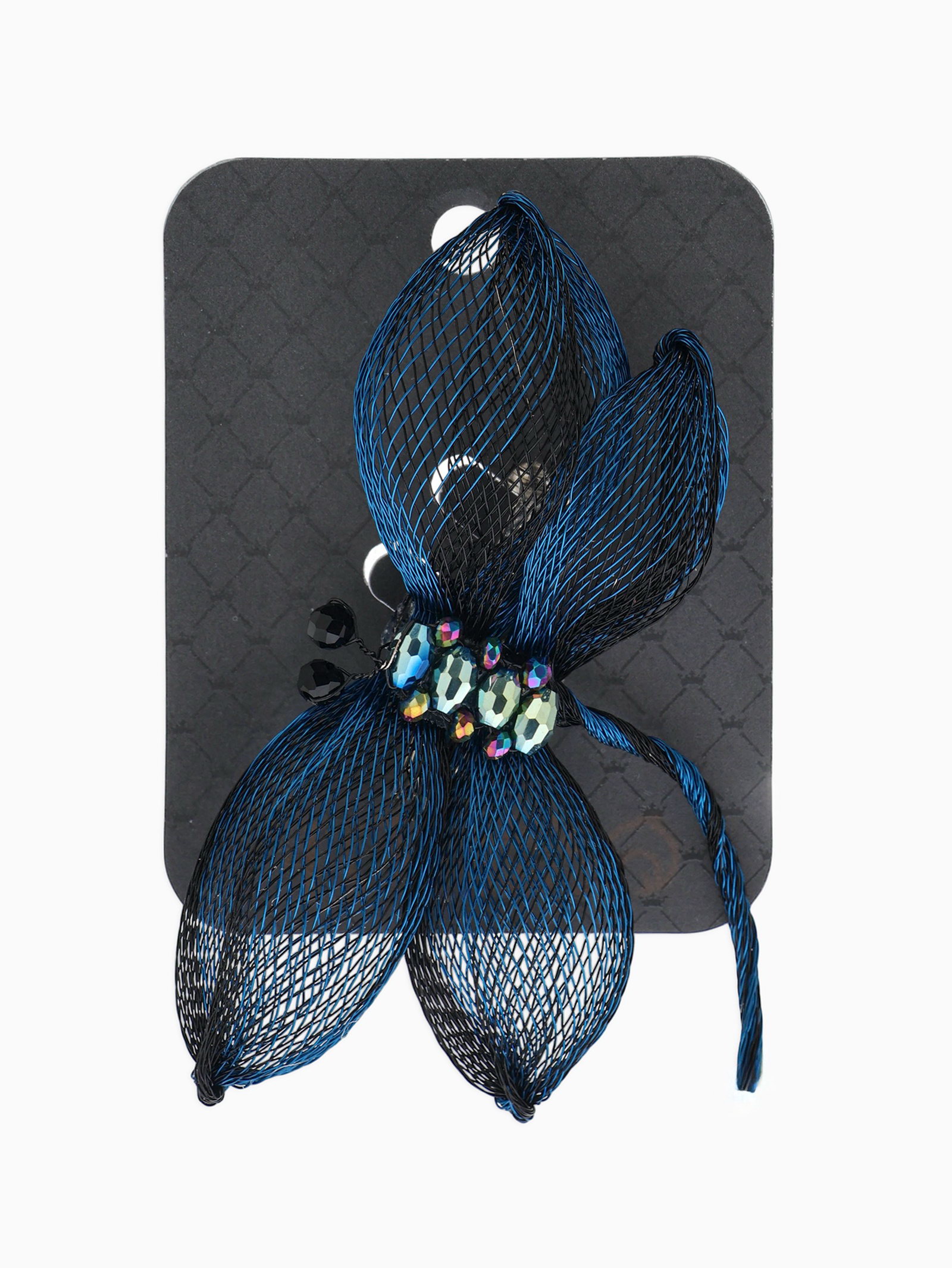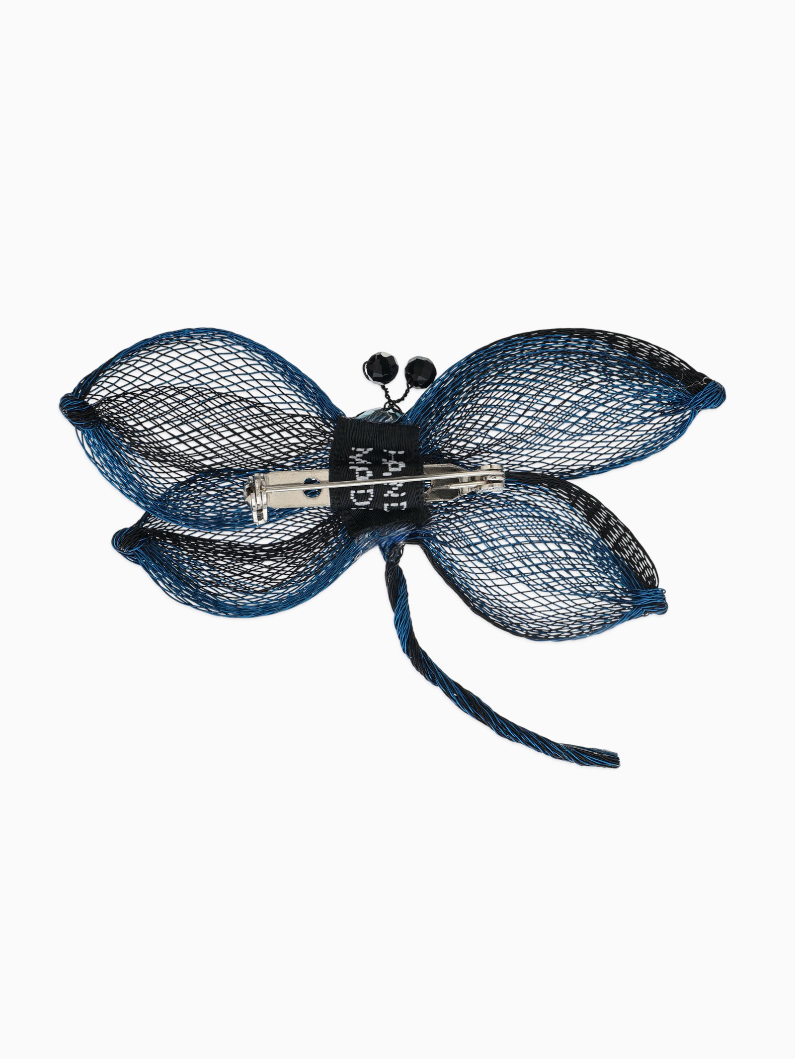 Брошь "Стрекоза", плетёная, синий, чёрная, 10.5x6.5x2 см., QF, Китай