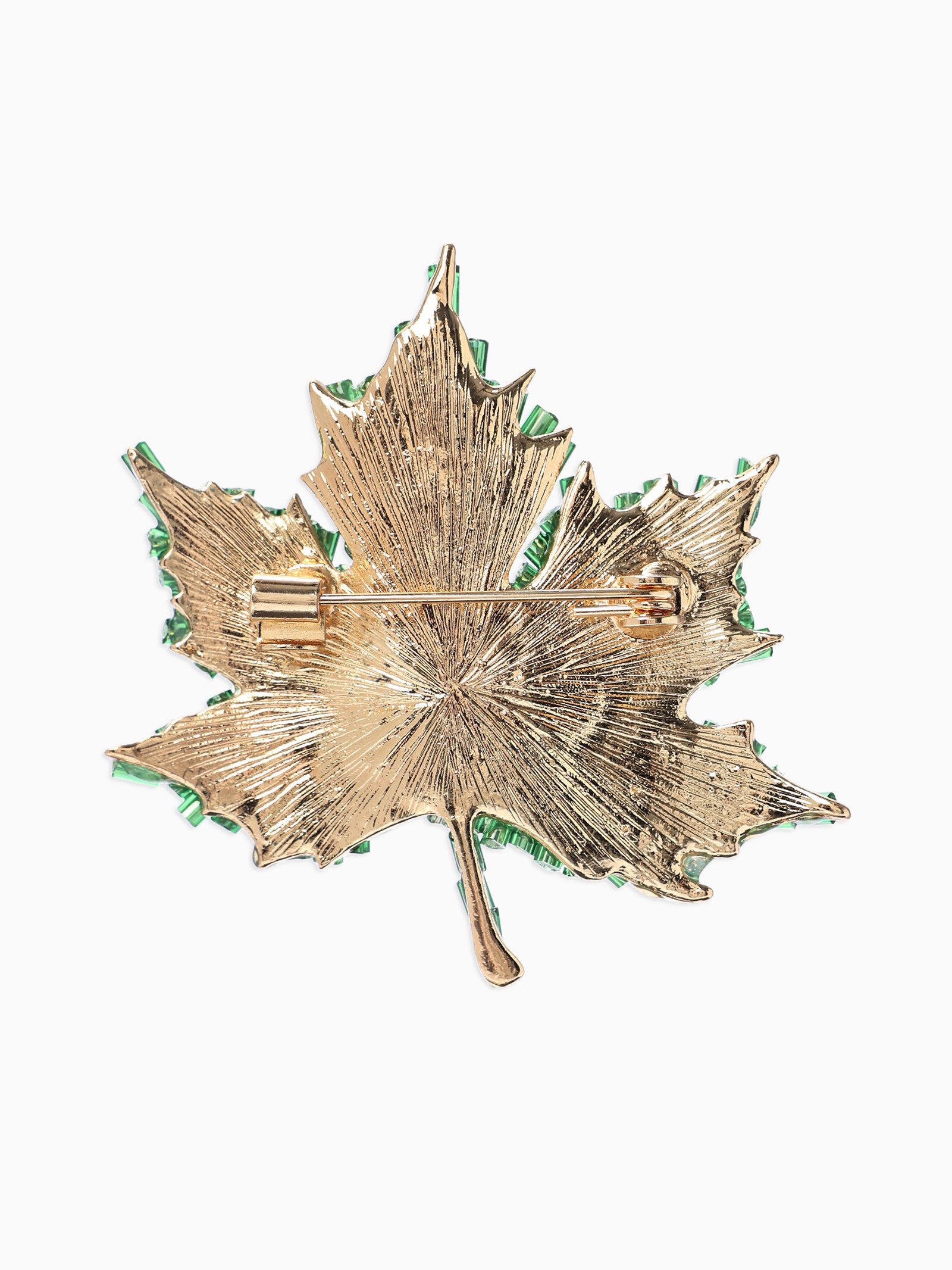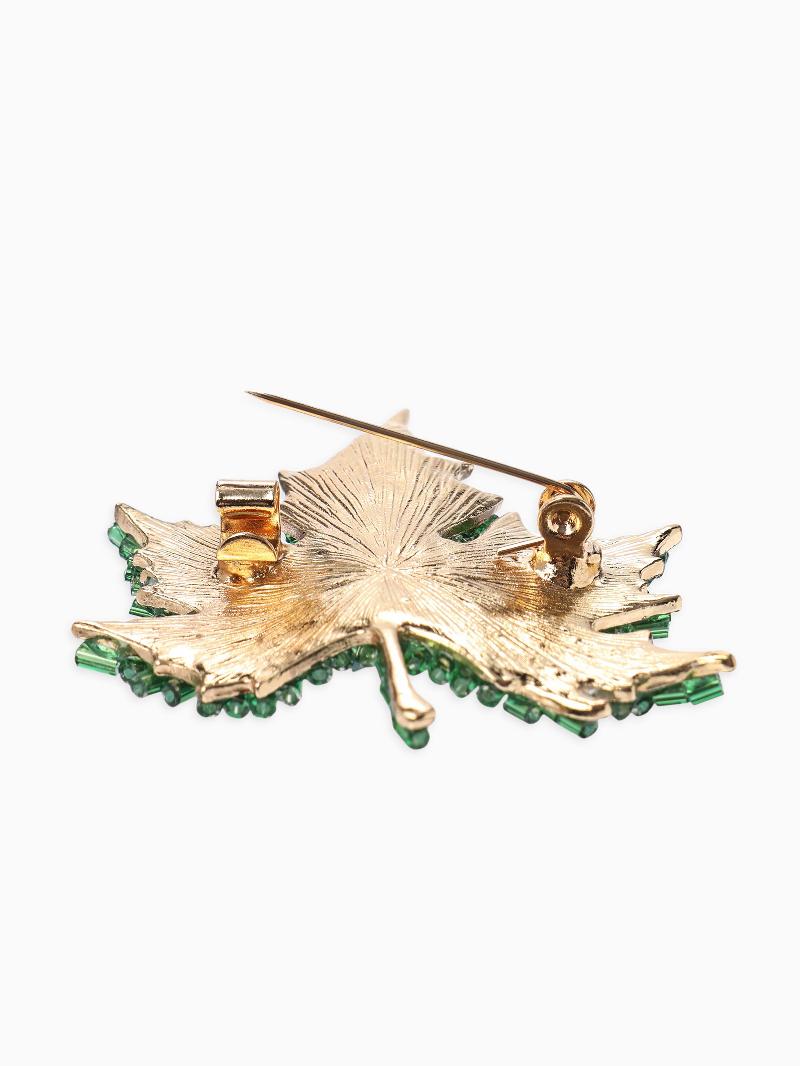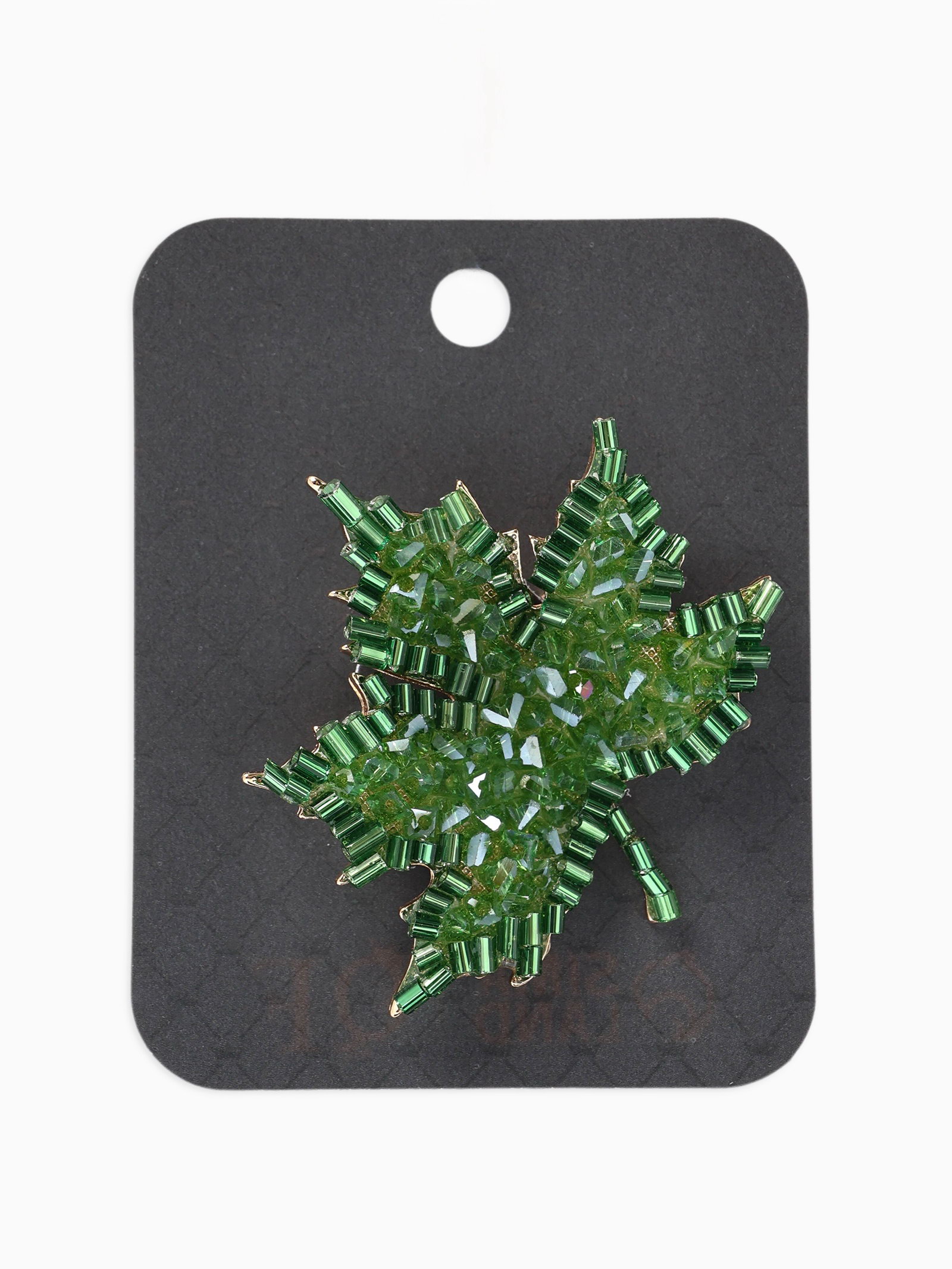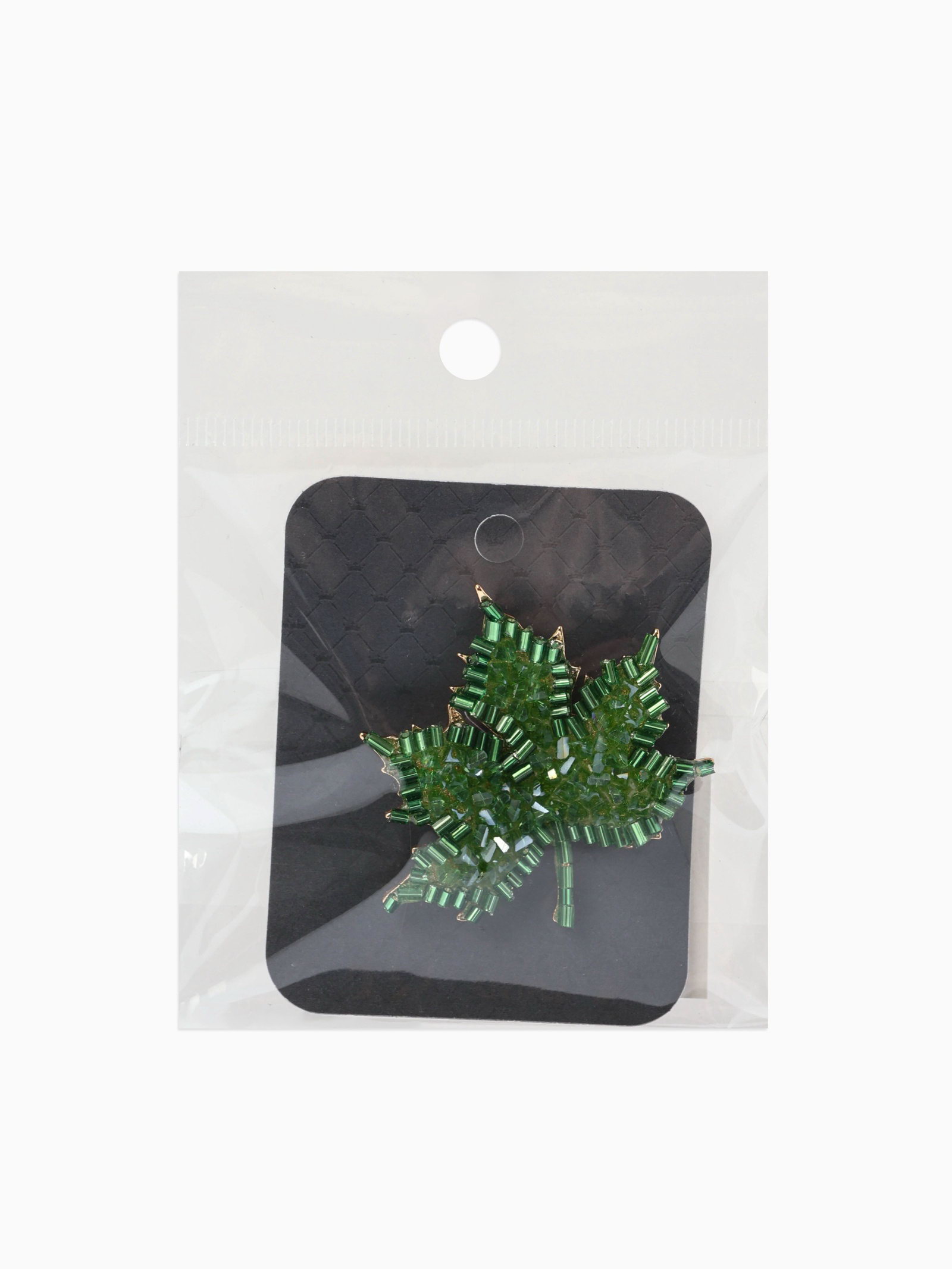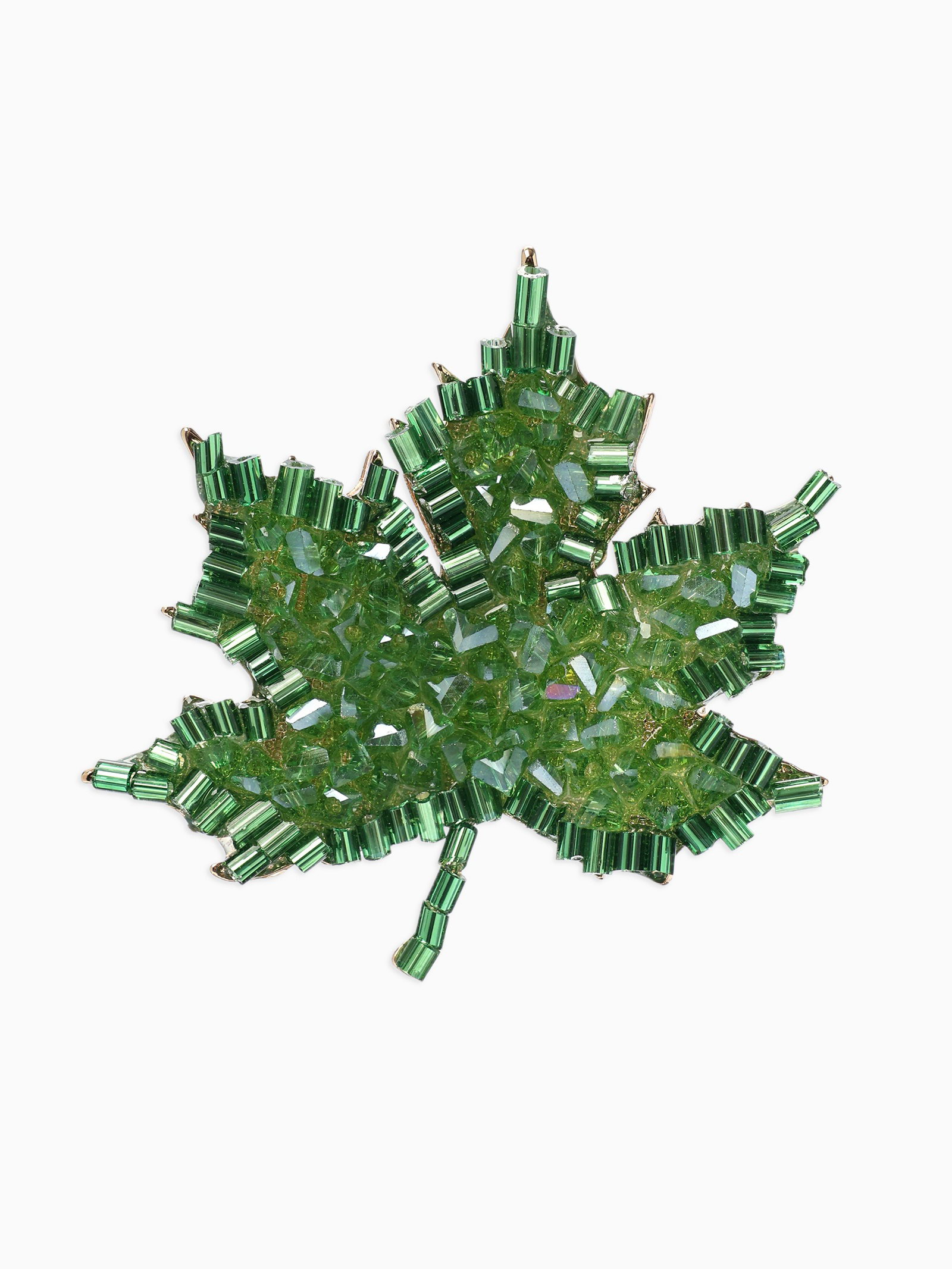 Брошь "Лист кленовый", стеклярус, зелёная в золоте, 4.5x4.5x1 см., QF, Китай