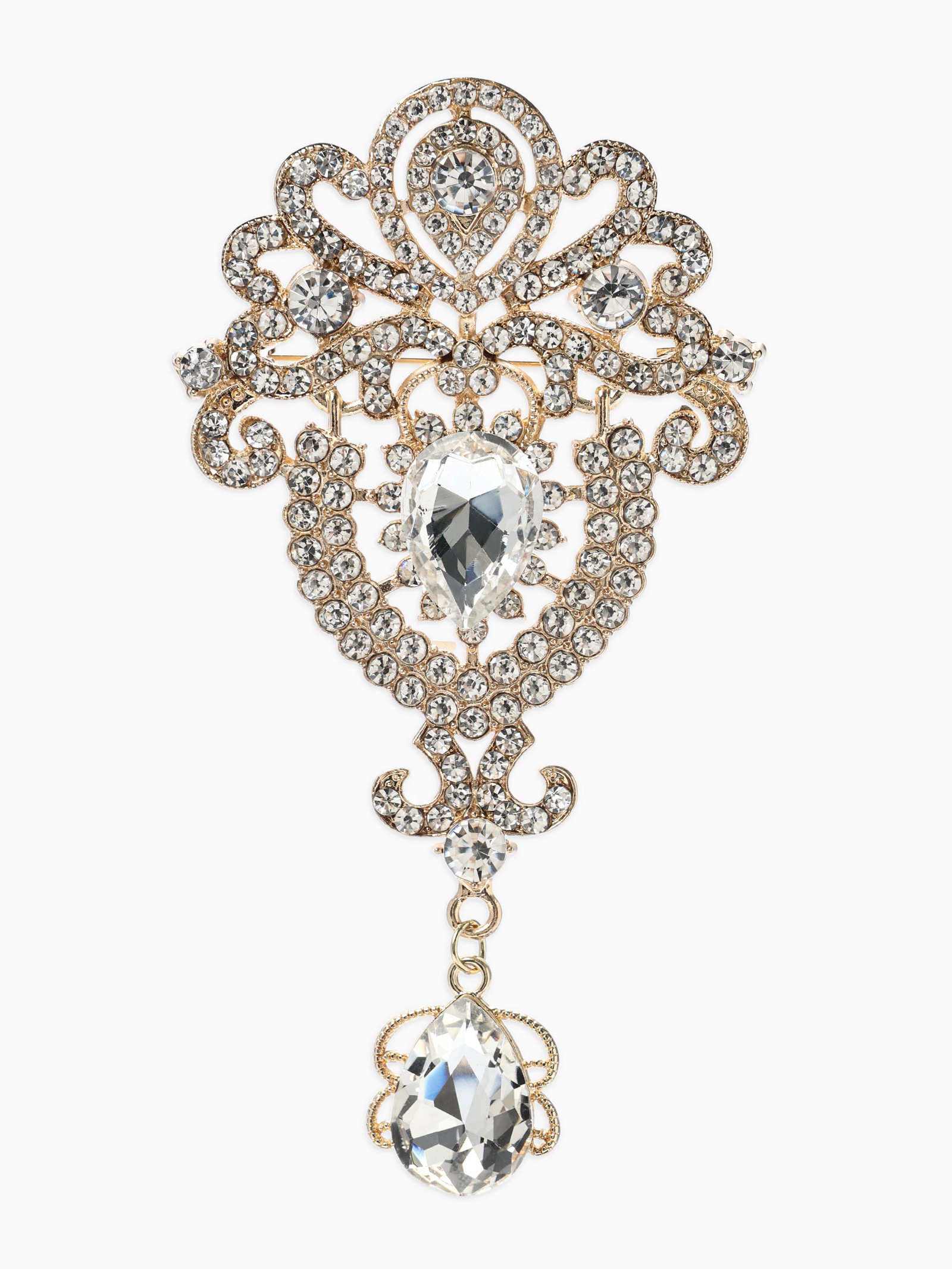 Брошь "Императрица .вензеля", белая в золоте, 3.5x6x1.5 см., QF, Китай