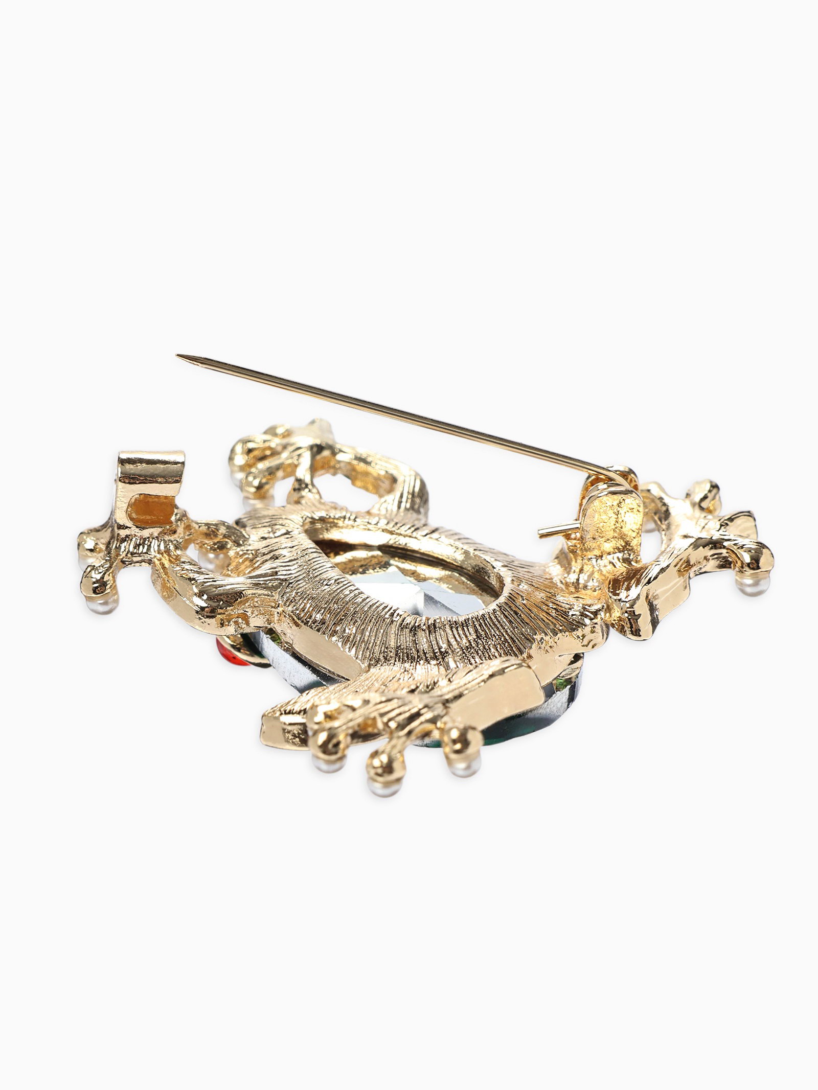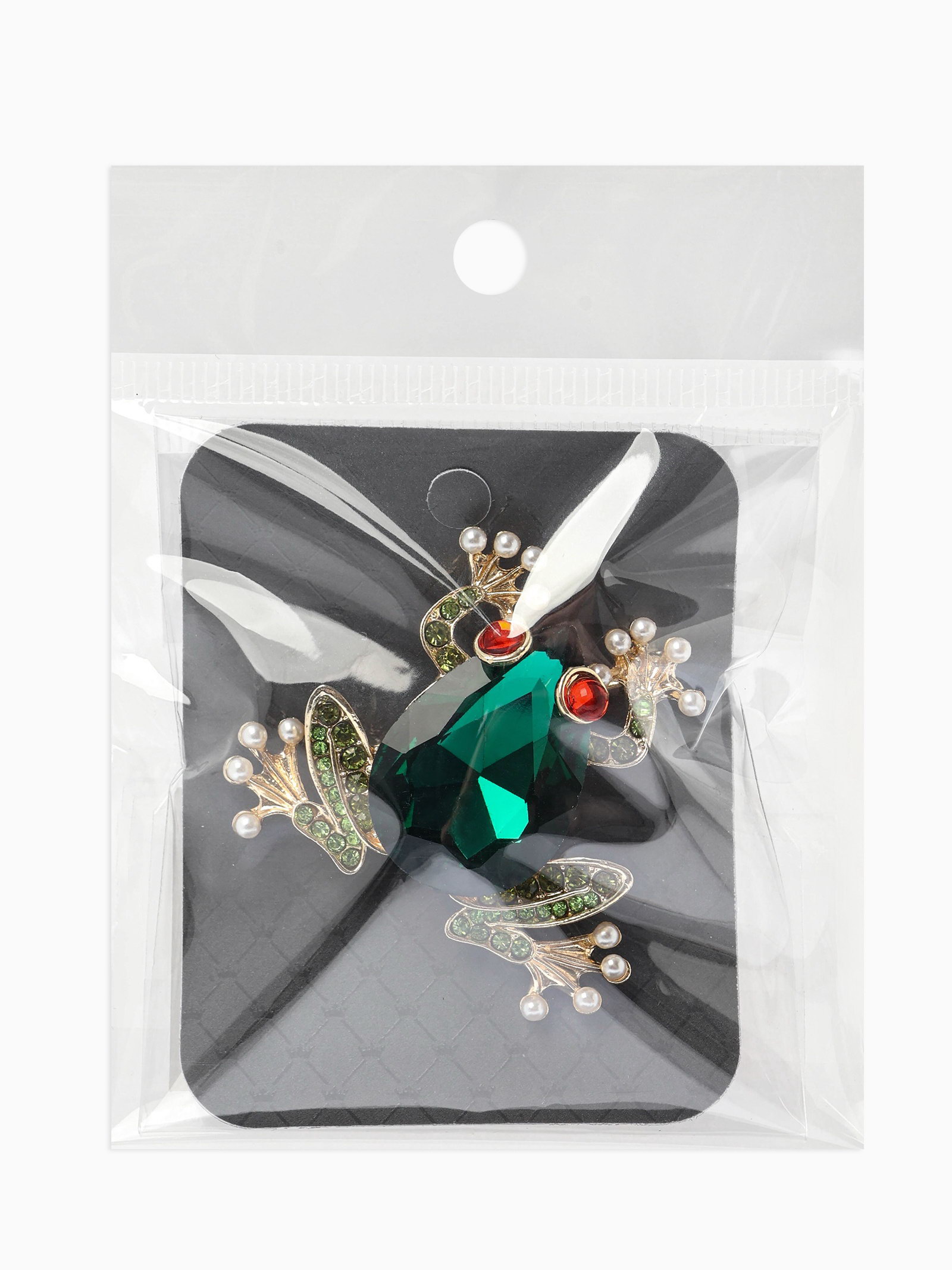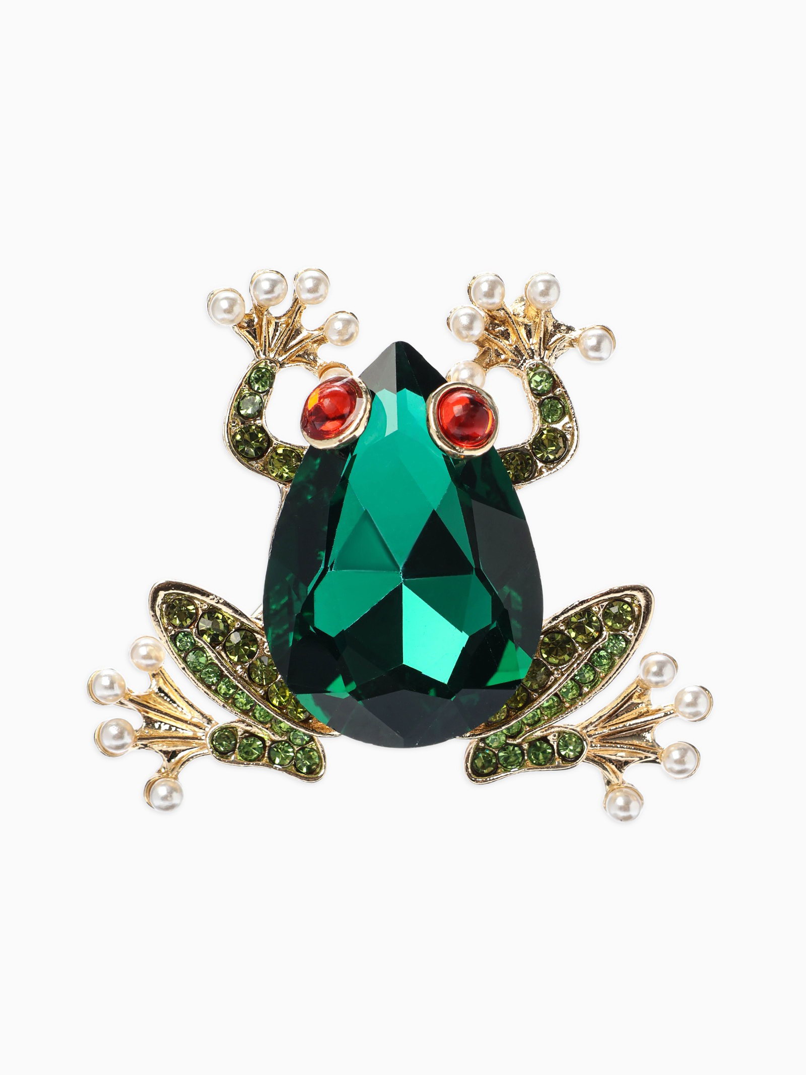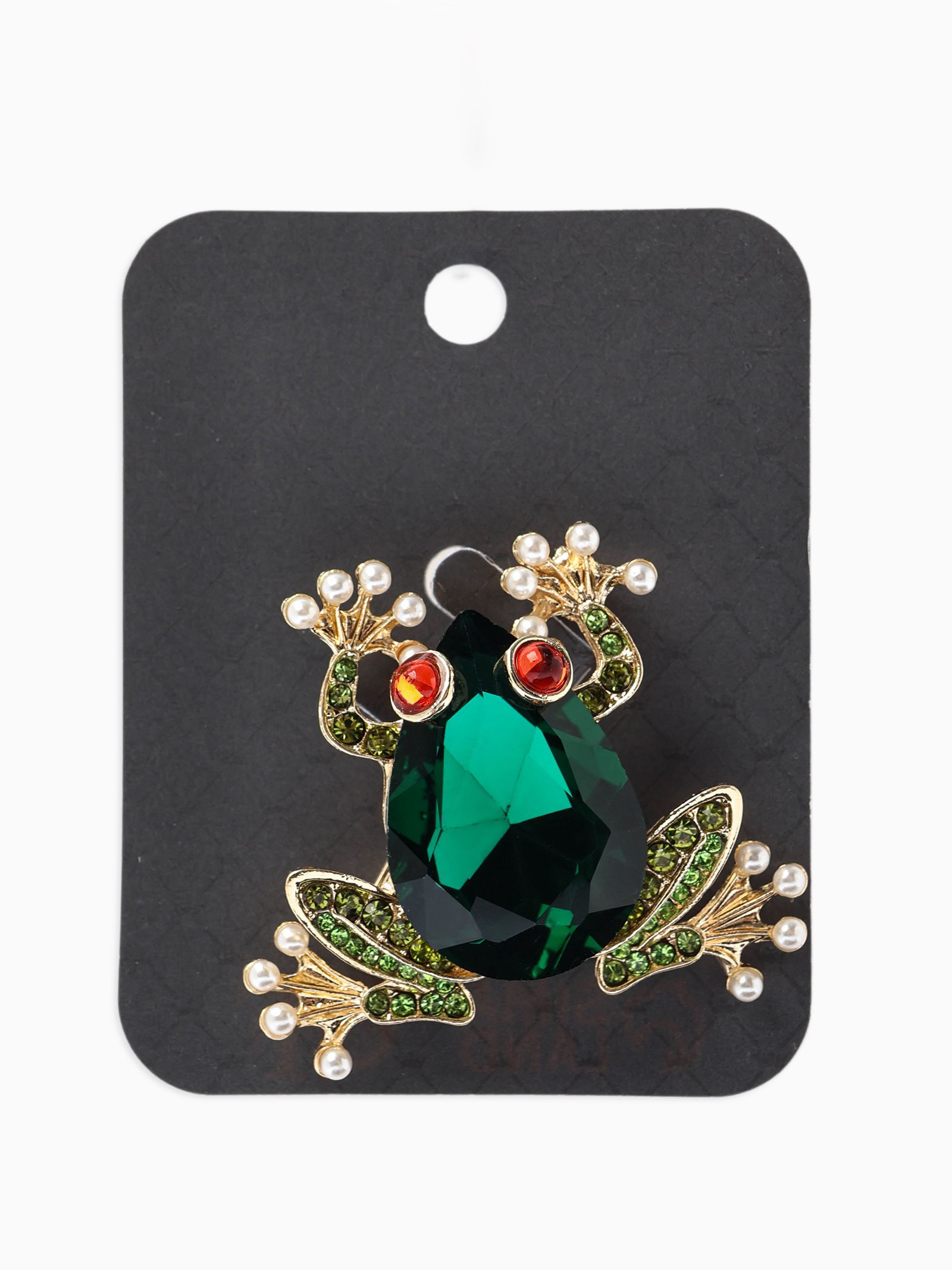 Брошь "Болотная лягушка", гранёная, зелёная в золоте, 3x3x1 см., QF, Китай