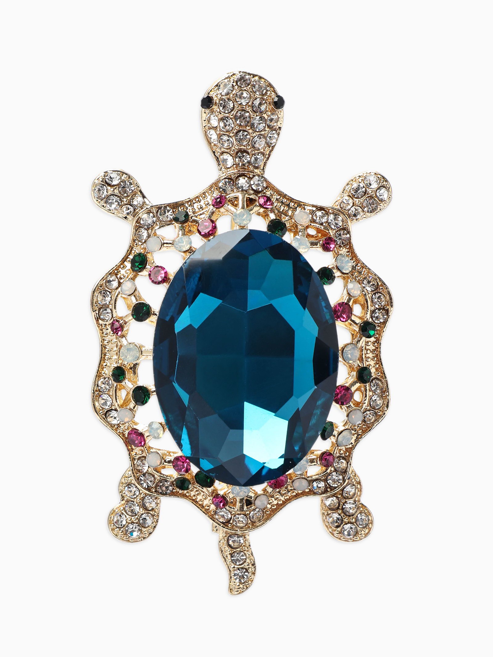 Брошь "Черепаха морская", разноцветная в золоте, 4x5x1 см., QF, Китай