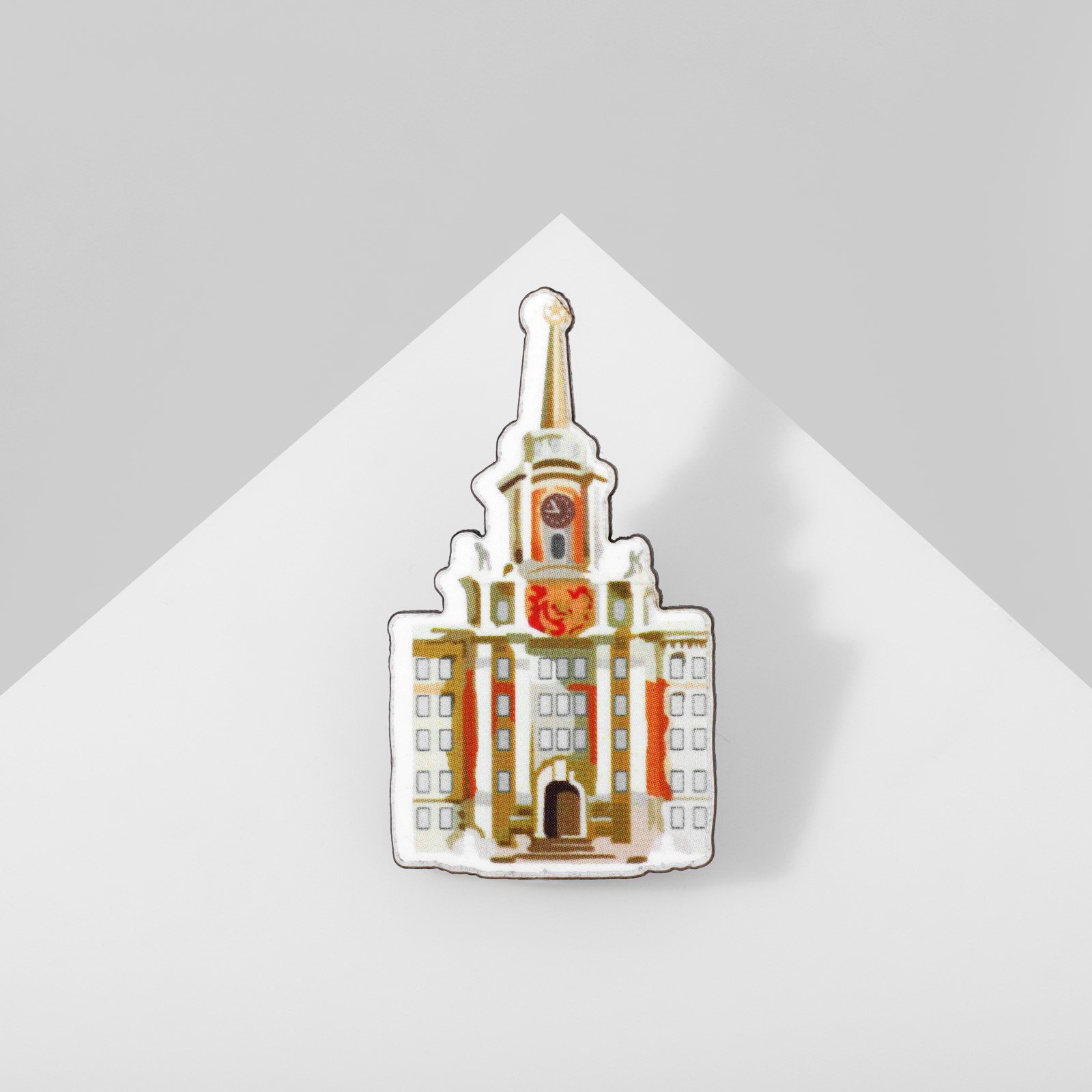 Брошь деревянная "Екатеринбург" Администрация, цветная, 1.9x3.6x0.5 см., QF, Россия