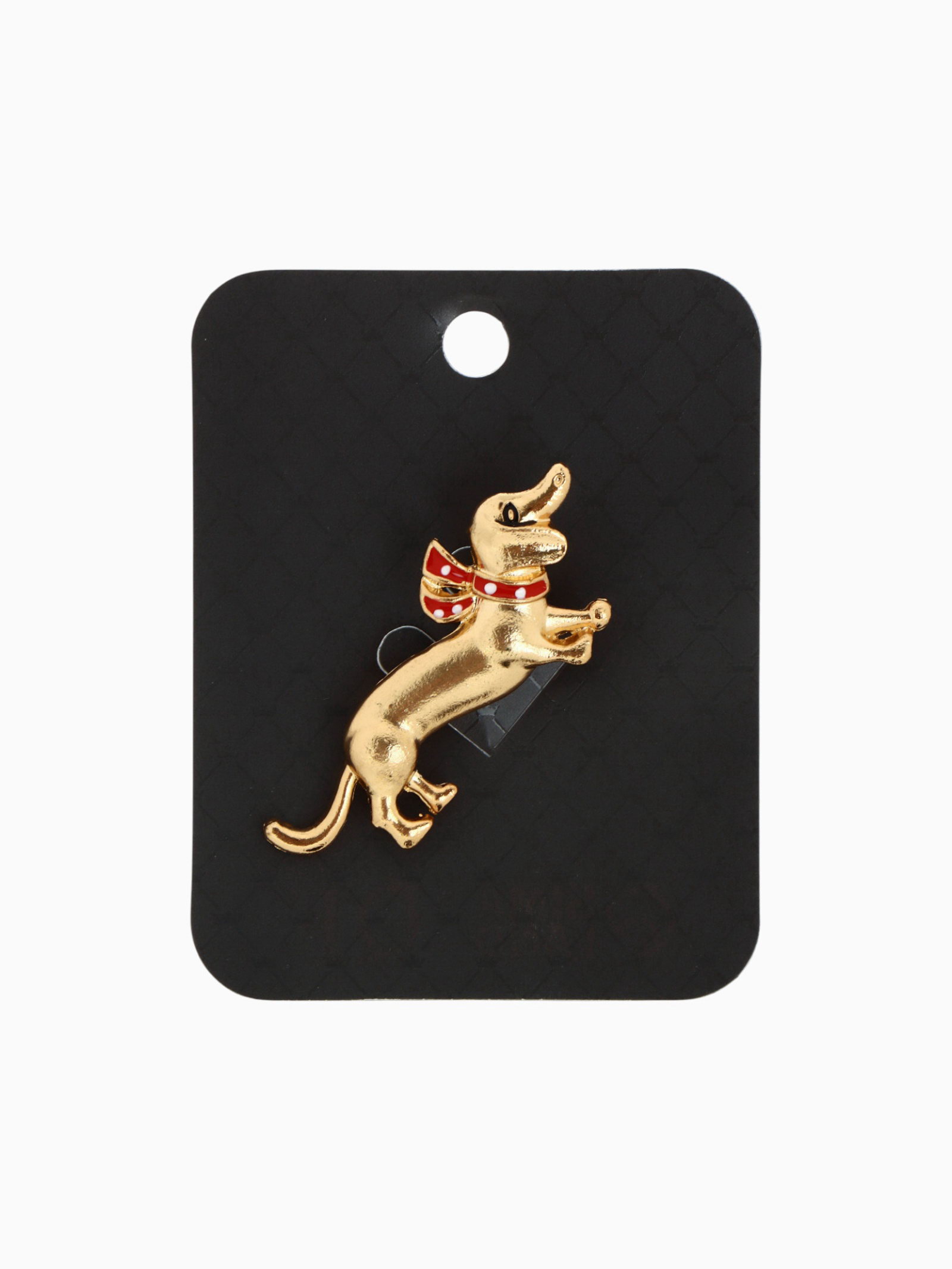 Брошь "Собака" такса с бантом, цвет красный в золоте, 1.6x4.7x1 см., QF, Китай